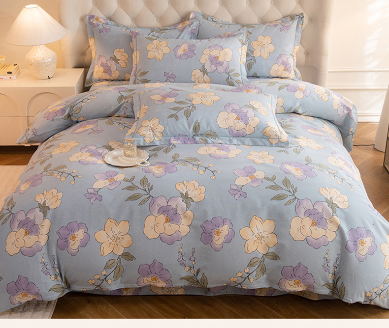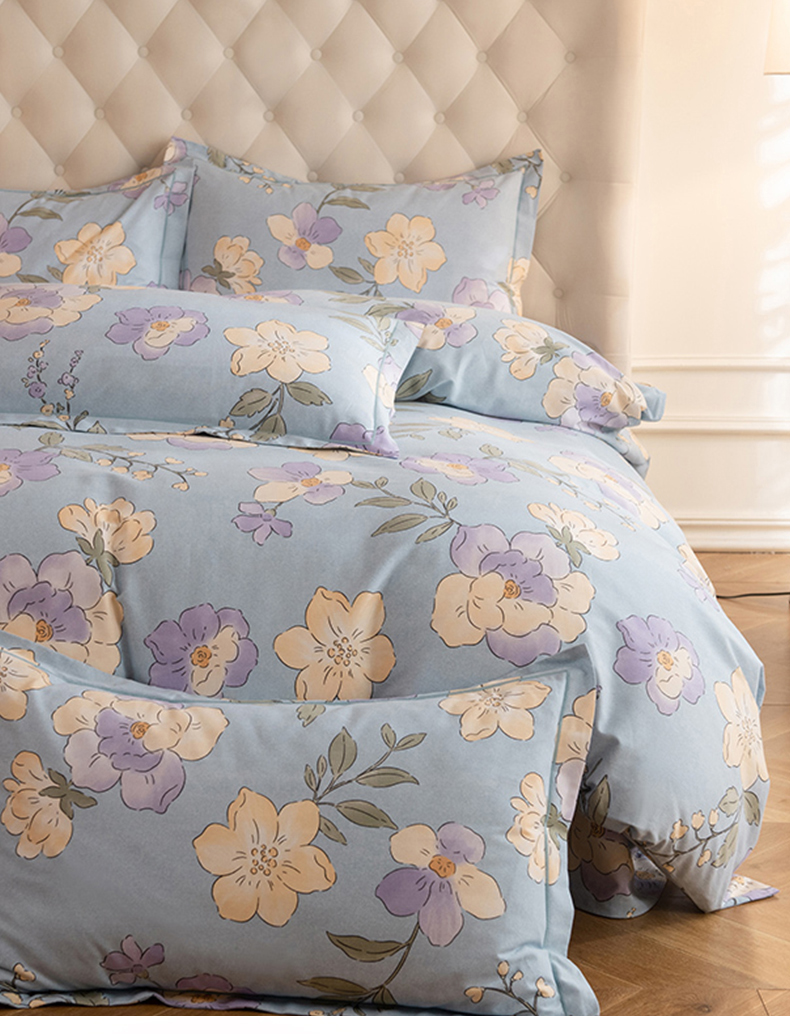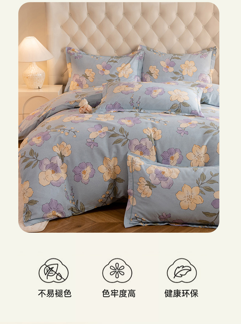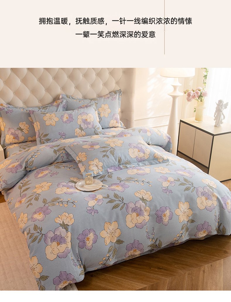 磨毛世家家纺 2025新款生态四件套 珍妮花园-蓝
