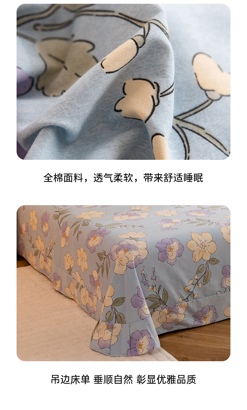 商品名称:磨毛世家家纺 2025新款生态四件套 珍妮花园-蓝