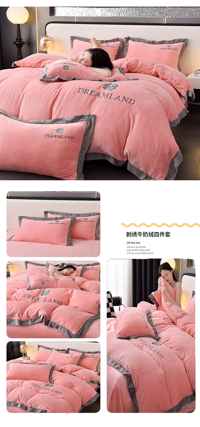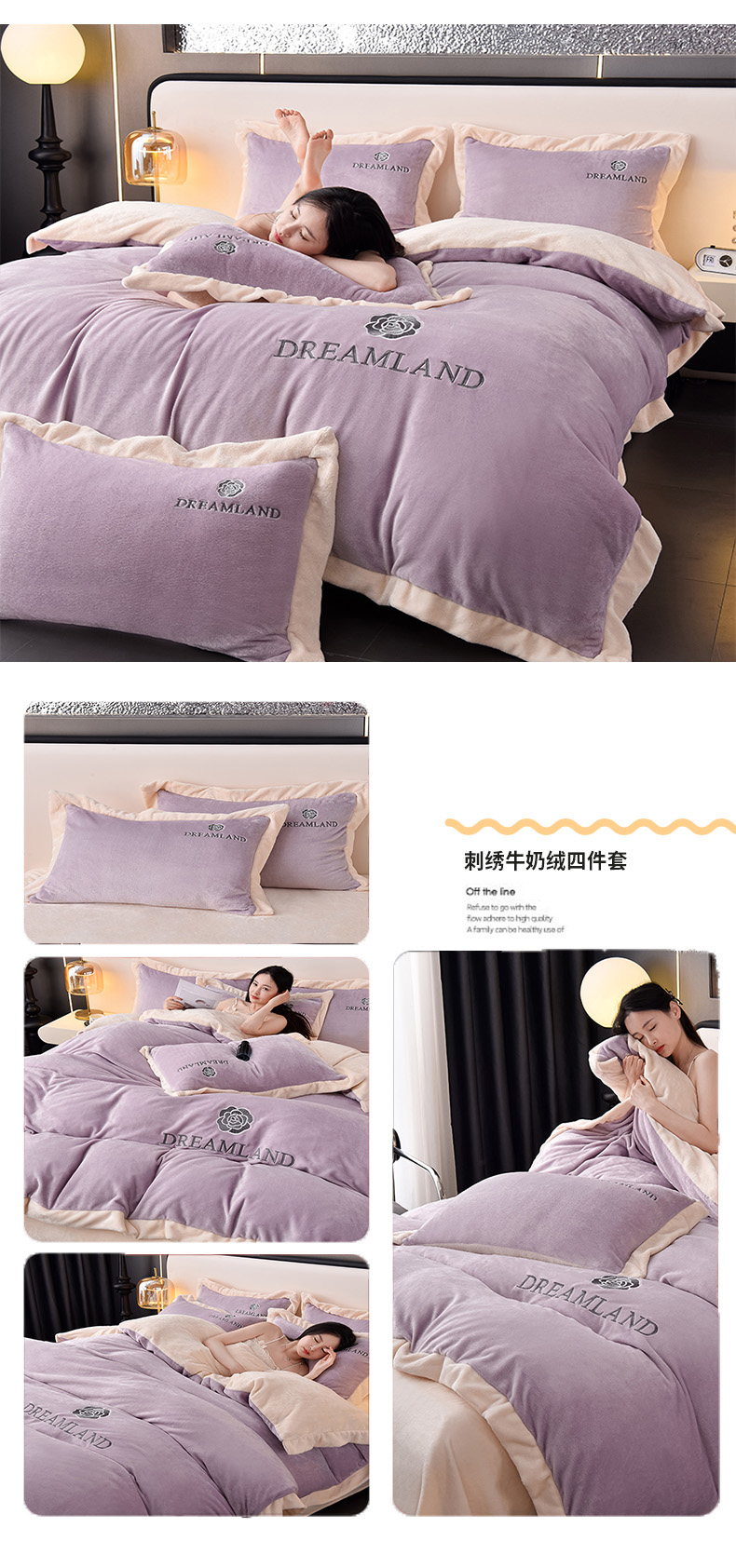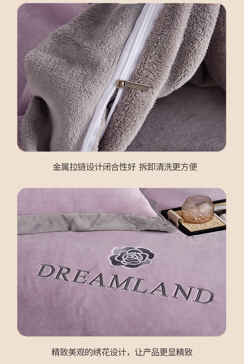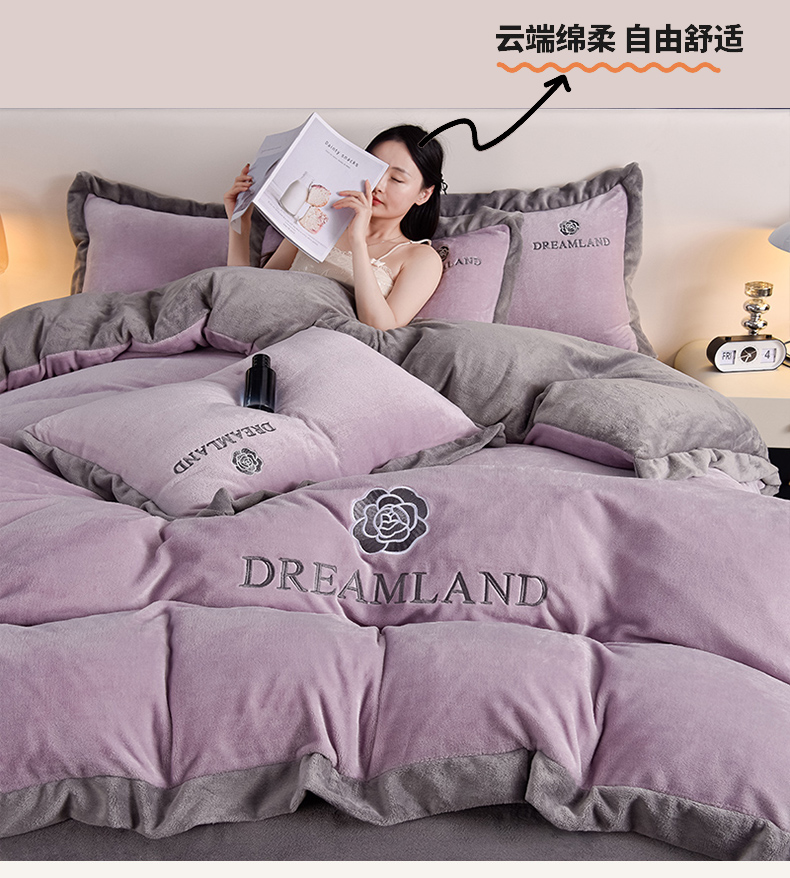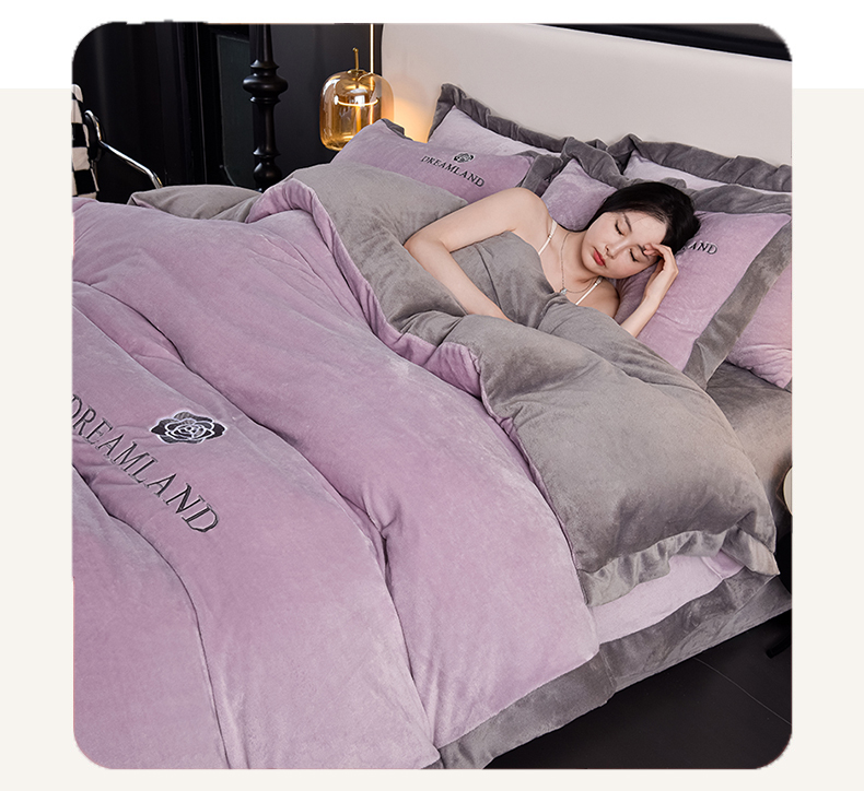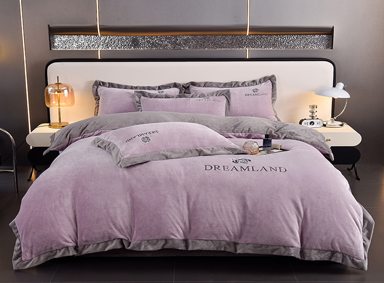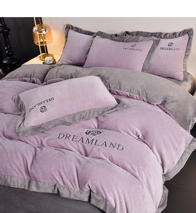 当前位置: 91家纺网 > 商品网购 > 床品套件 > 四件套 > 牛奶绒四件套 > 云恋家纺 2025新款加厚刺绣牛奶绒四件套--梦想款 梦想-紫拼灰