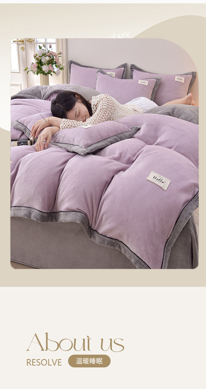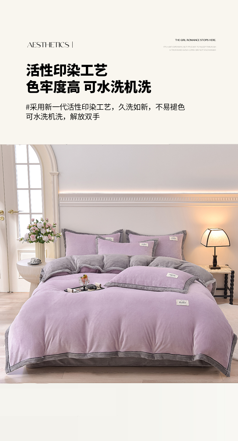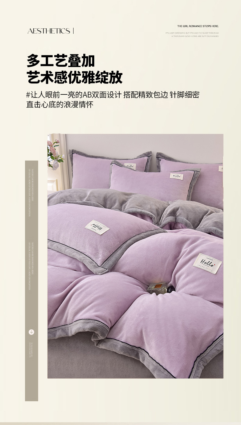 当前位置: 91家纺网 > 商品网购 > 床品套件 > 四件套 > 牛奶绒四件套 > 云恋家纺 纯色双面绒牛奶绒床上用品四件套加厚绒法兰绒床笠被套罩床单双人 青春-紫拼灰