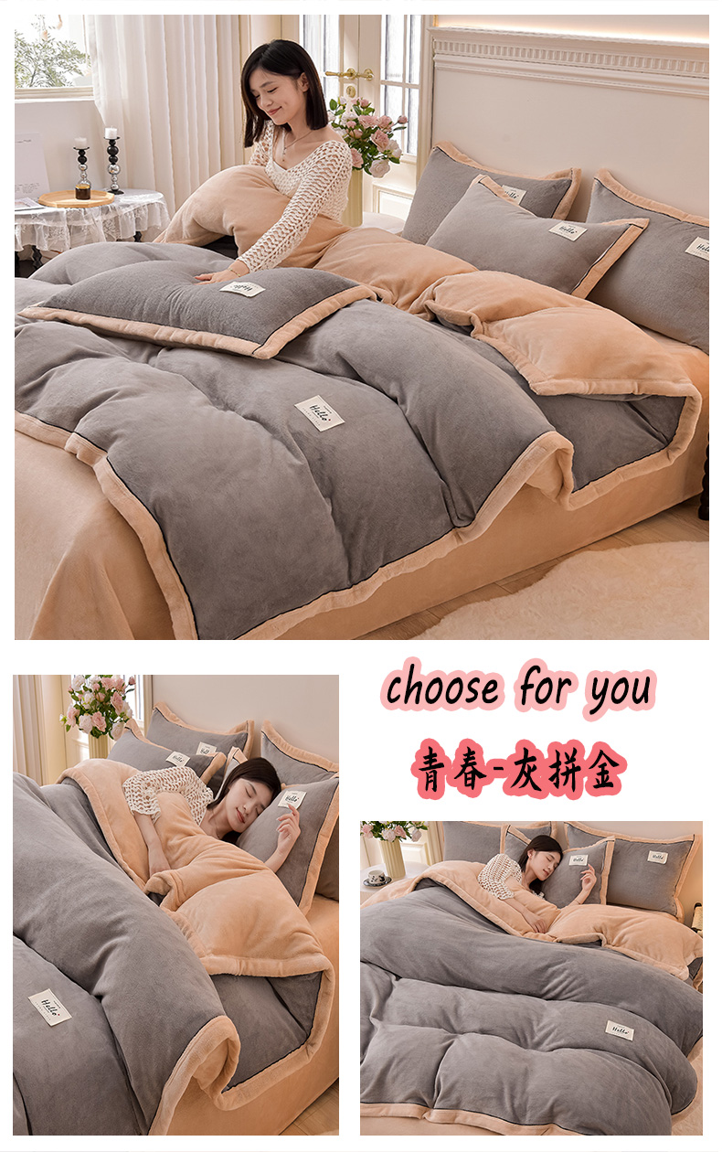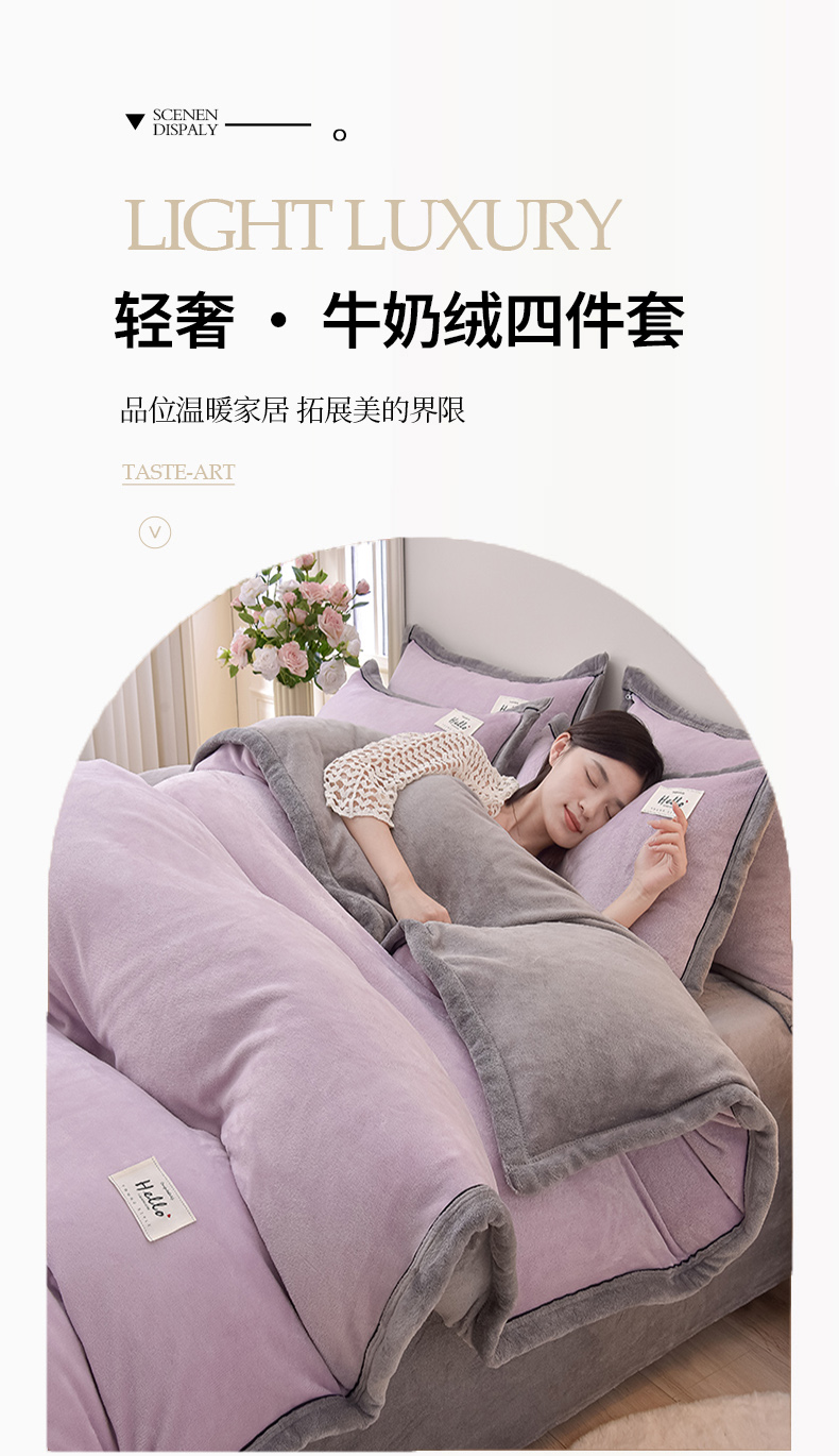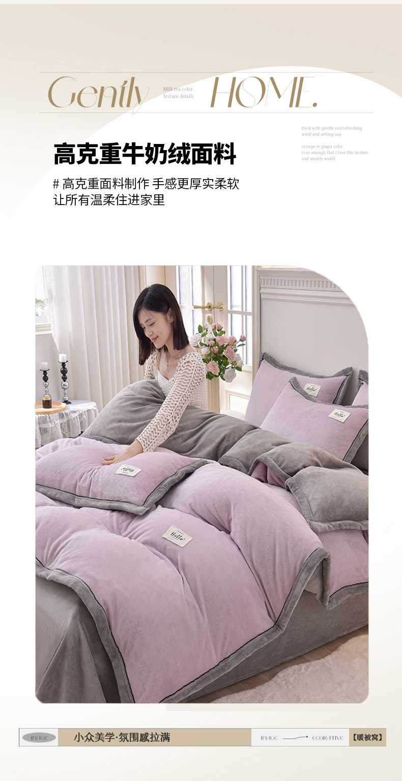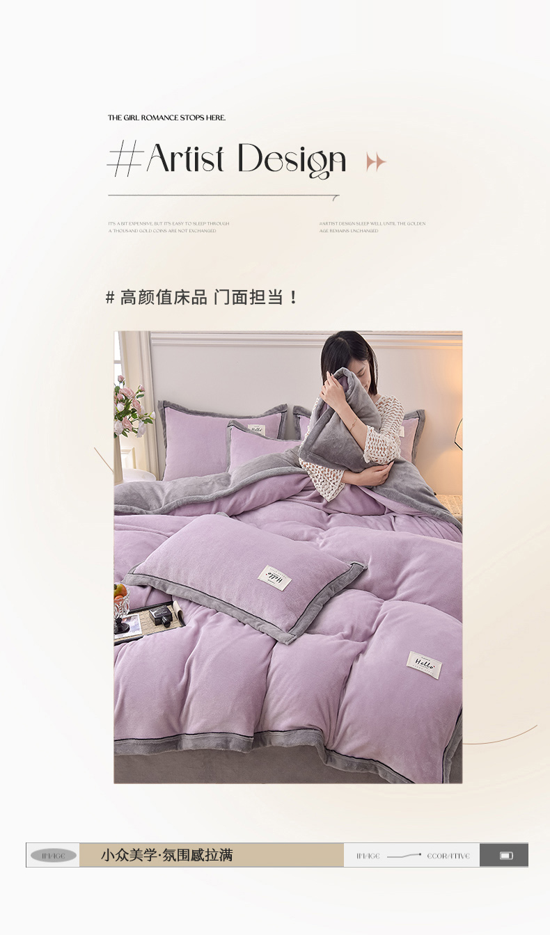 当前位置: 91家纺网 > 商品网购 > 床品套件 > 四件套 > 牛奶绒四件套 > 云恋家纺 纯色双面绒牛奶绒床上用品四件套加厚绒法兰绒床笠被套罩床单双人 青春-紫拼灰
