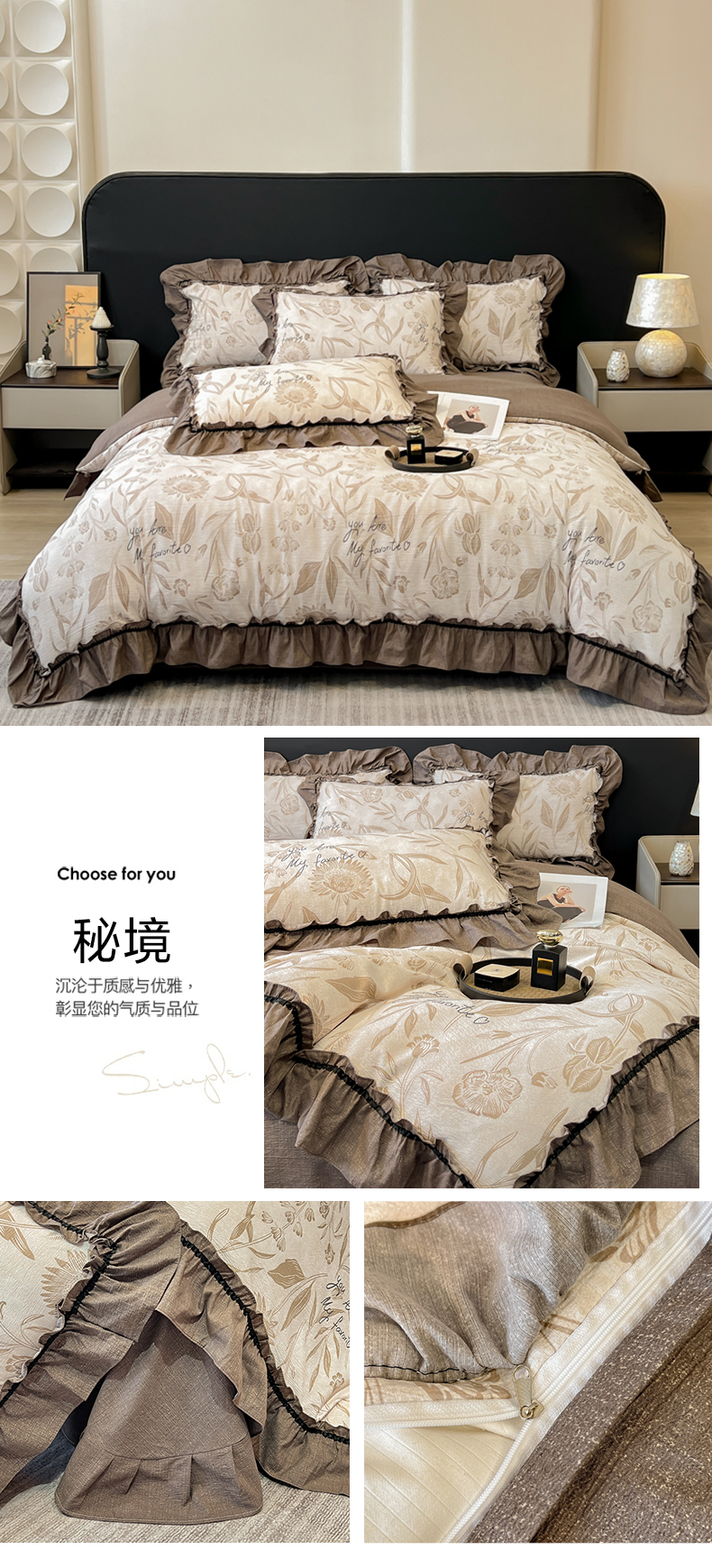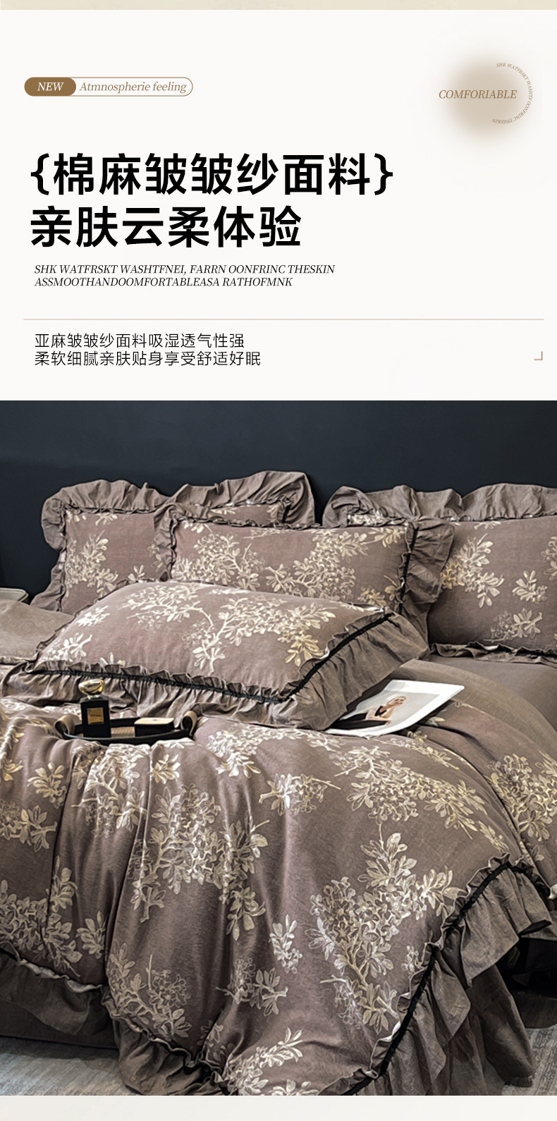 玉海棠家纺 2025新款法式花边棉麻四件套 繁花