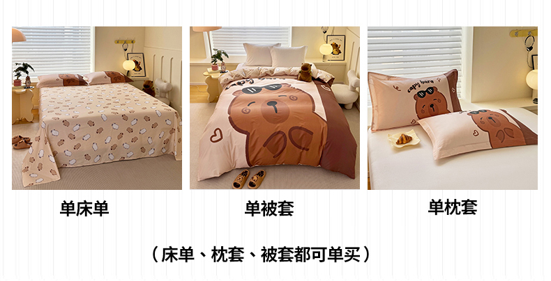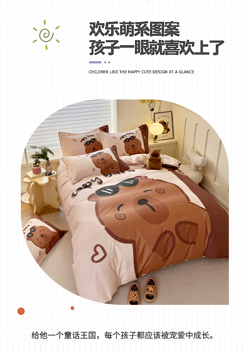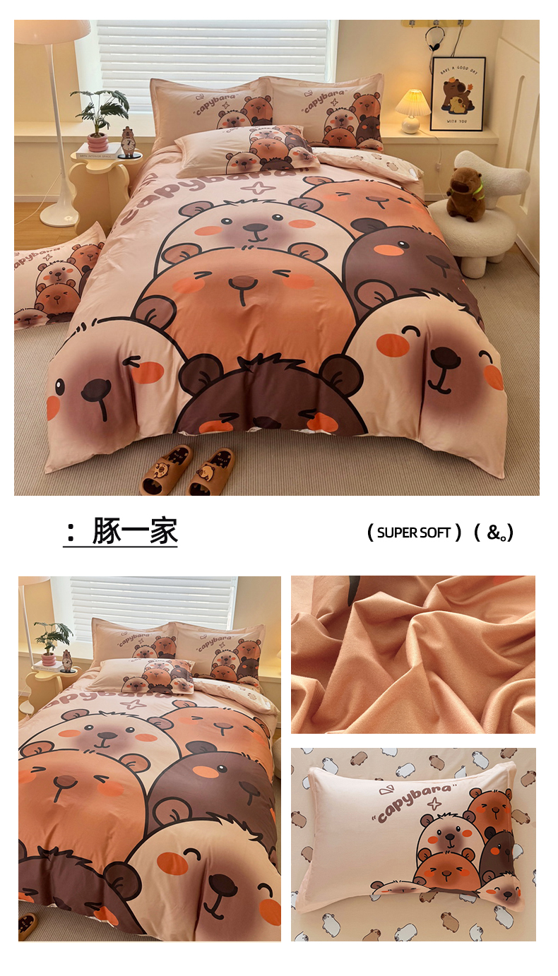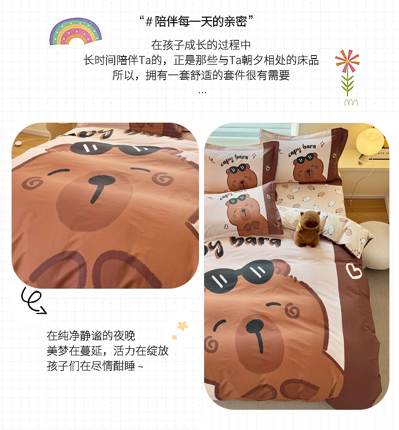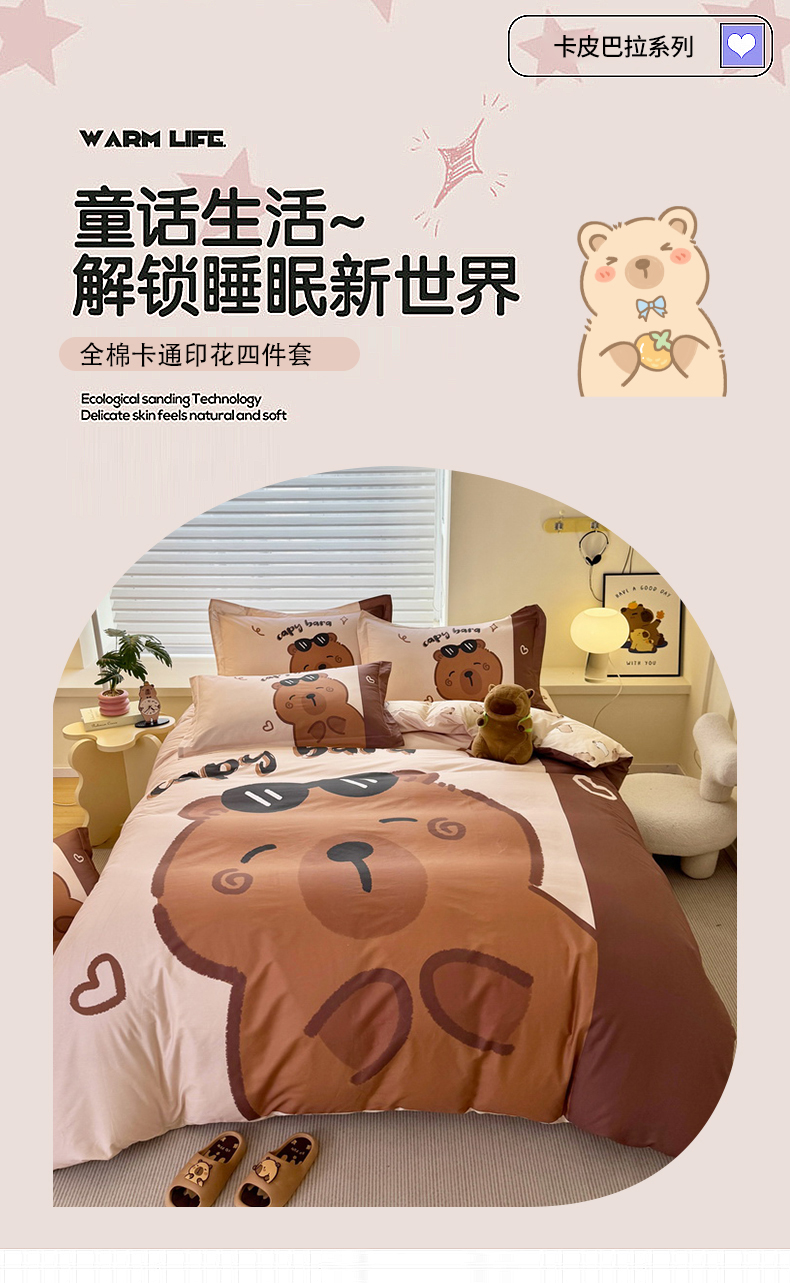 当前位置: 91家纺网 > 商品网购 > 床品套件 > 四件套 > 全棉普通四件套 > 蘭菲家纺 2025新款全棉大版卡皮巴拉系列四件套 皮小蛋