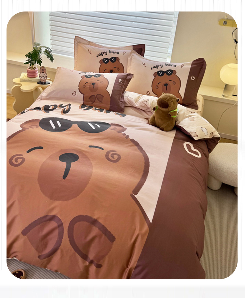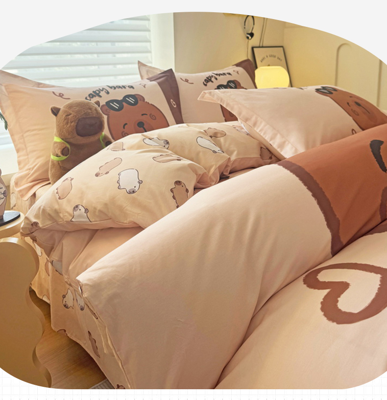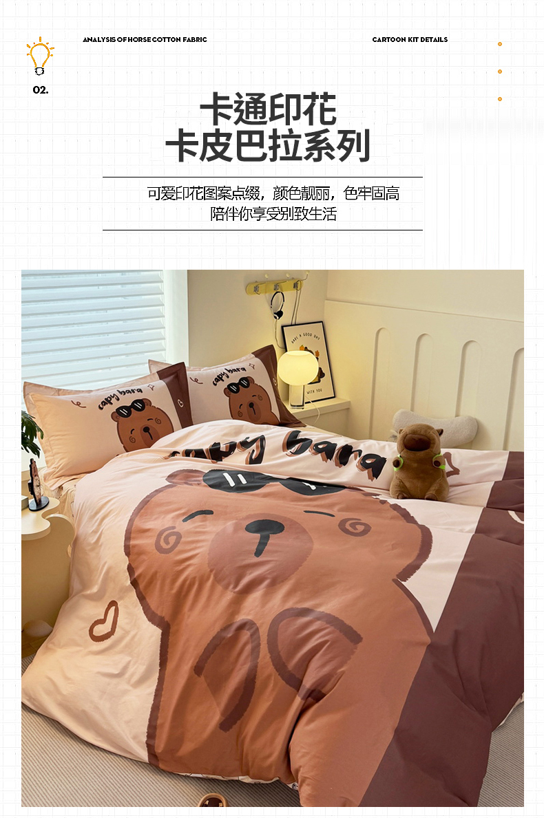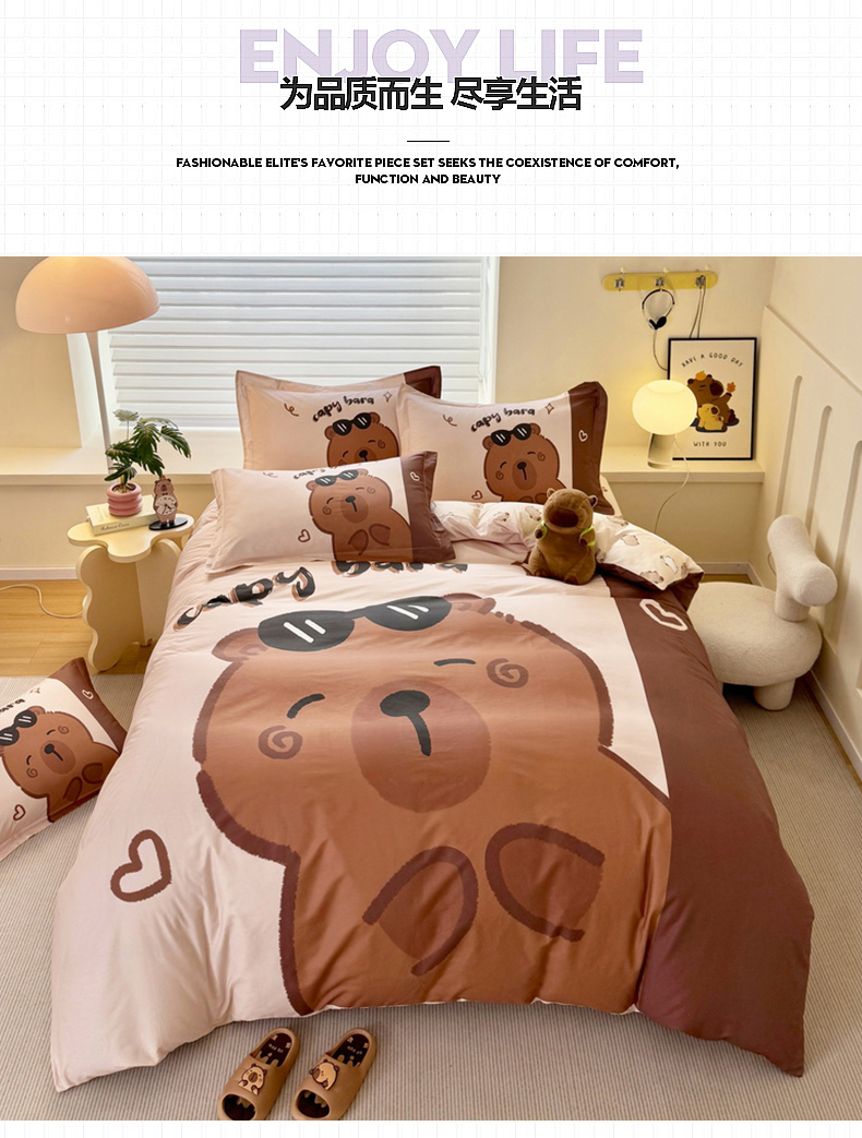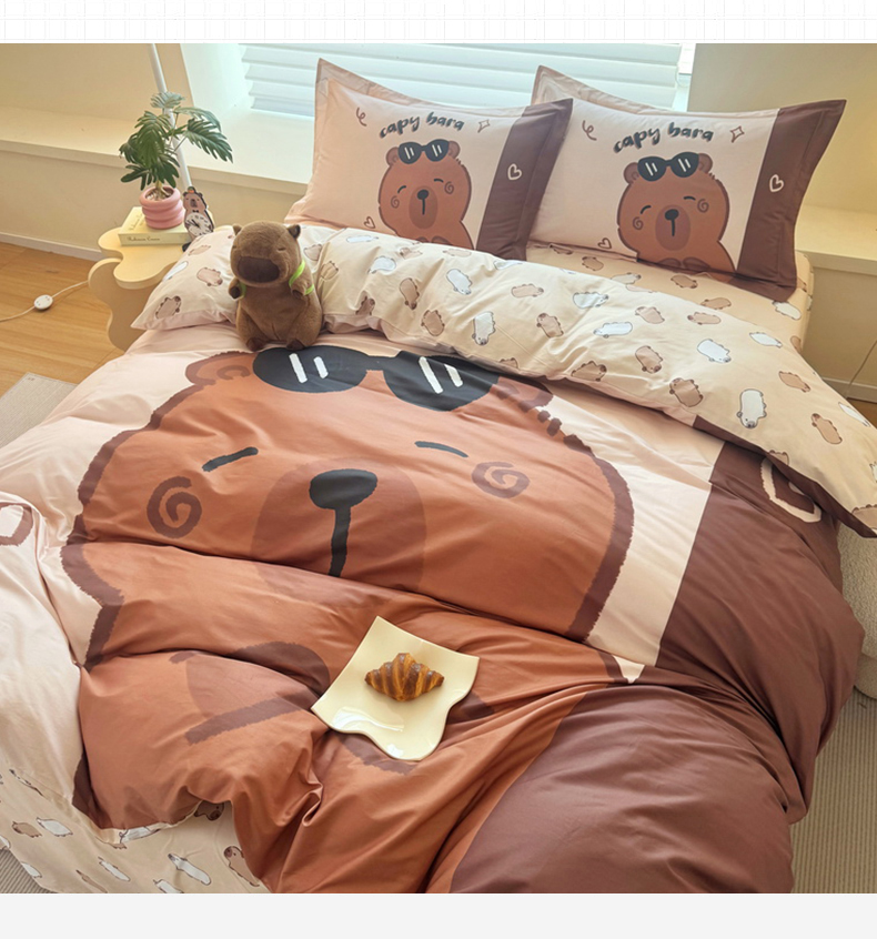 当前位置: 91家纺网 > 商品网购 > 床品套件 > 四件套 > 全棉普通四件套 > 蘭菲家纺 2025新款全棉大版卡皮巴拉系列四件套 皮小蛋