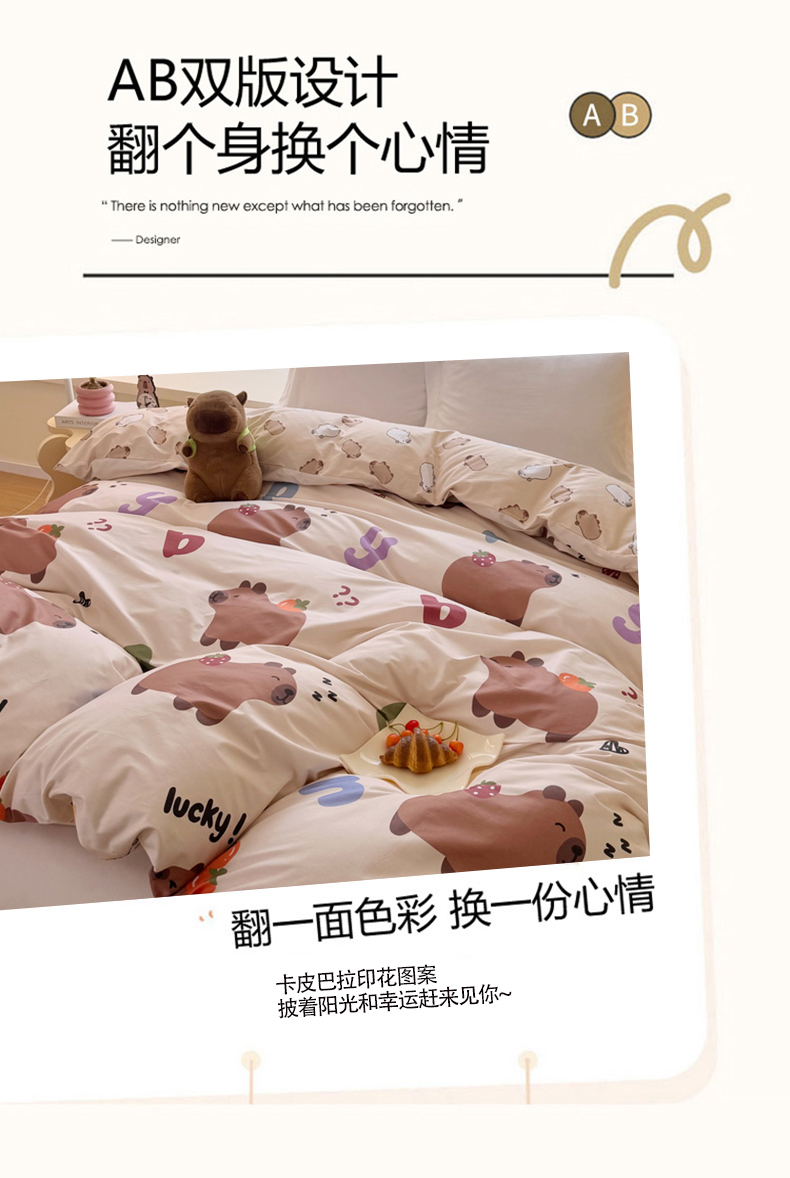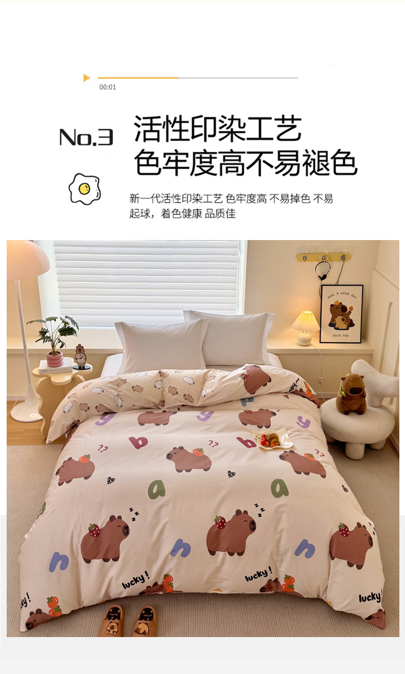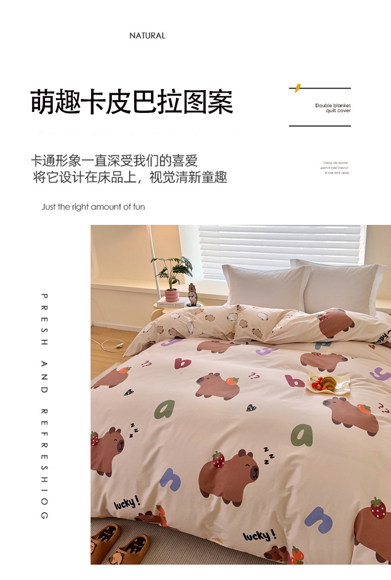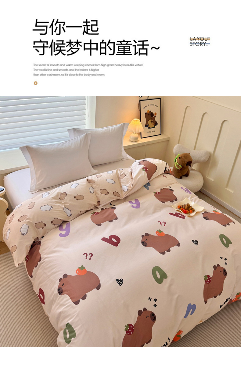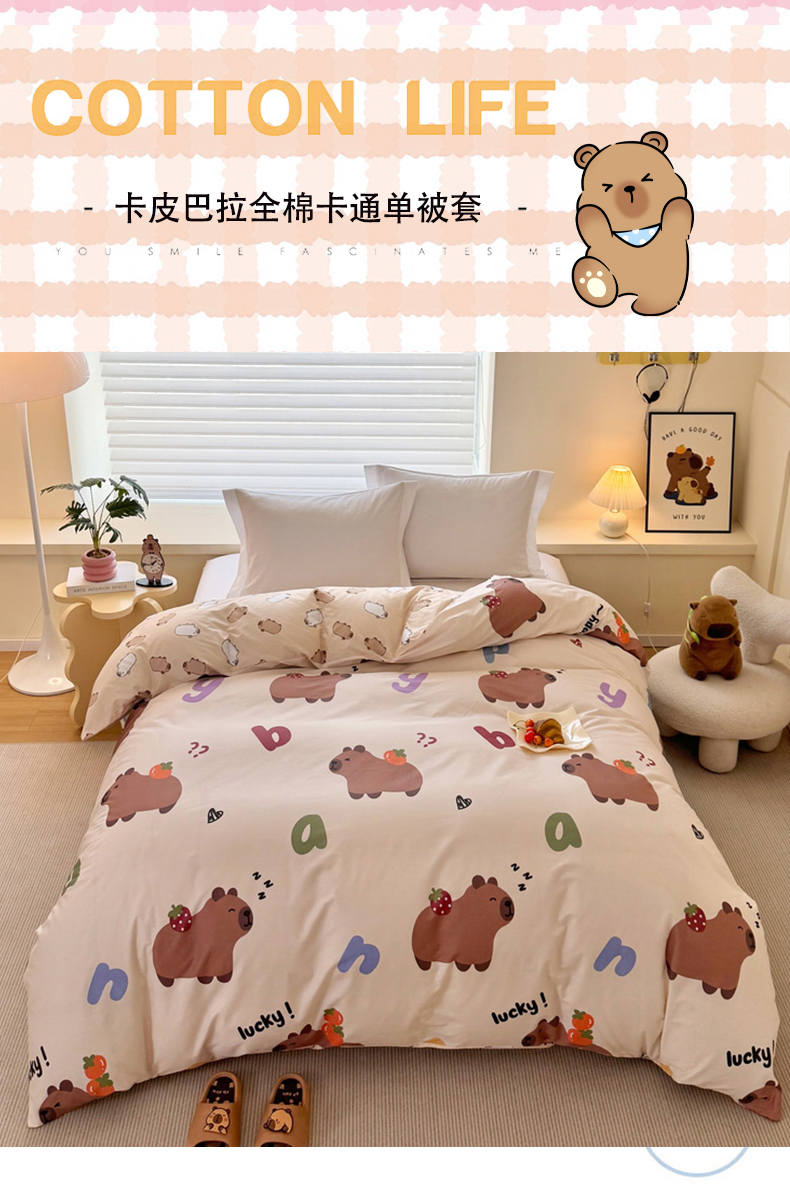 商品名称:蘭菲家纺 2025新款全棉小版卡皮巴拉系列单品被套 皮小萌