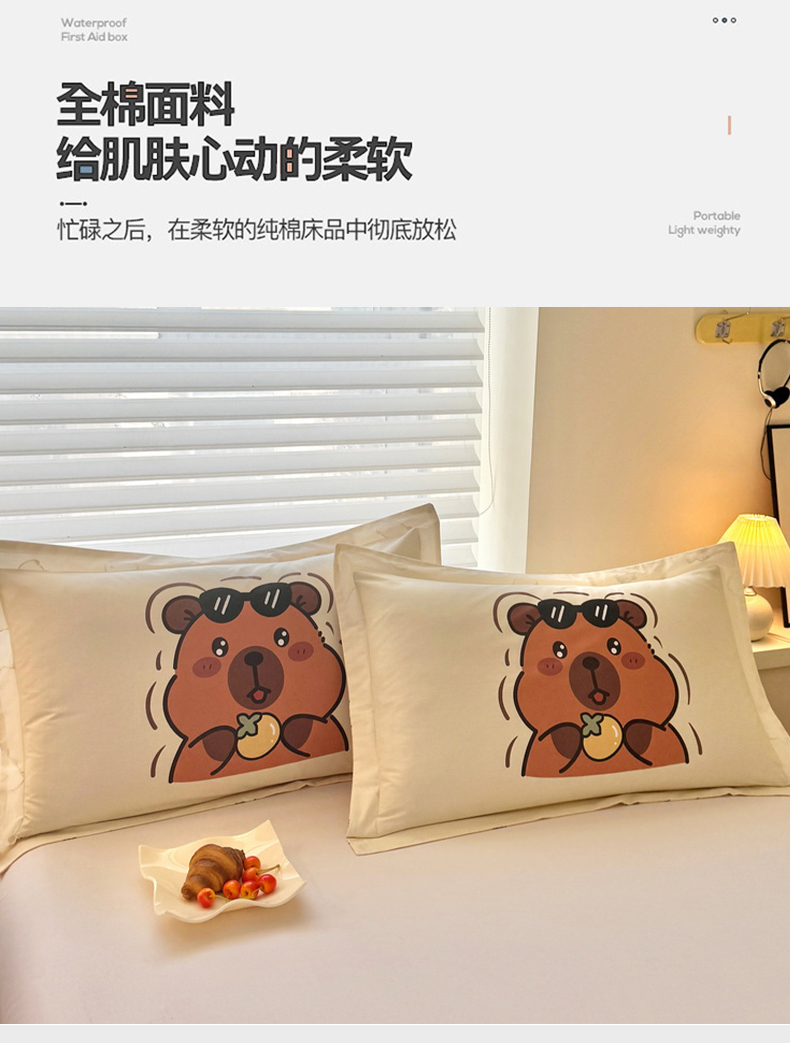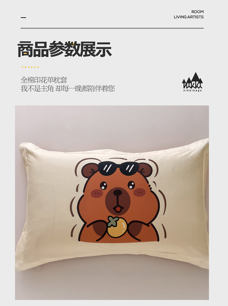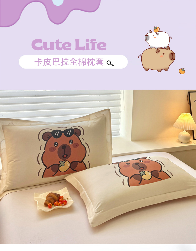 蘭菲家纺 2025新款全棉小版卡皮巴拉系列单品枕套 拉不动