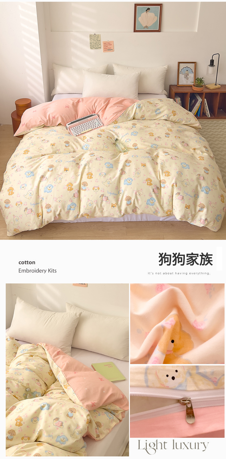 (总)DoDo 兜兜 2025新款卡通全棉纯棉小清新三四件套系列 (可定做尺寸),星星仔,爱豆熊,豹纹小熊,多彩笑脸,粉粉猫,狗狗家族,假日小狗,萝莉兔,蘑菇小狗,围裙小熊,小狗笔记