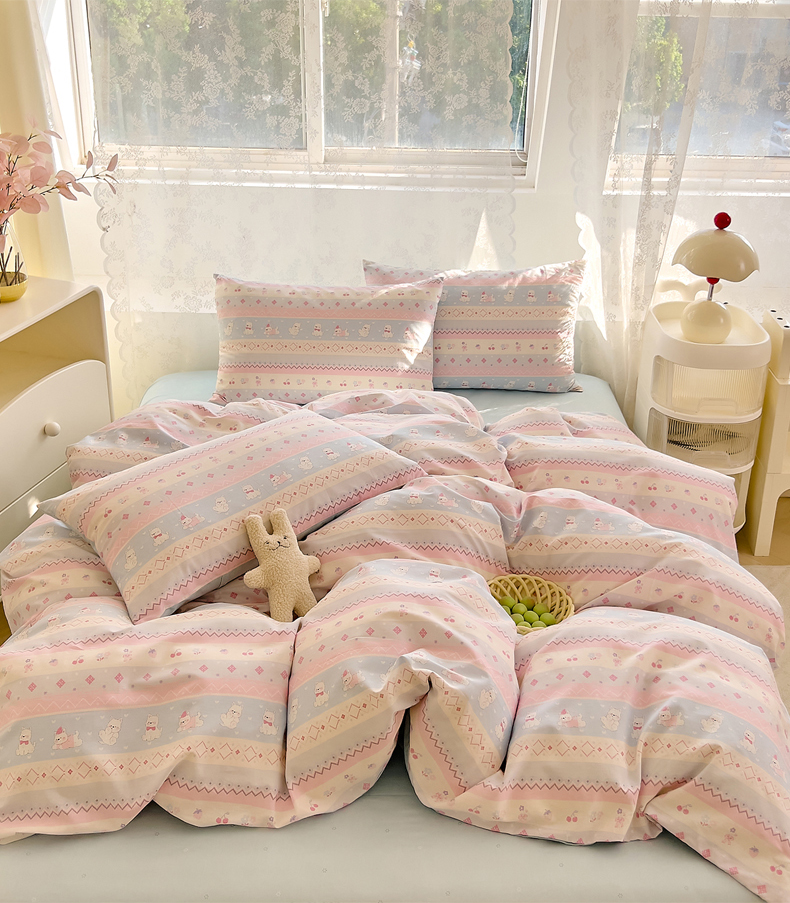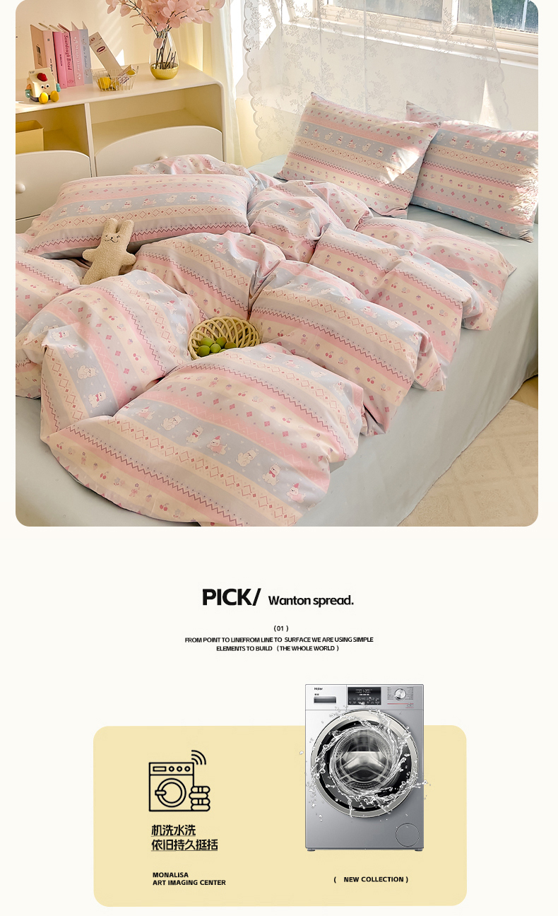 (总)DoDo 兜兜 2026新款全棉纯棉小温暖双层纱四件套【可定做尺寸】,缤纷小兔,春日女孩,春日小狗,丛林小兔,格子兔,蝴蝶兔兔,花园小狗,可可熊,快乐鸭,萌萌狮,气球小象,五彩樱桃,邂逅-粉,邂逅-黄,幸福小象-绿,雅颜,柚香