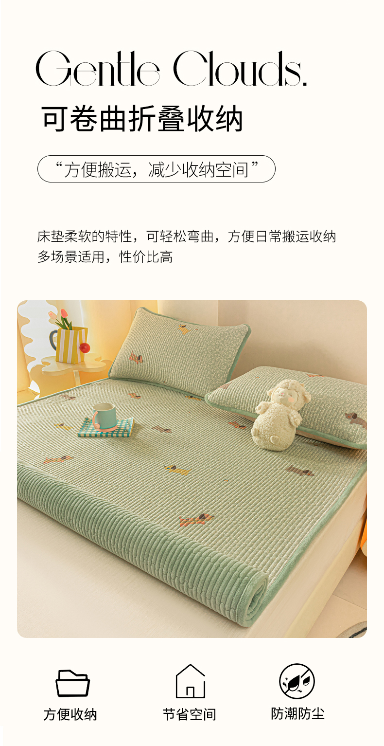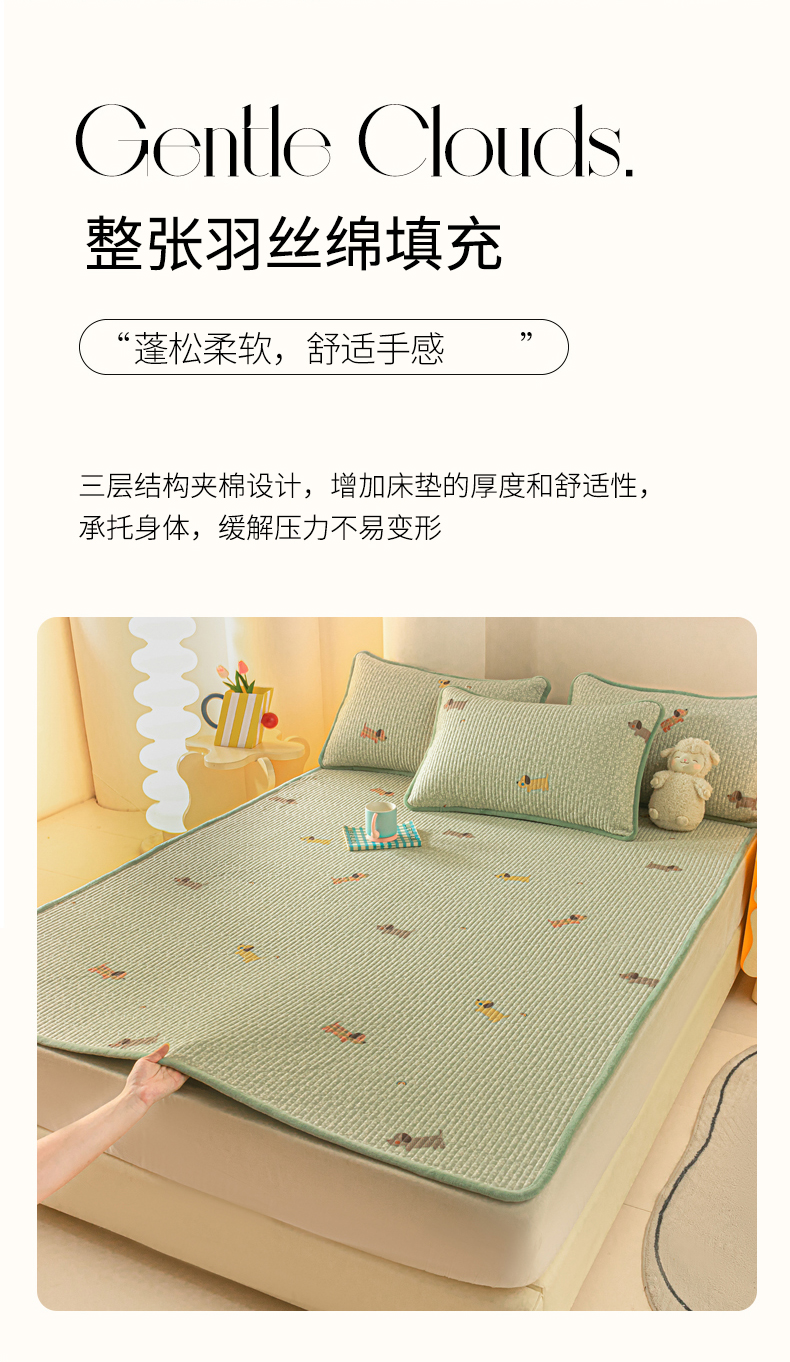 • 91家纺网 家纺一手货源 找家纺 恒尚居 2025新款A版全棉B版牛奶绒夹棉床褥垫A类四季可用学生床垫-秋冬款三件套系列二 布丁狗【A纯棉-B牛奶绒】