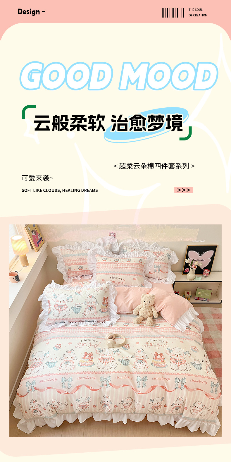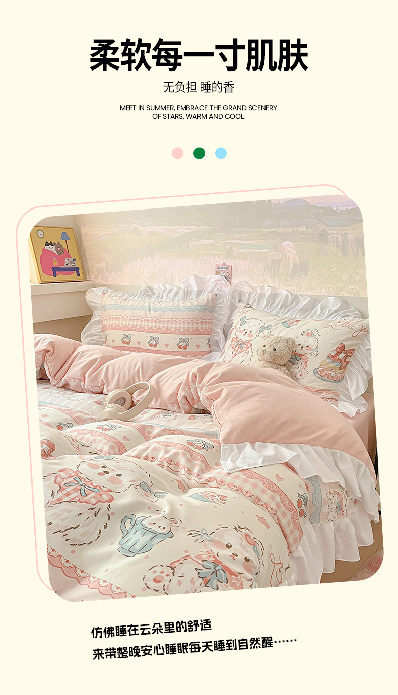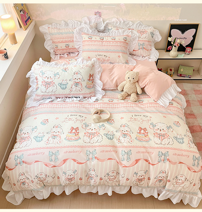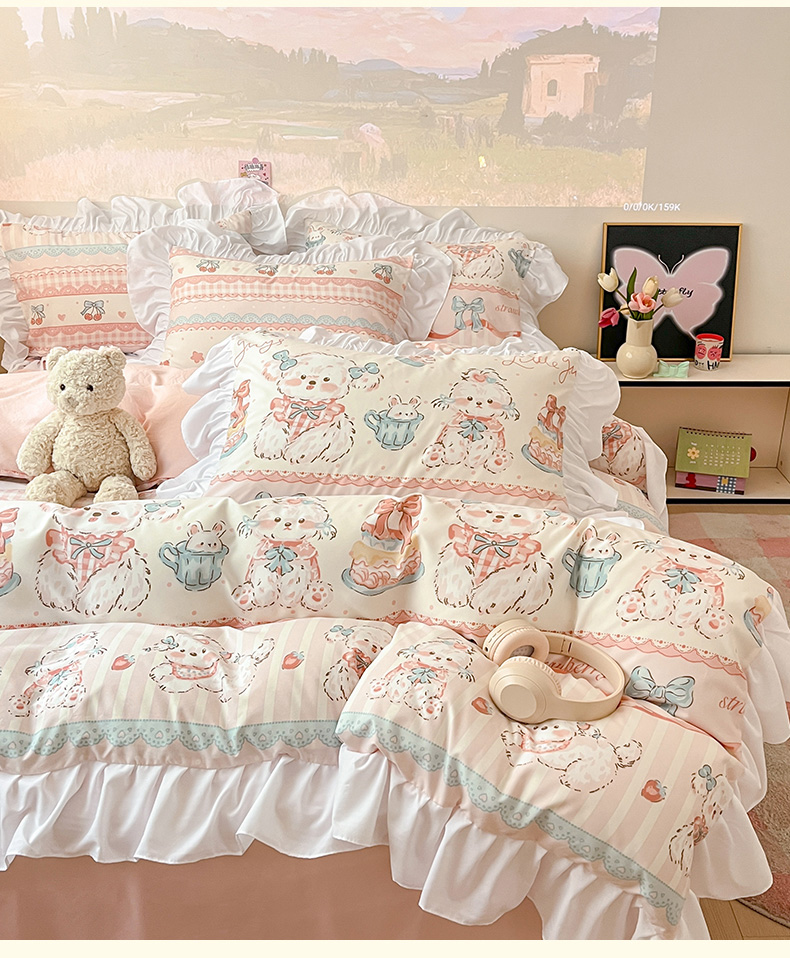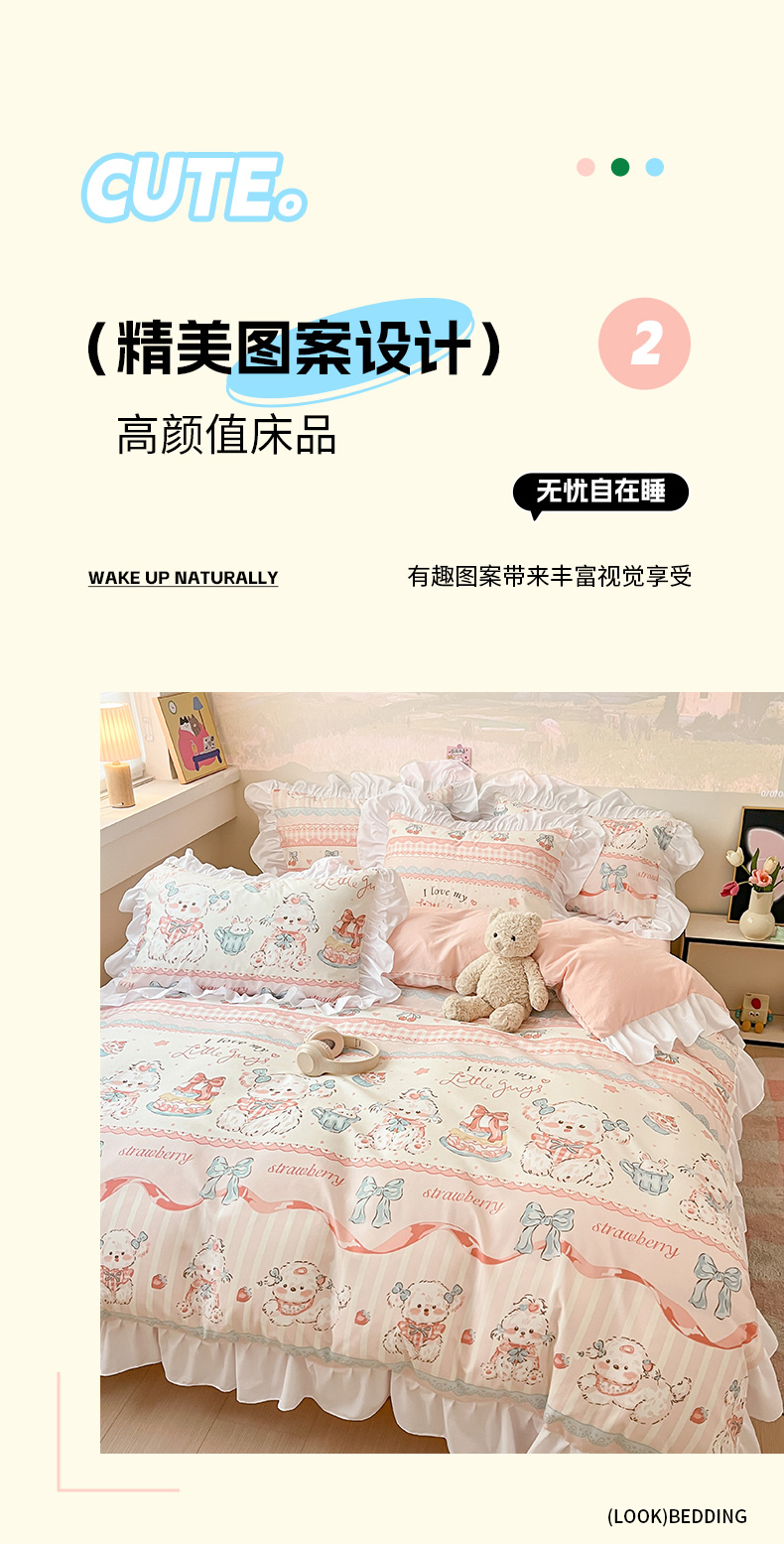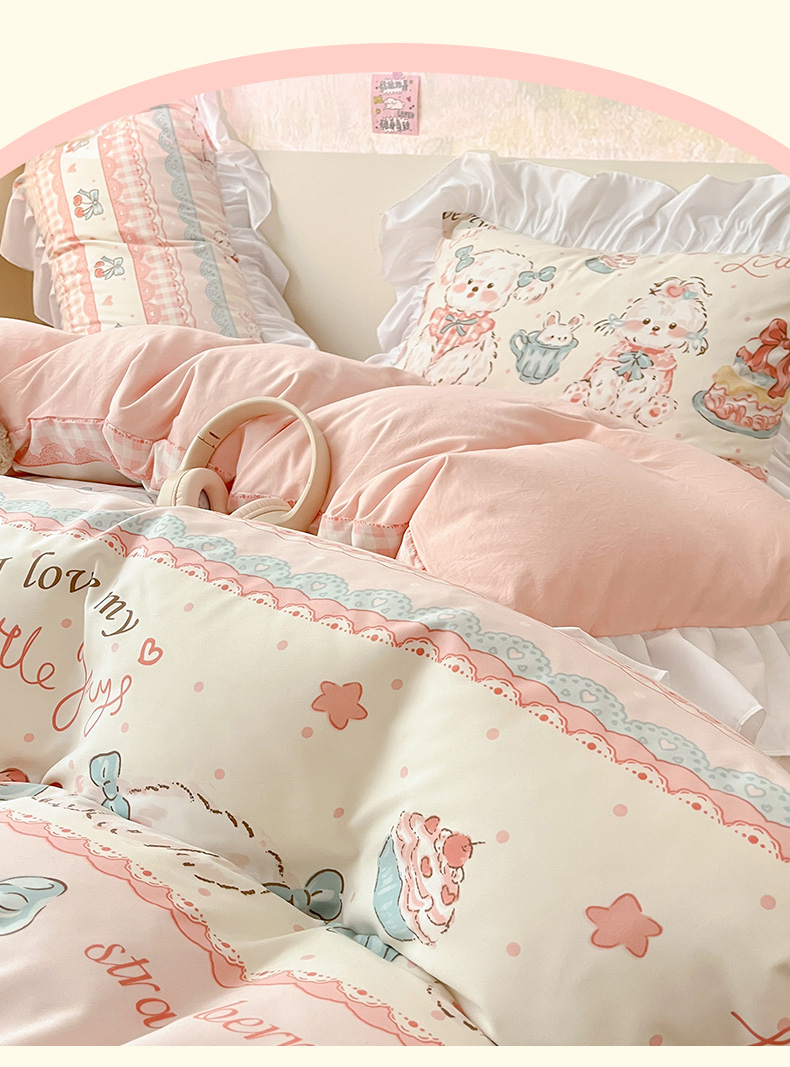 当前位置: 91家纺网 > 商品网购 > 床品套件 > 三件套 > 曼陀罗 2025新款云柔棉韩式INS减龄花边款卡通学生宿舍上下铺三件套 甜品可爱狗