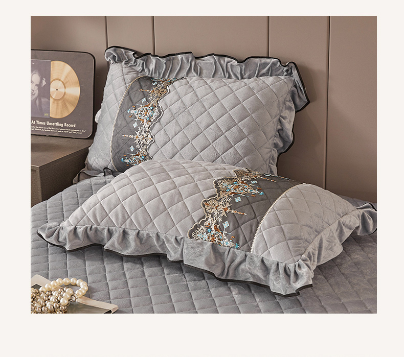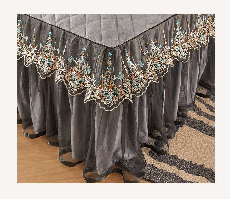 • 91家纺网 家纺一手货源 找家纺 恋尚 2025新款水晶绒保暖床裙三件套-梵蒂莎(床裙控价130起) 梵蒂莎-灰