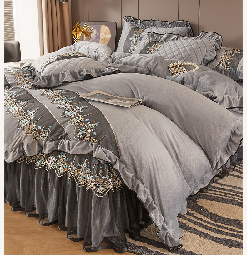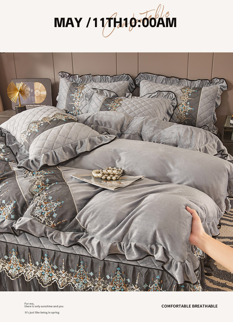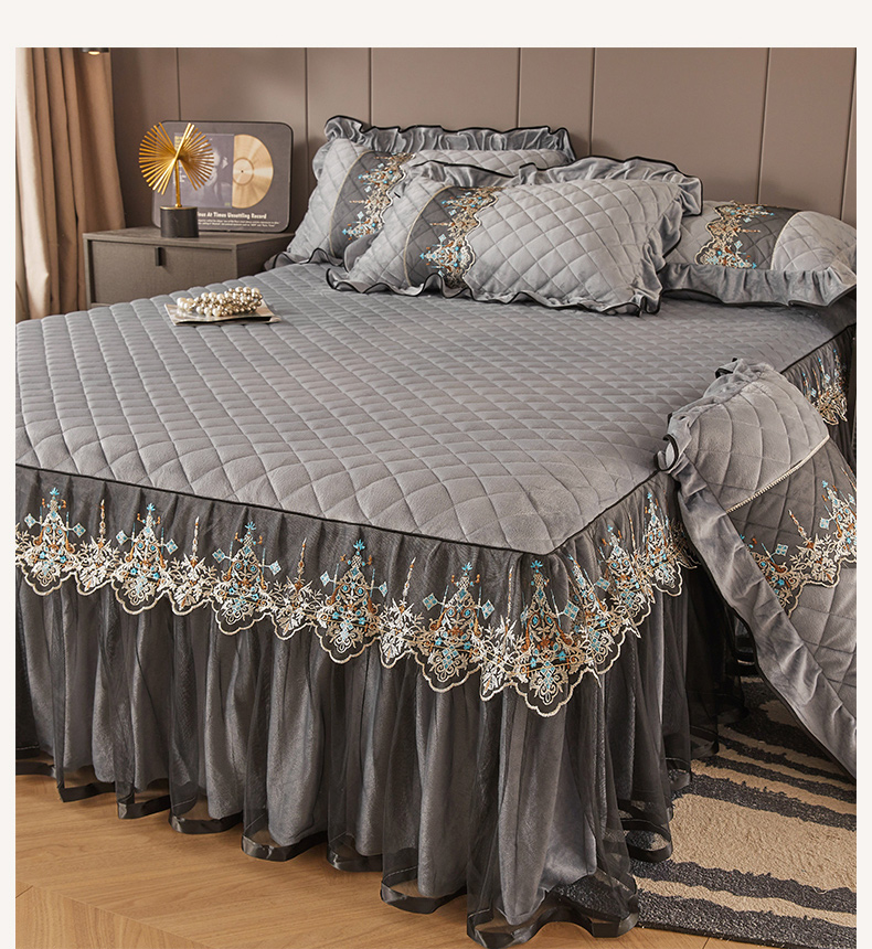 恋尚 2025新款水晶绒保暖床裙三件套-梵蒂莎(床裙控价130起) 梵蒂莎-灰