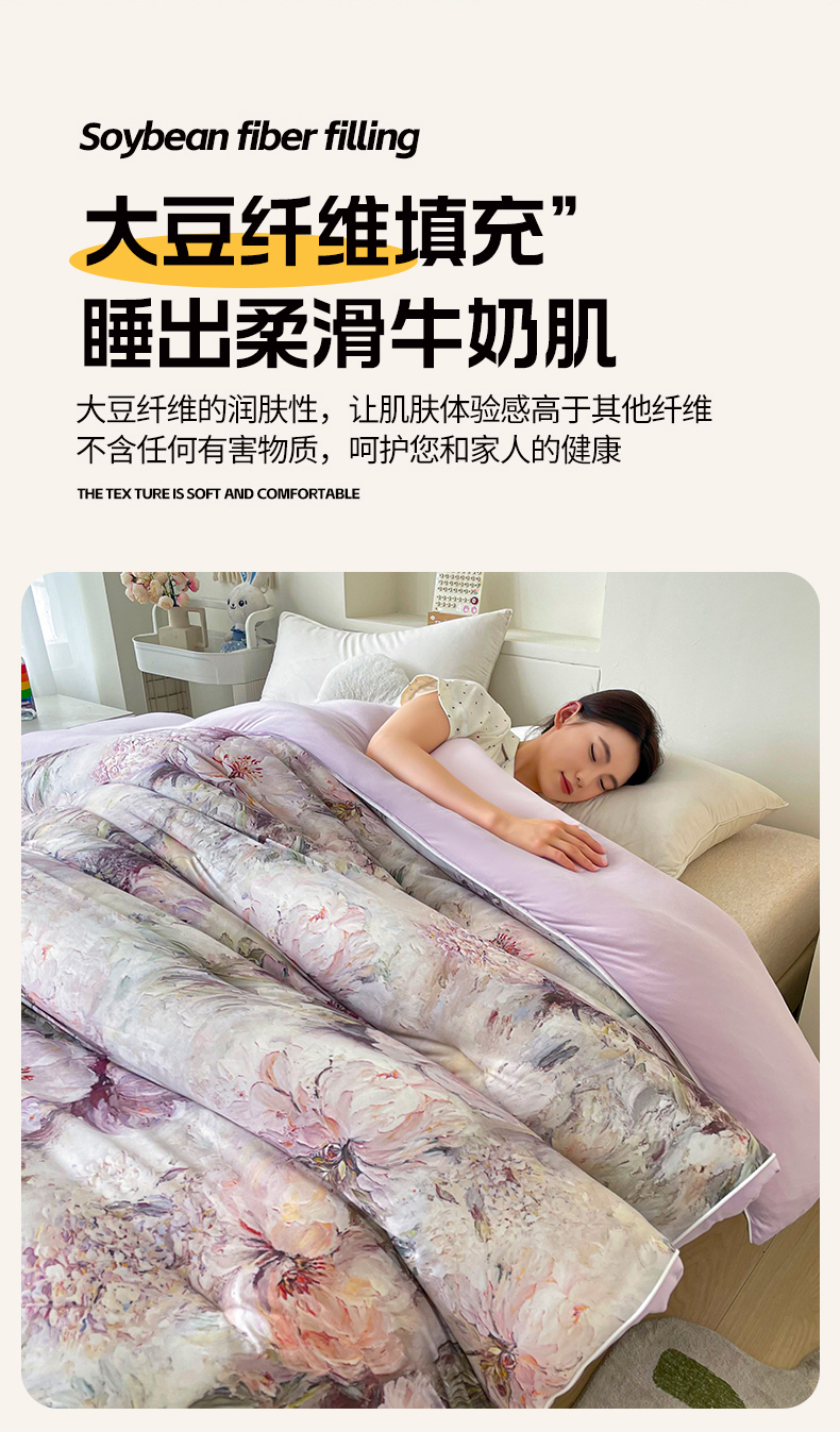 • 填充纤维种类: 大豆蛋白改性聚酯纤维