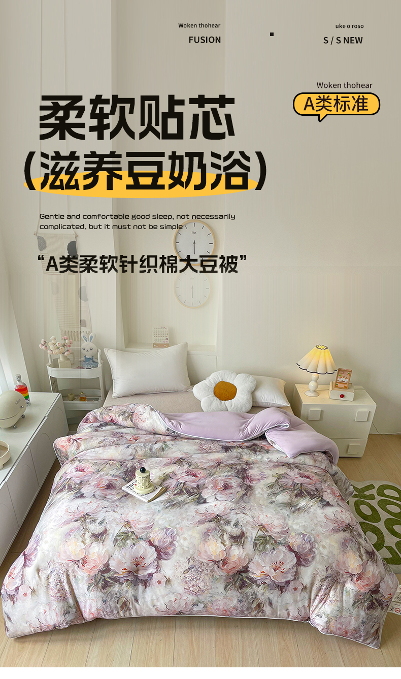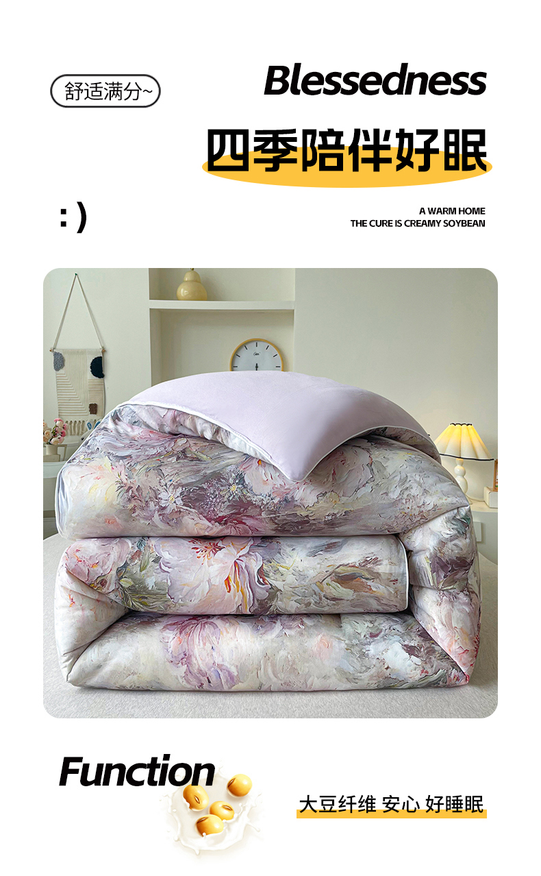 • 91家纺网 家纺一手货源 找家纺 小禹仔家纺  2025新款亲肤柔软大豆被数码印花针织棉大豆被冬被子被芯春秋被 云裳兰,云裳兰