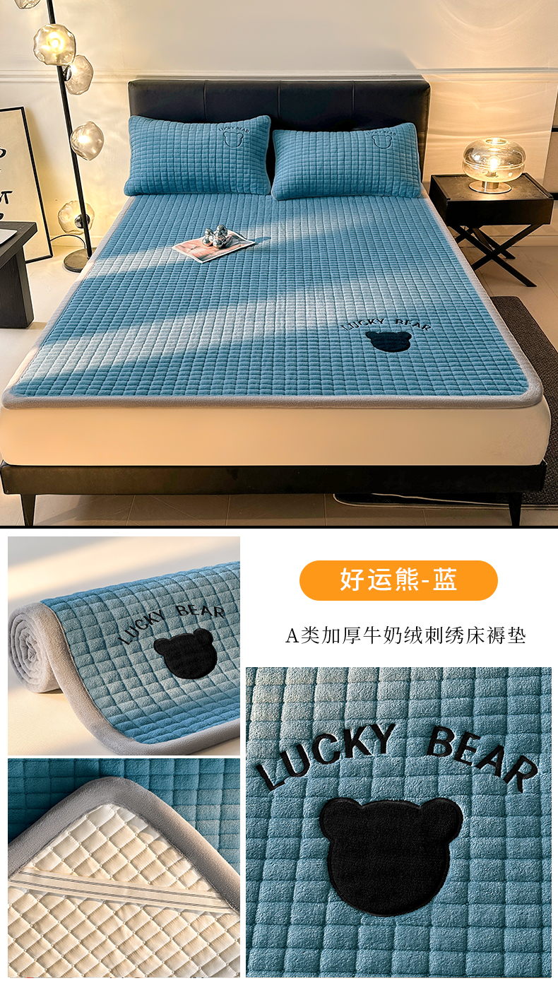 当前位置: 91家纺网 > 商品网购 > 床垫/床褥 > 功能床垫 > 梵朴 2025新款A类贴布绣牛奶绒夹棉床垫学生宿舍床褥垫子-好运熊系列 好运熊-蓝