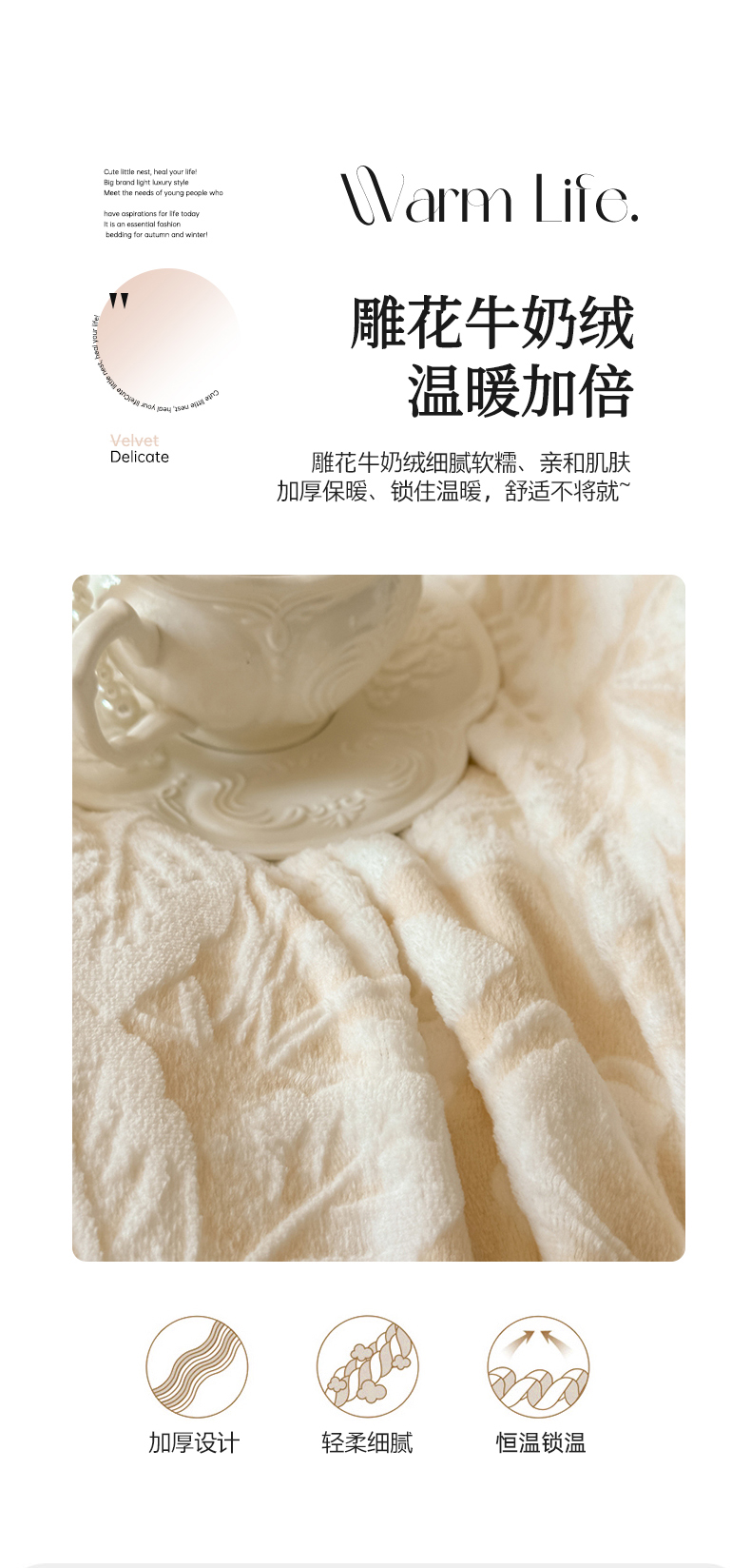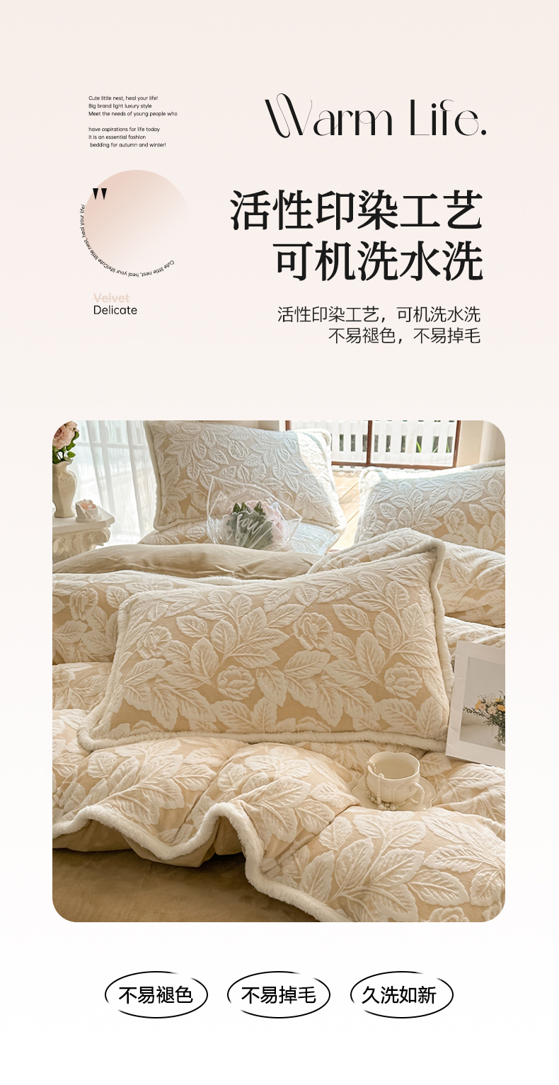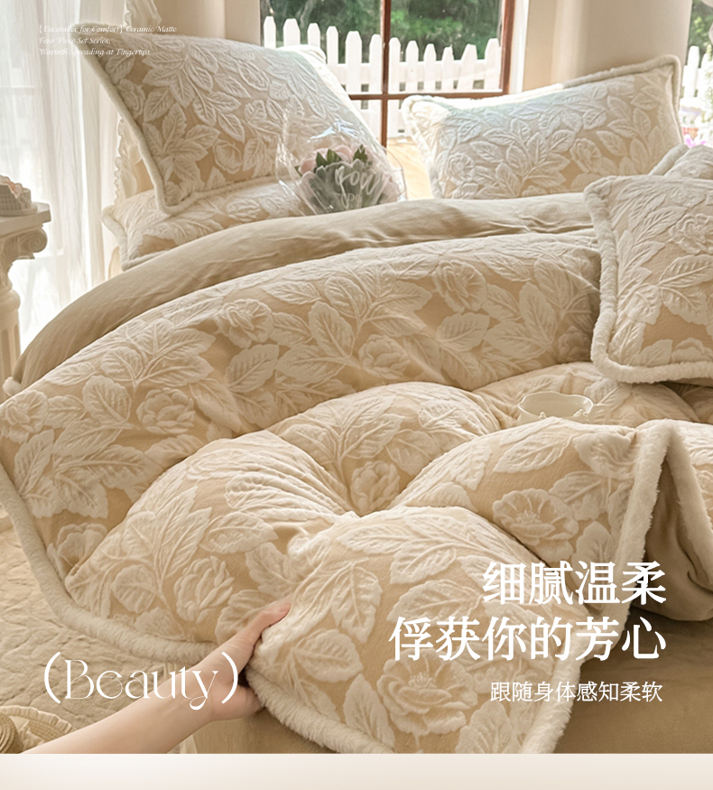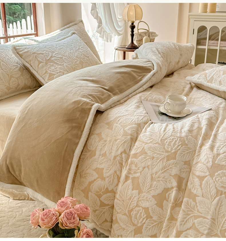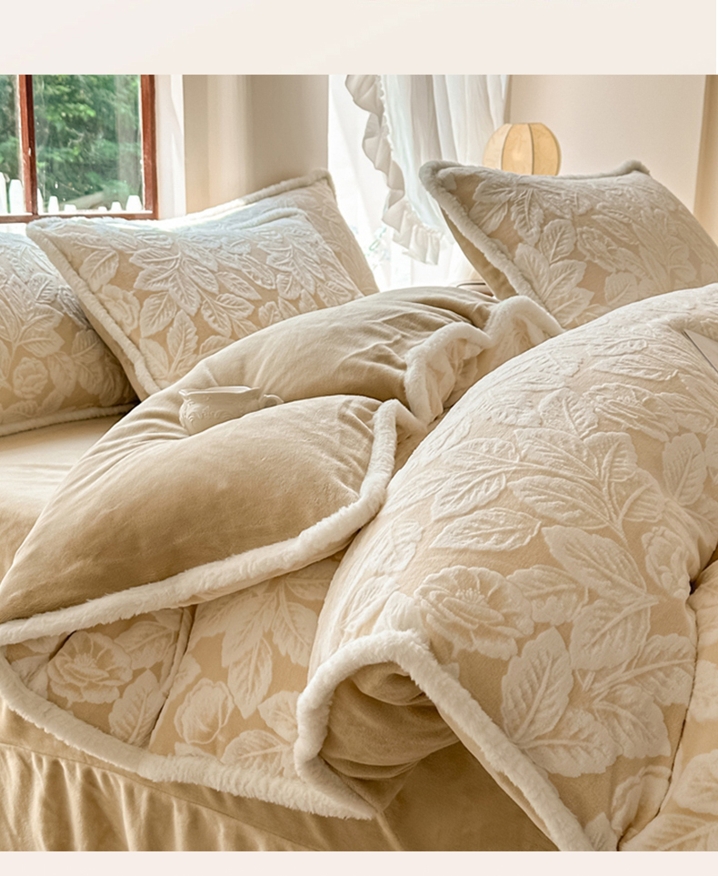 商品名称:亿品家纺 2025新款八斤立体雕花牛奶绒四件套 叶中花【卡其】
