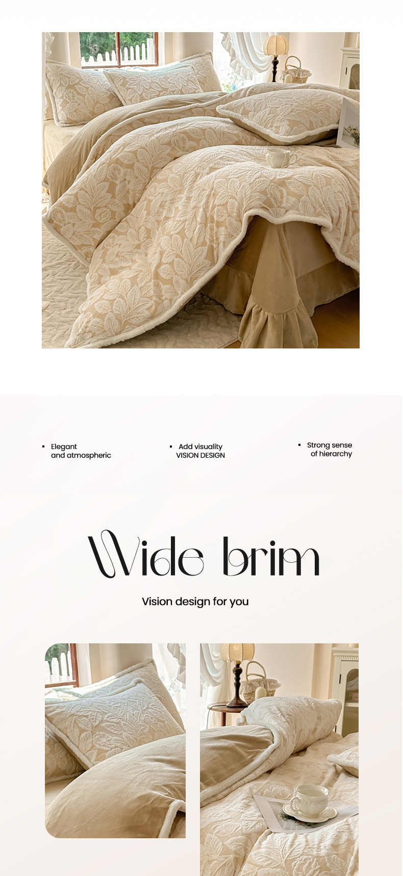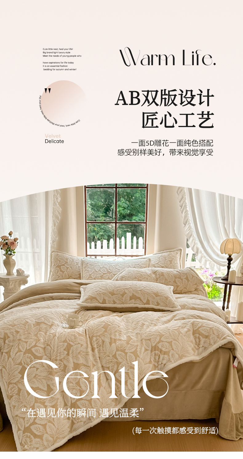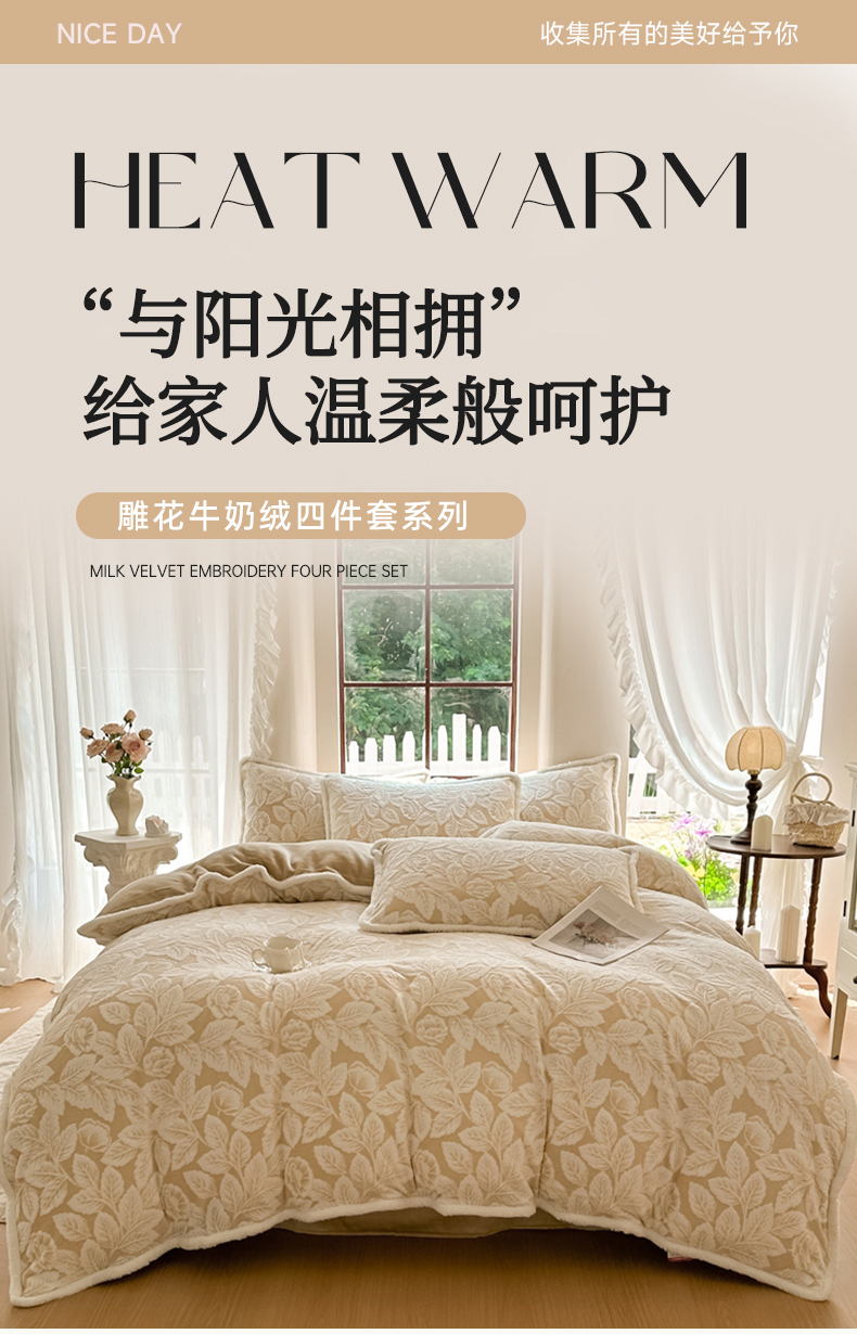 亿品家纺 2025新款八斤立体雕花牛奶绒四件套 叶中花【卡其】