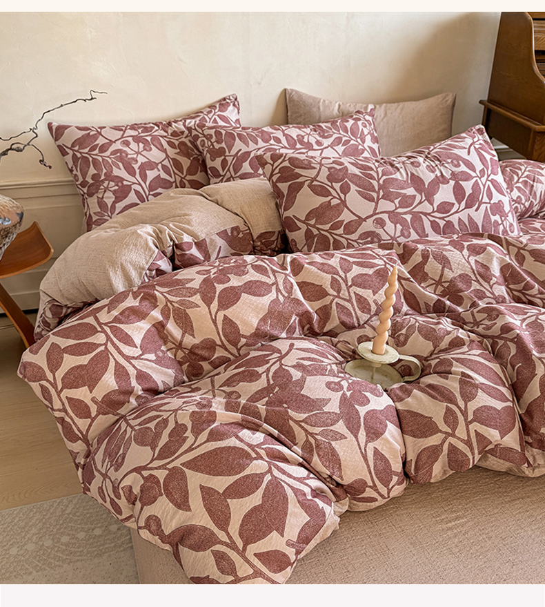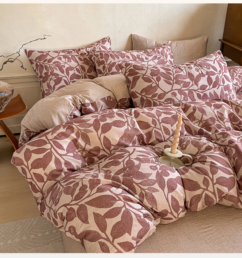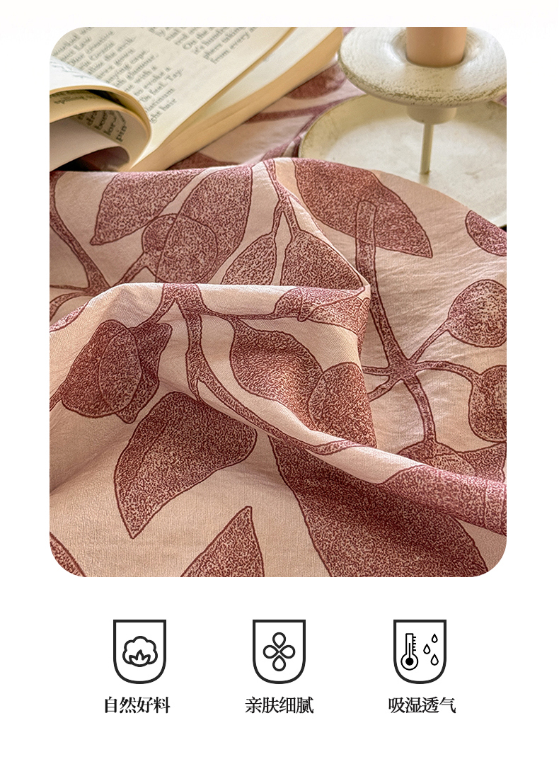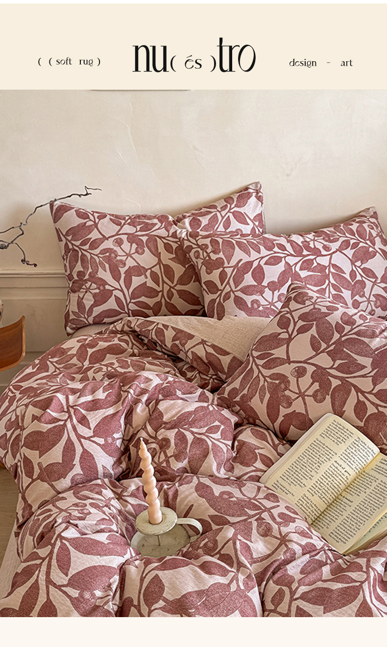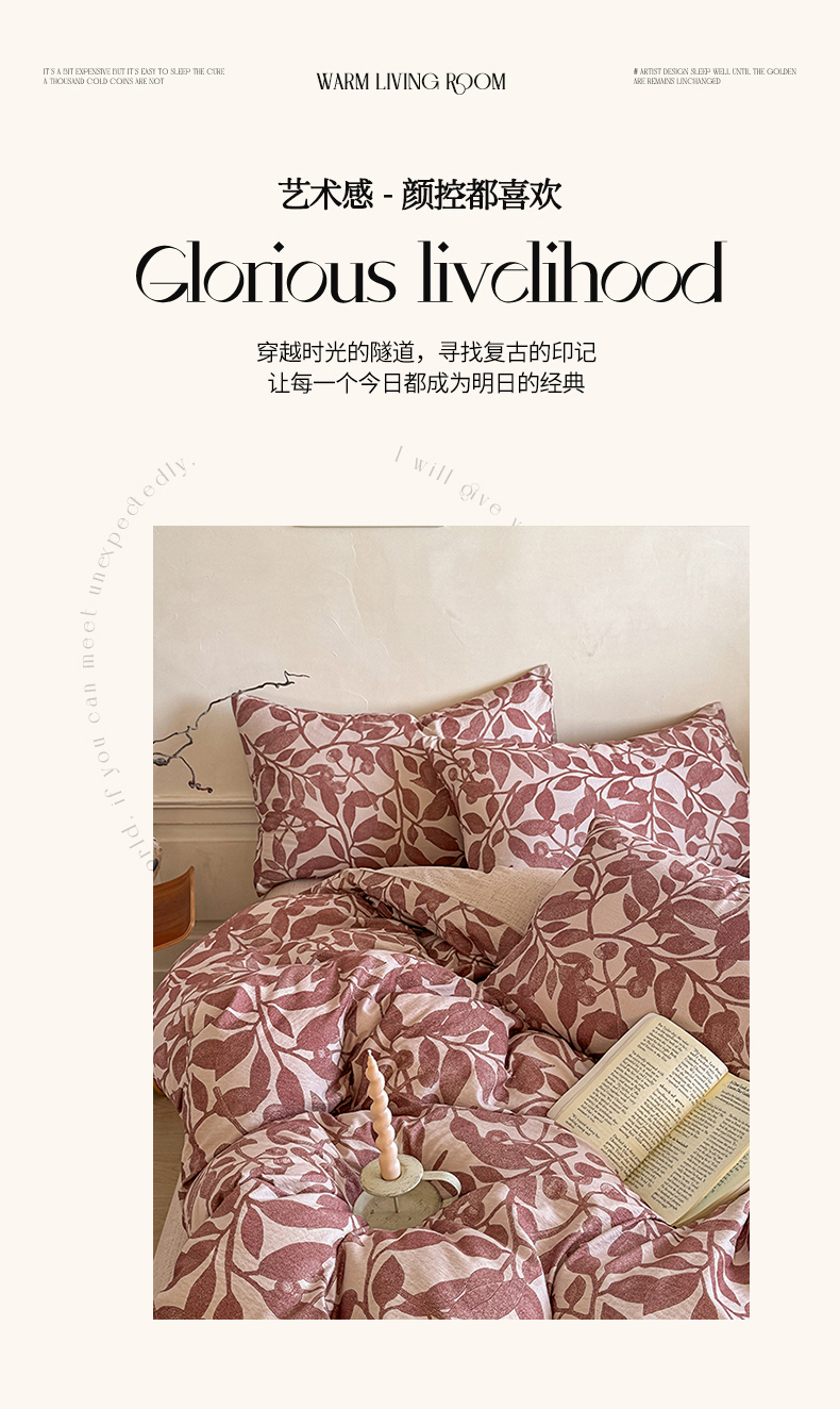 商品名称:壹号库家纺 2025年新品A类仿麻中古风皱皱纱双层纱四件套 芳华