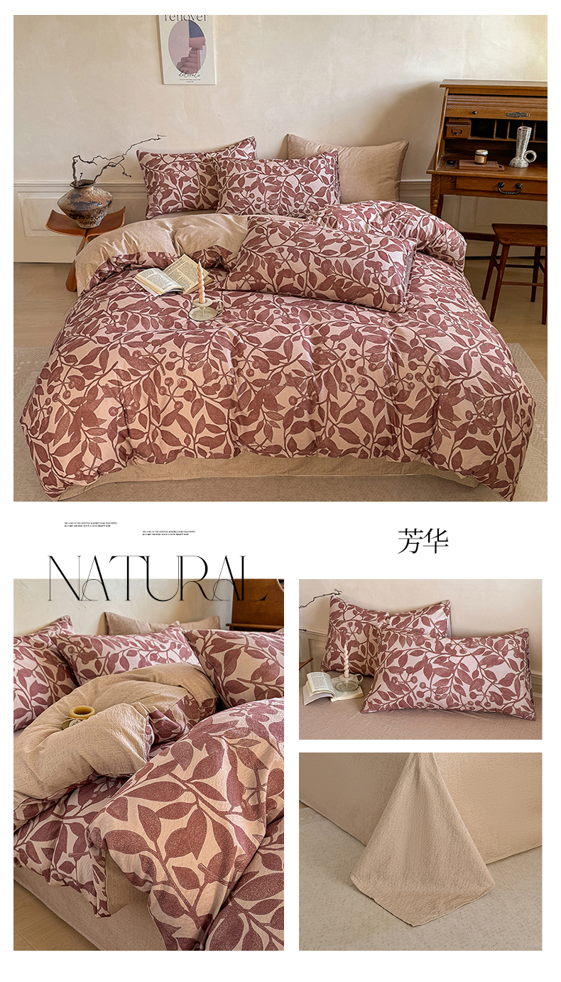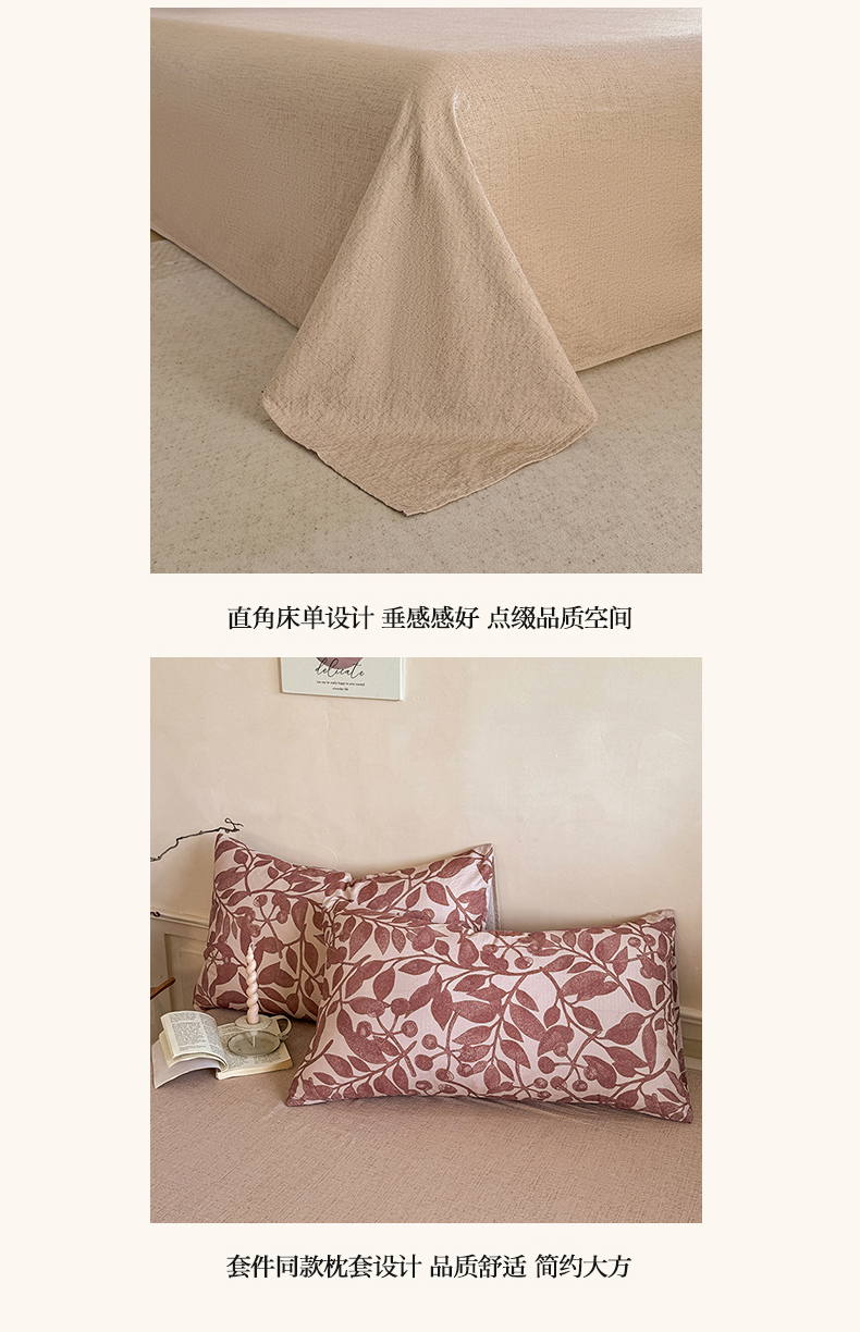 (总)壹号库家纺 2025新款水洗皱皱纱四件套-简单款,白茶,兔巴巴,十里桃花,彩虹糖,梦露,无印兰格,丽莎,蕾丝小兔,甜茶,幸福里,快乐小象,西高地,豆蔻,草莓方糖,kiki猫,百福(兰),豹富-兰,芝士奶酪,春风里,豹富-粉,木兮绿