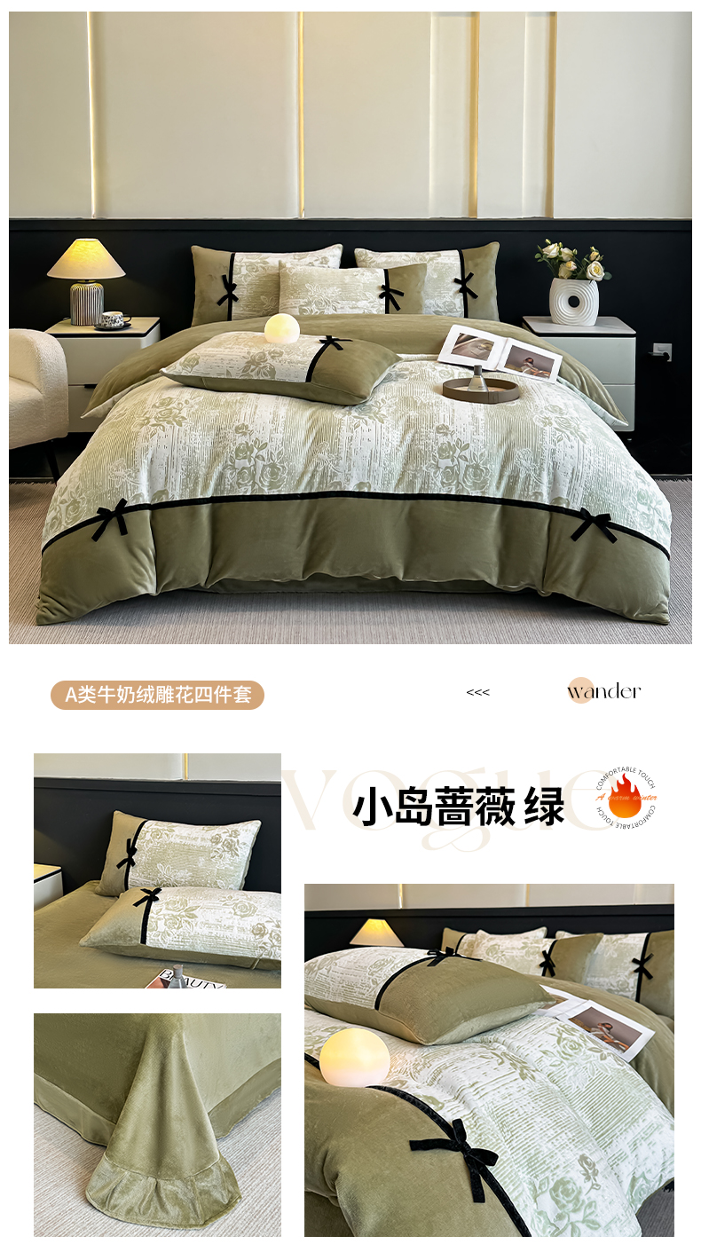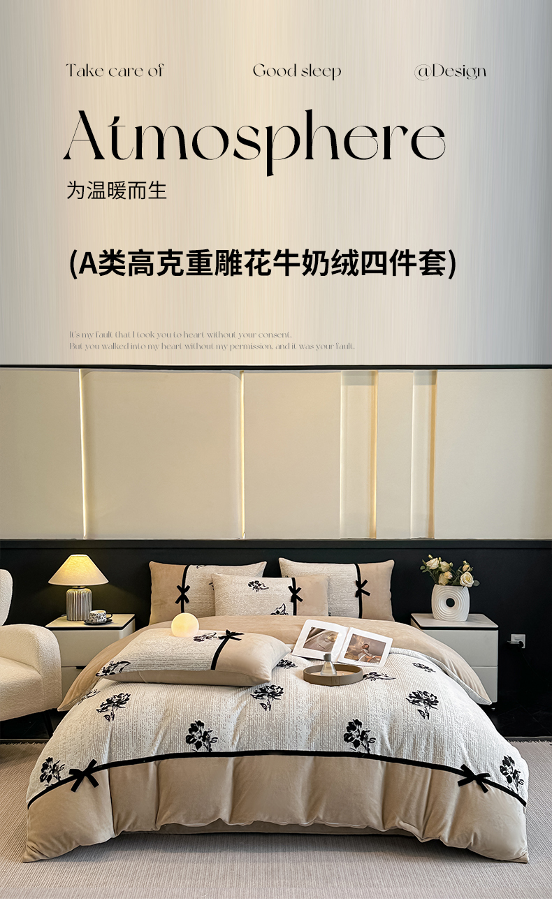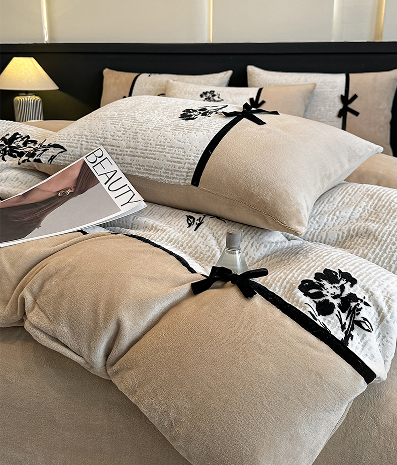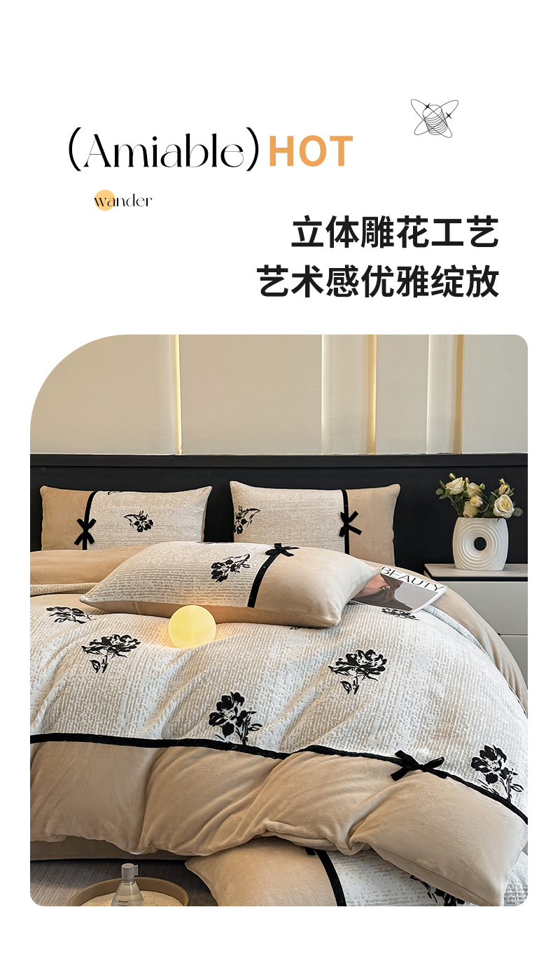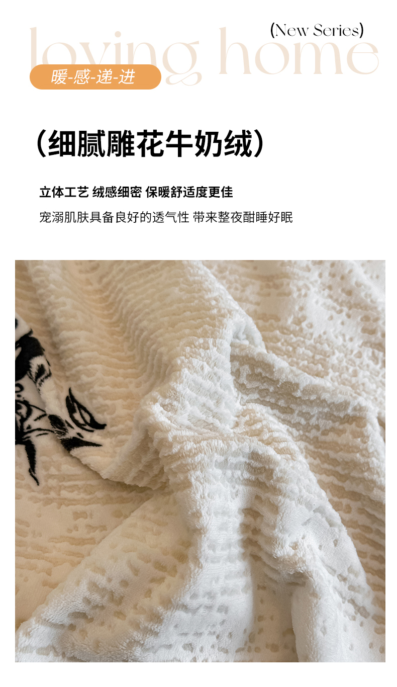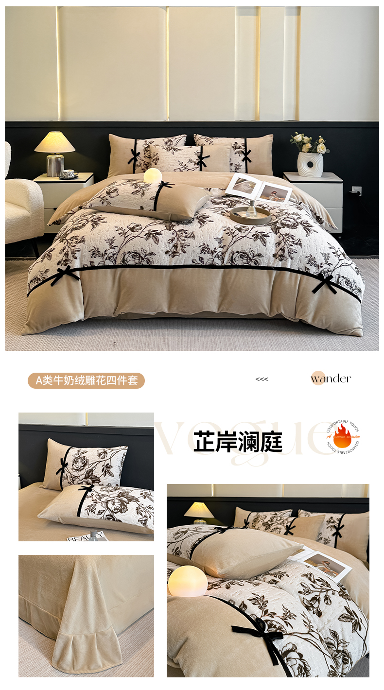 当前位置: 91家纺网 > 商品网购 > 床品套件 > 四件套 > 牛奶绒四件套 > 凯美家居 2025新款A类雕花牛奶绒四件套-美拉德系列 温婉花颜