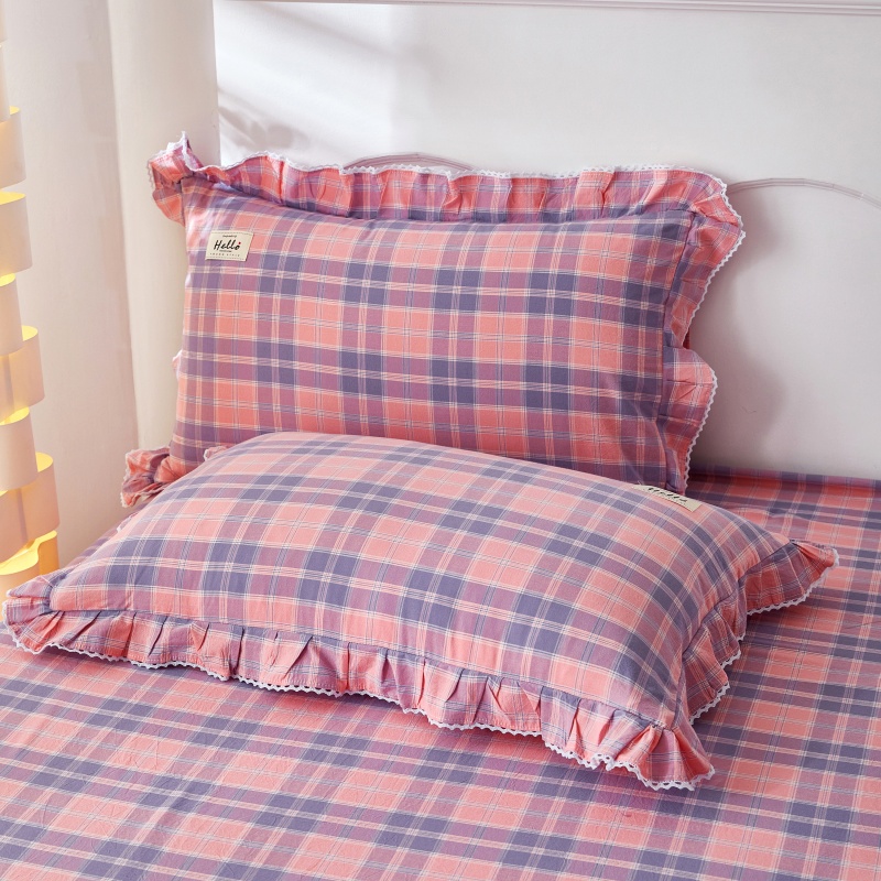 纯棉水洗棉全棉拉链式花边枕套一对