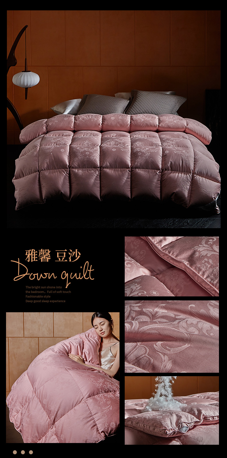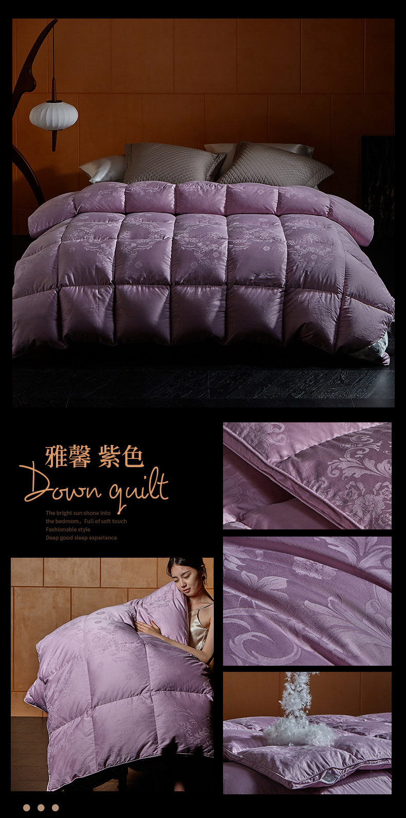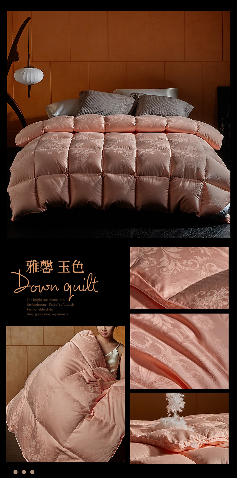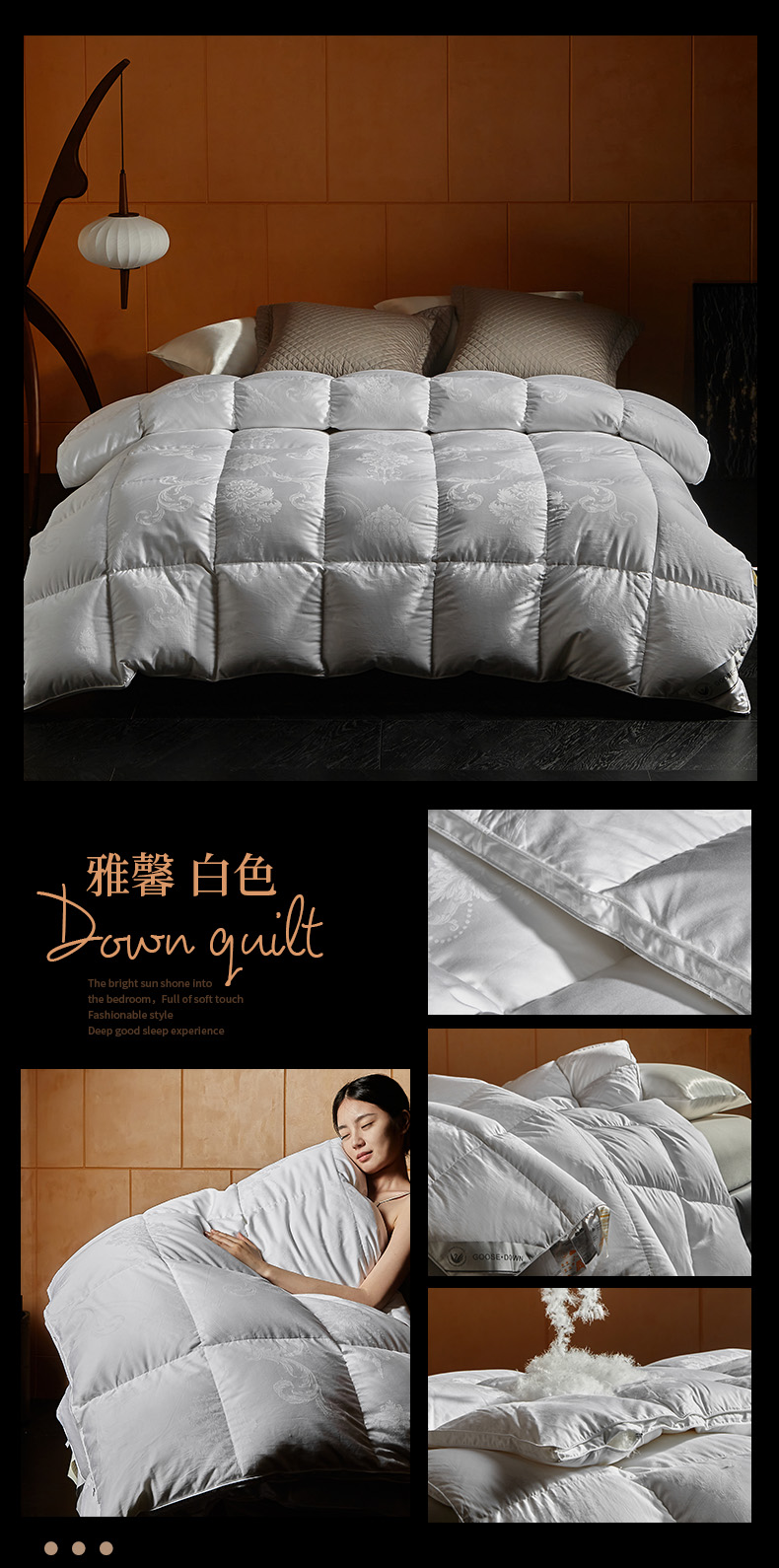 (总)暖羽屋羽绒馆 2025新款白鹅绒丝被芯 羽绒丝被 羽毛被子 婚庆羽绒被 双人加厚冬被,恒运莱 金-角度一,恒运莱 金-角度二