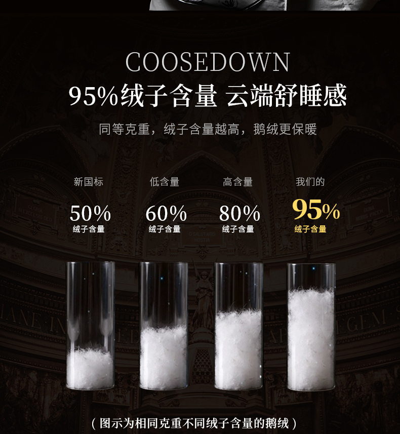 商品名称:(总)暖羽屋羽绒馆 2025新款带质检报告 95白鹅绒60s提花纯棉羽绒被子 双层加厚冬被