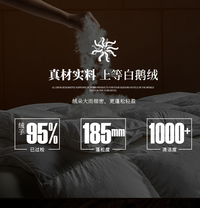羽绒羽毛种类: 白鹅绒