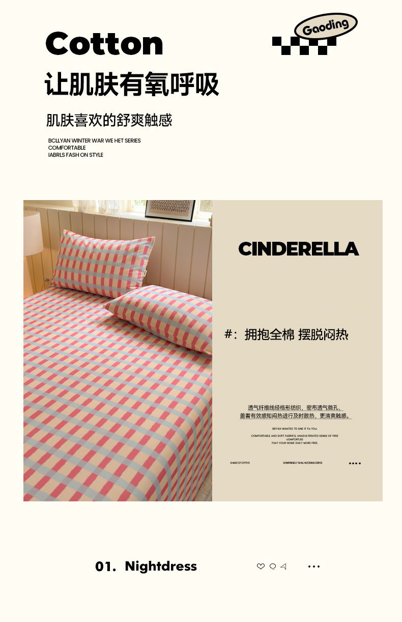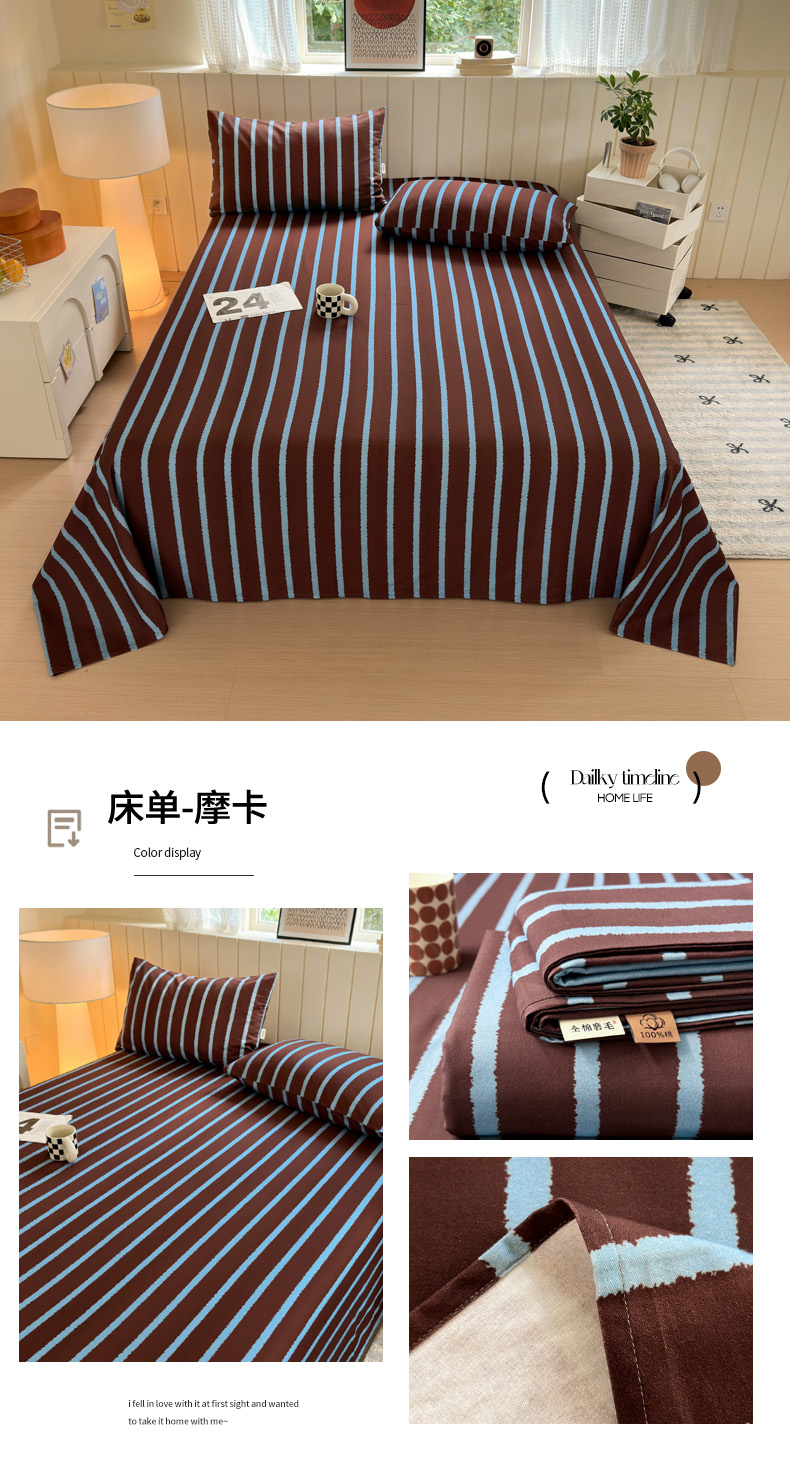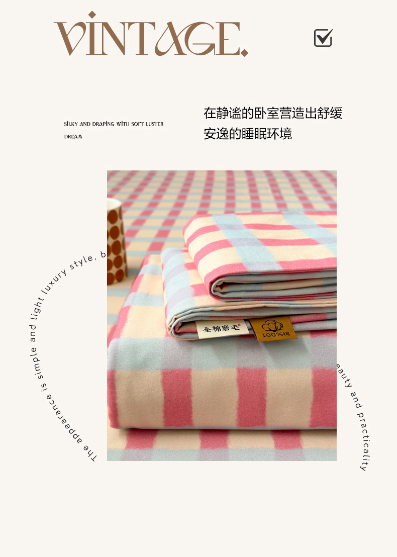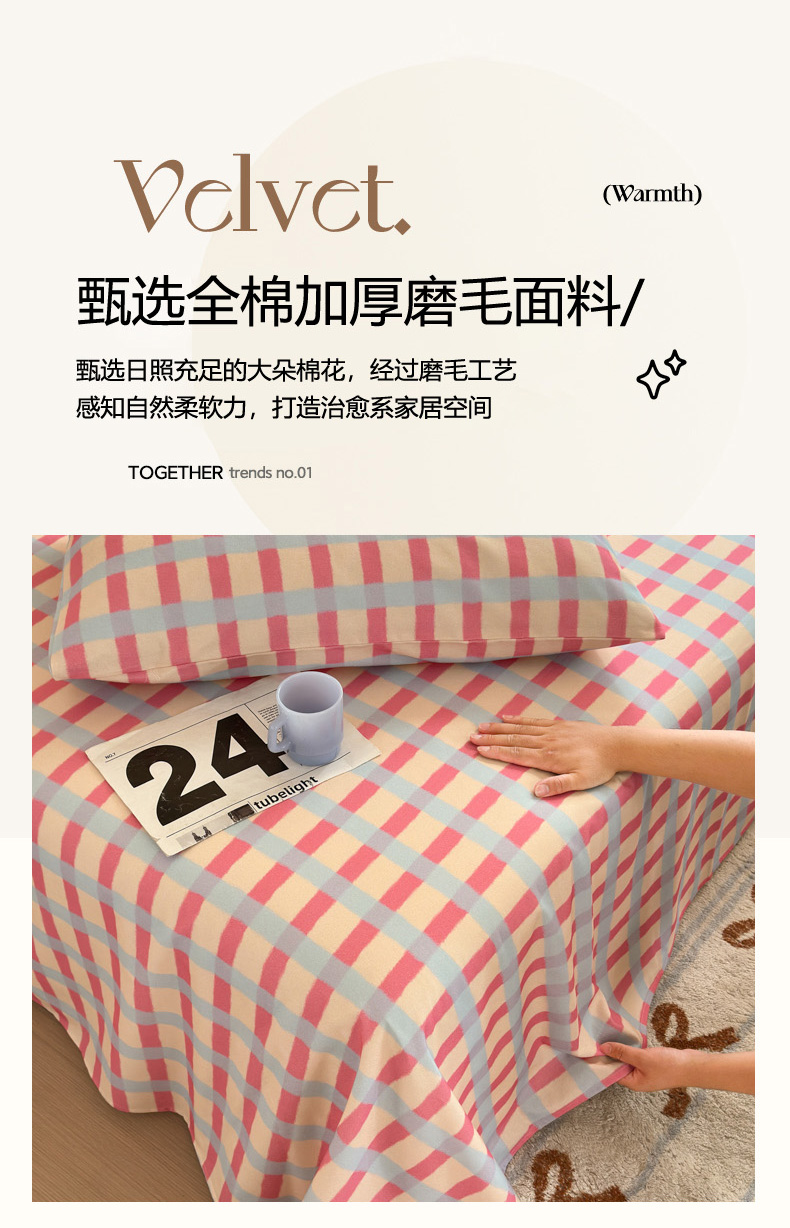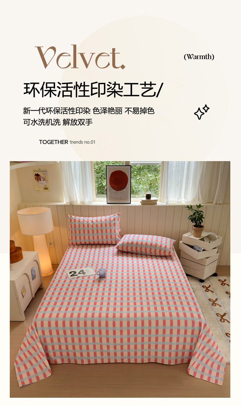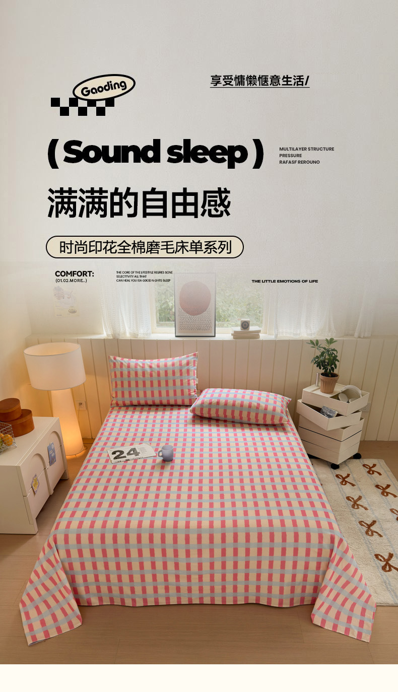 商品名称:如意朵 2025新款时尚印花全棉加厚磨毛床单 艾格-粉