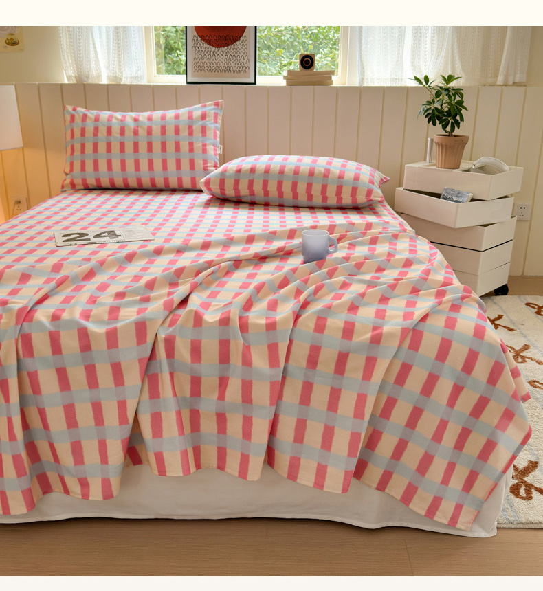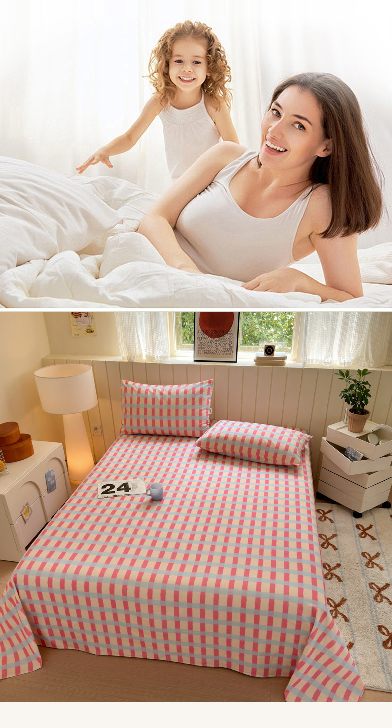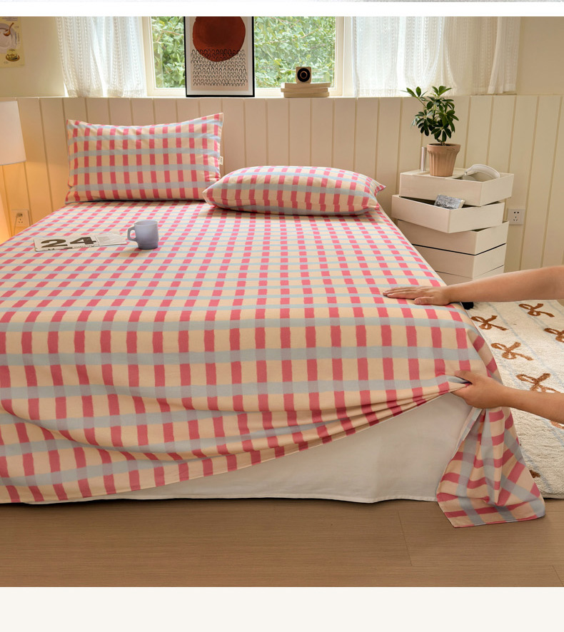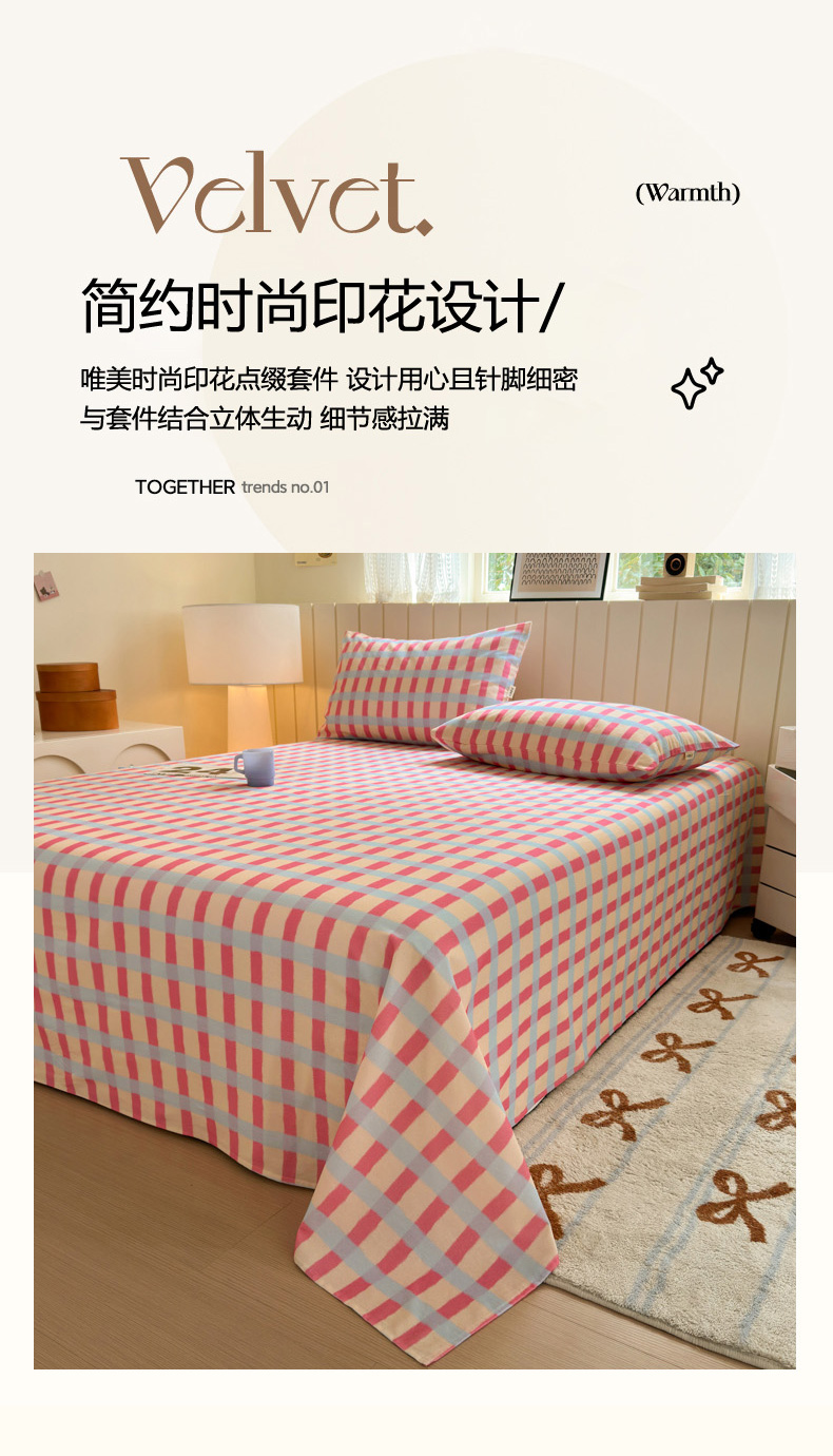 如意朵 2025新款时尚印花全棉加厚磨毛床单 艾格-粉