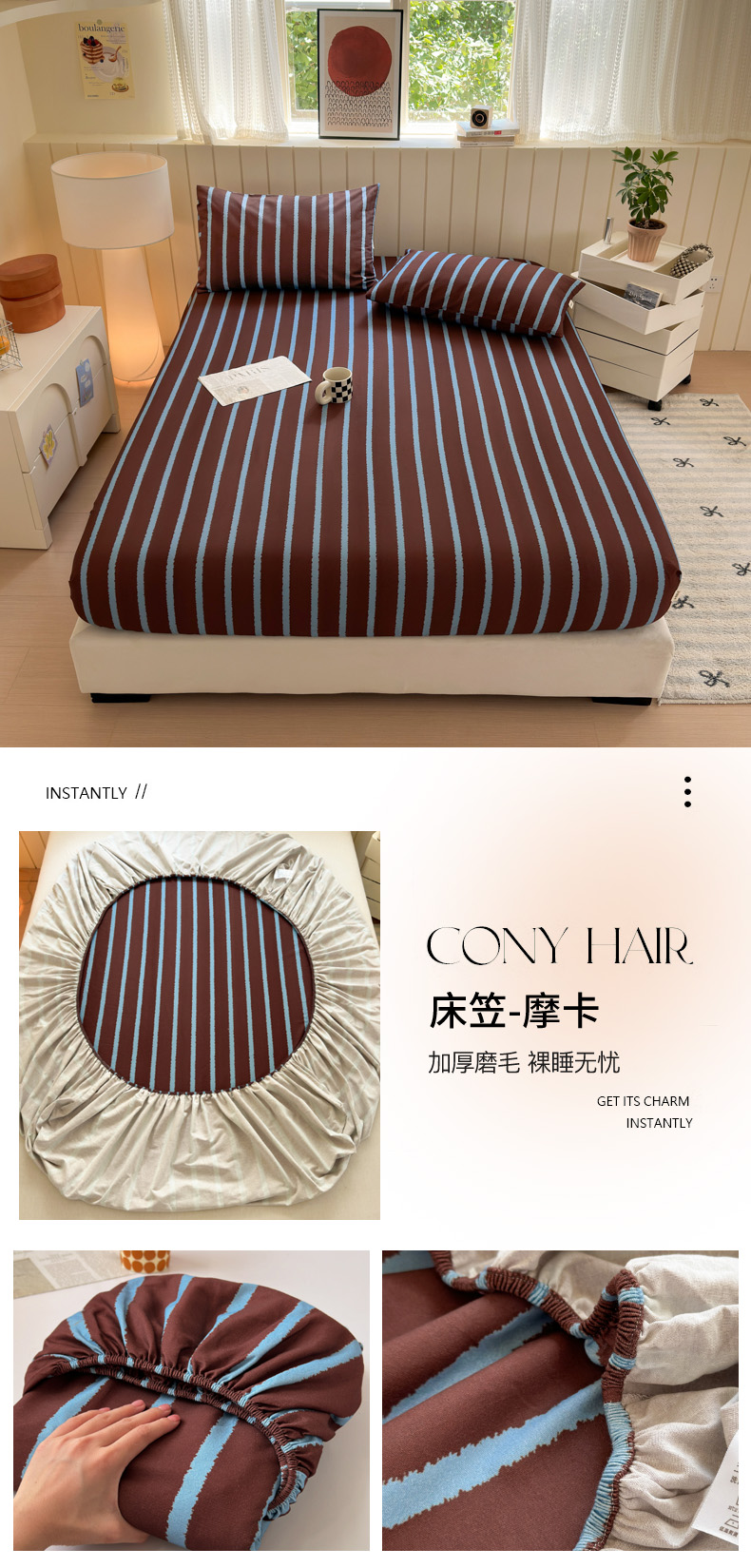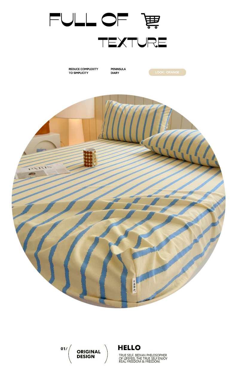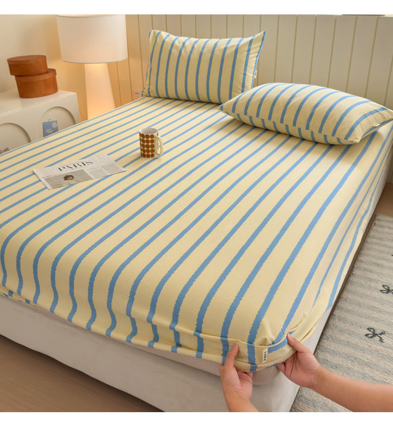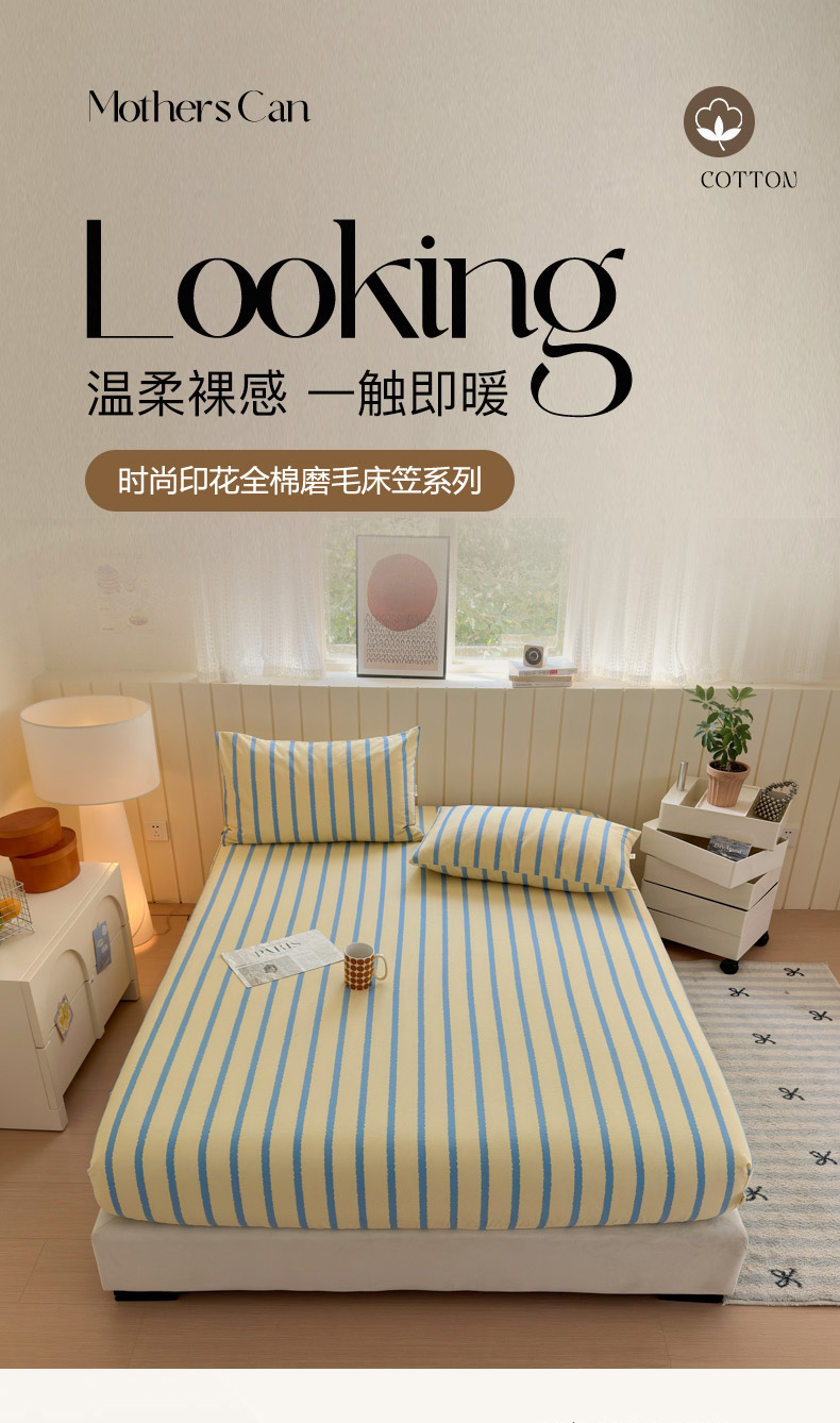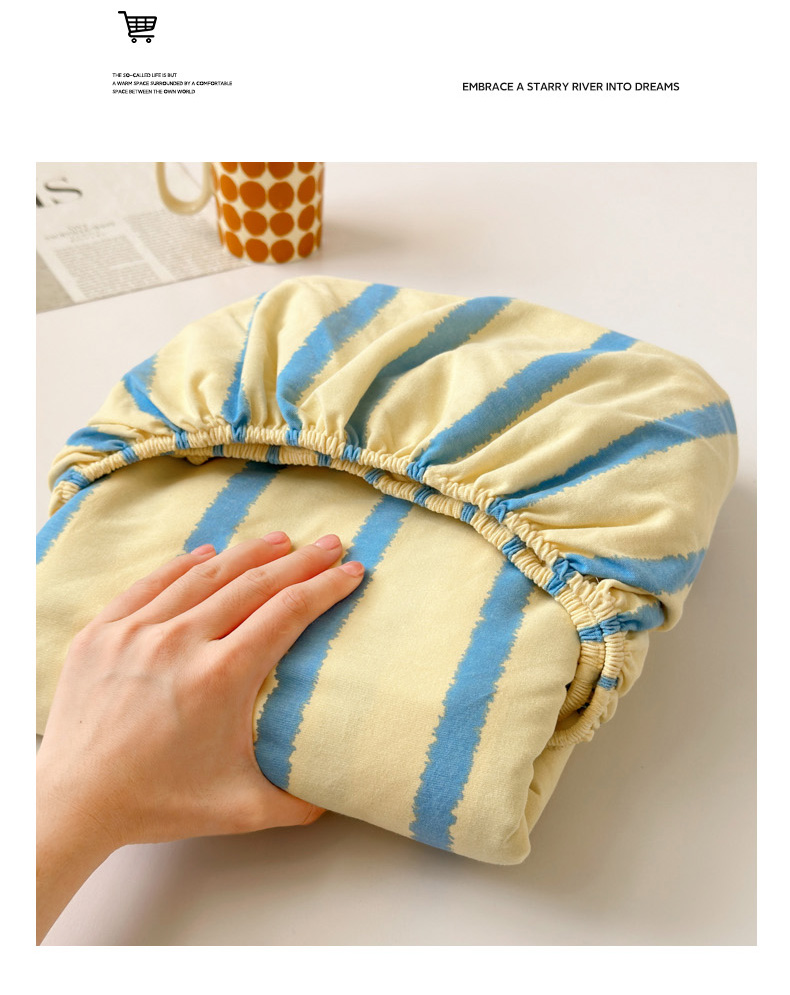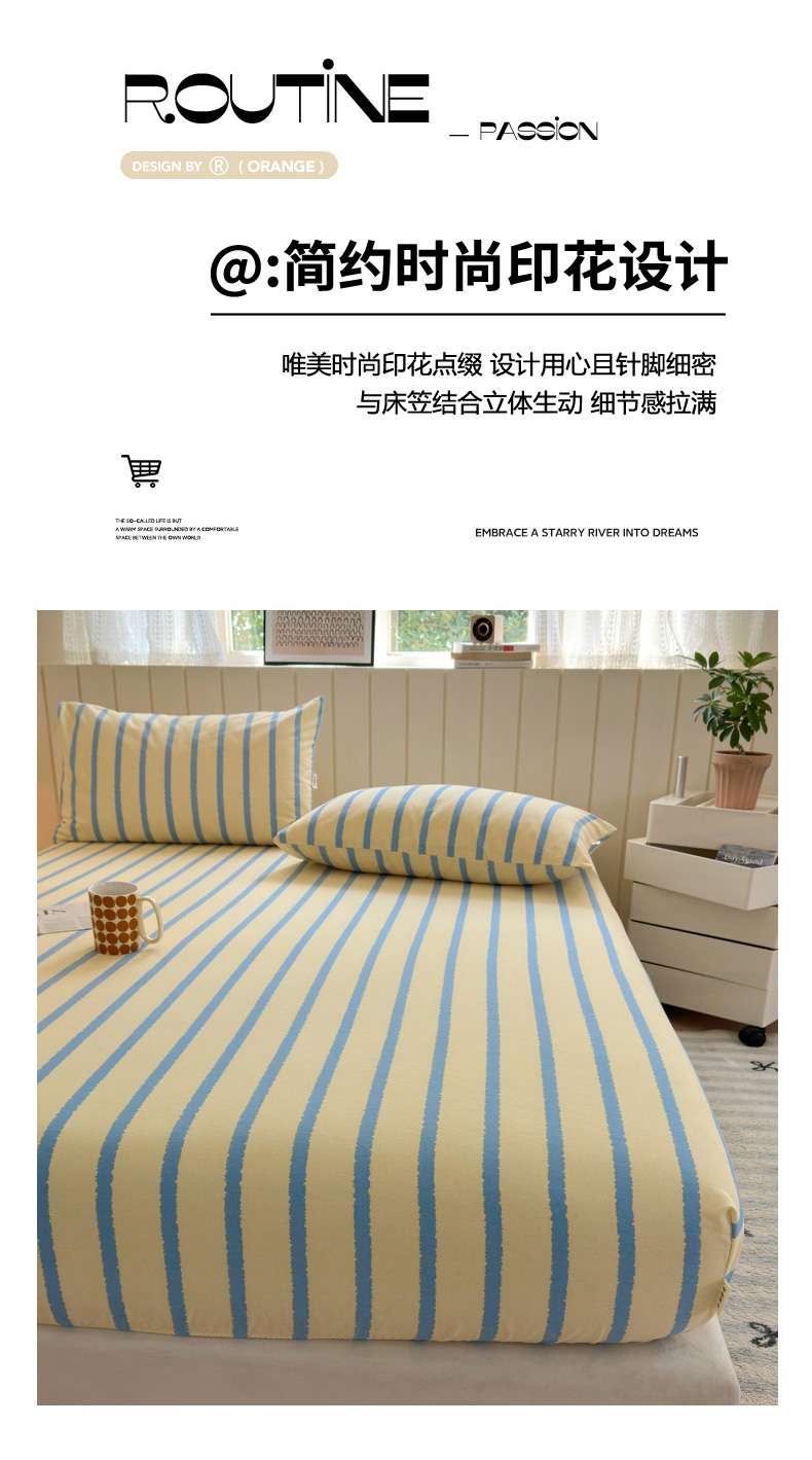 如意朵 2025新款时尚印花全棉加厚磨毛床笠 奶油-蓝