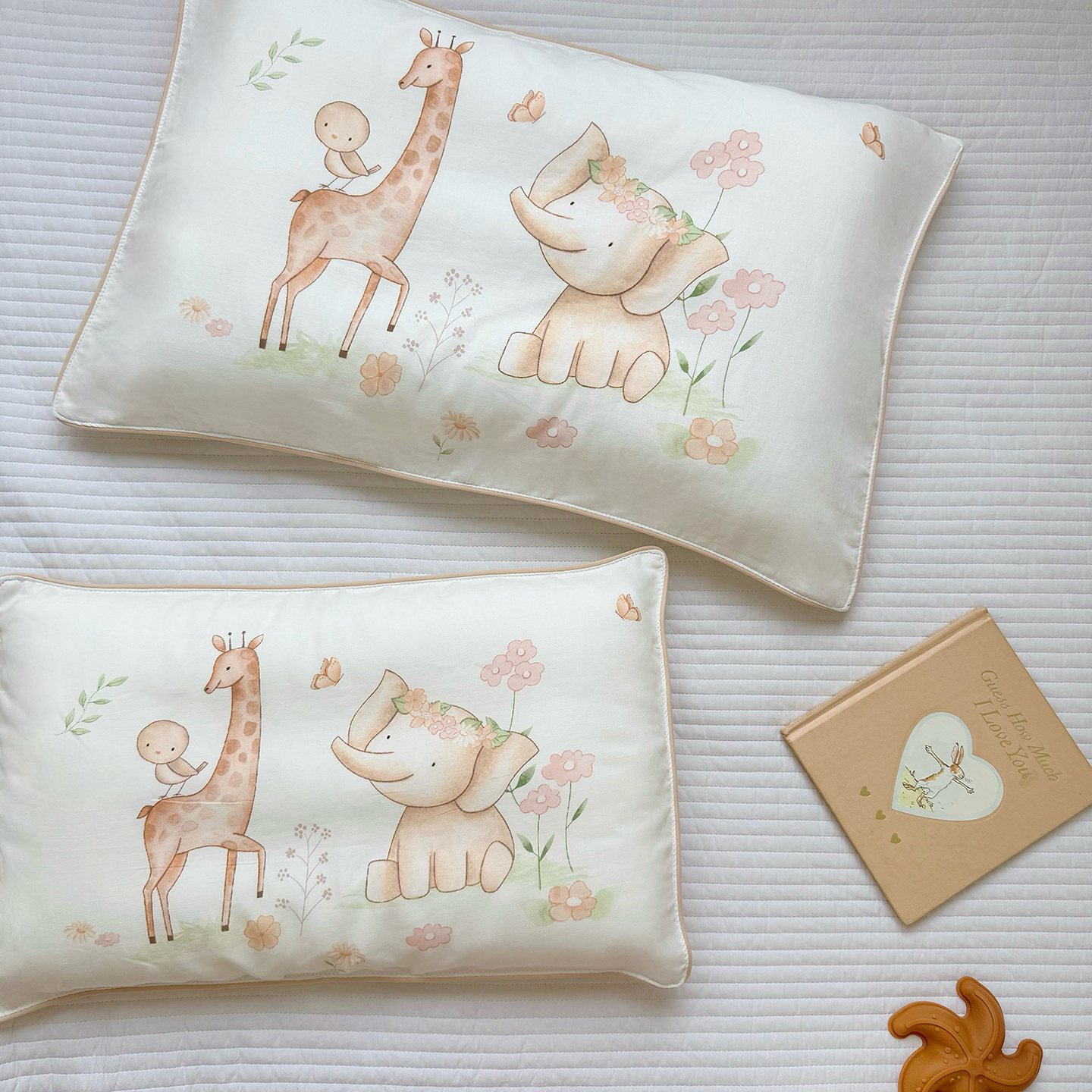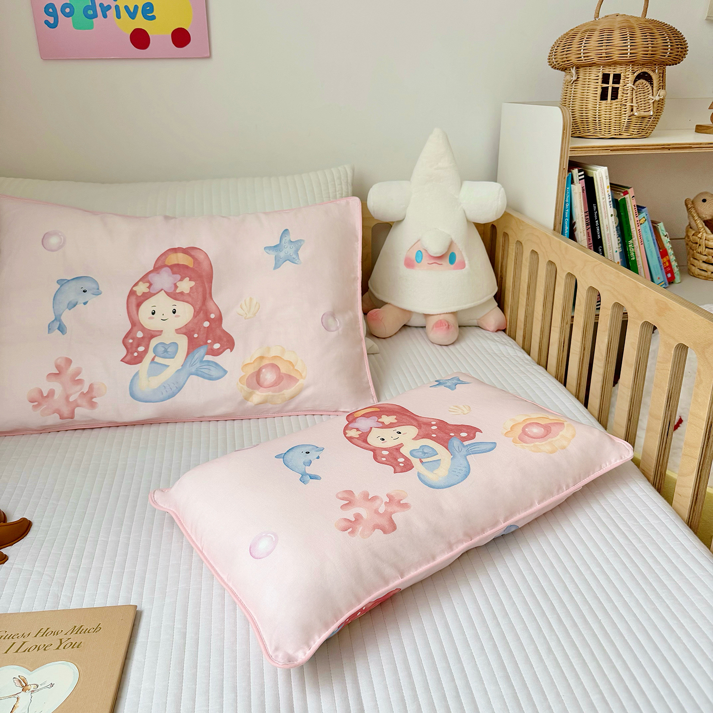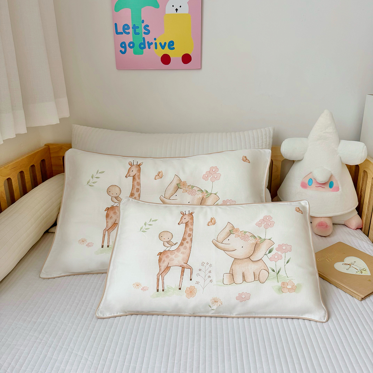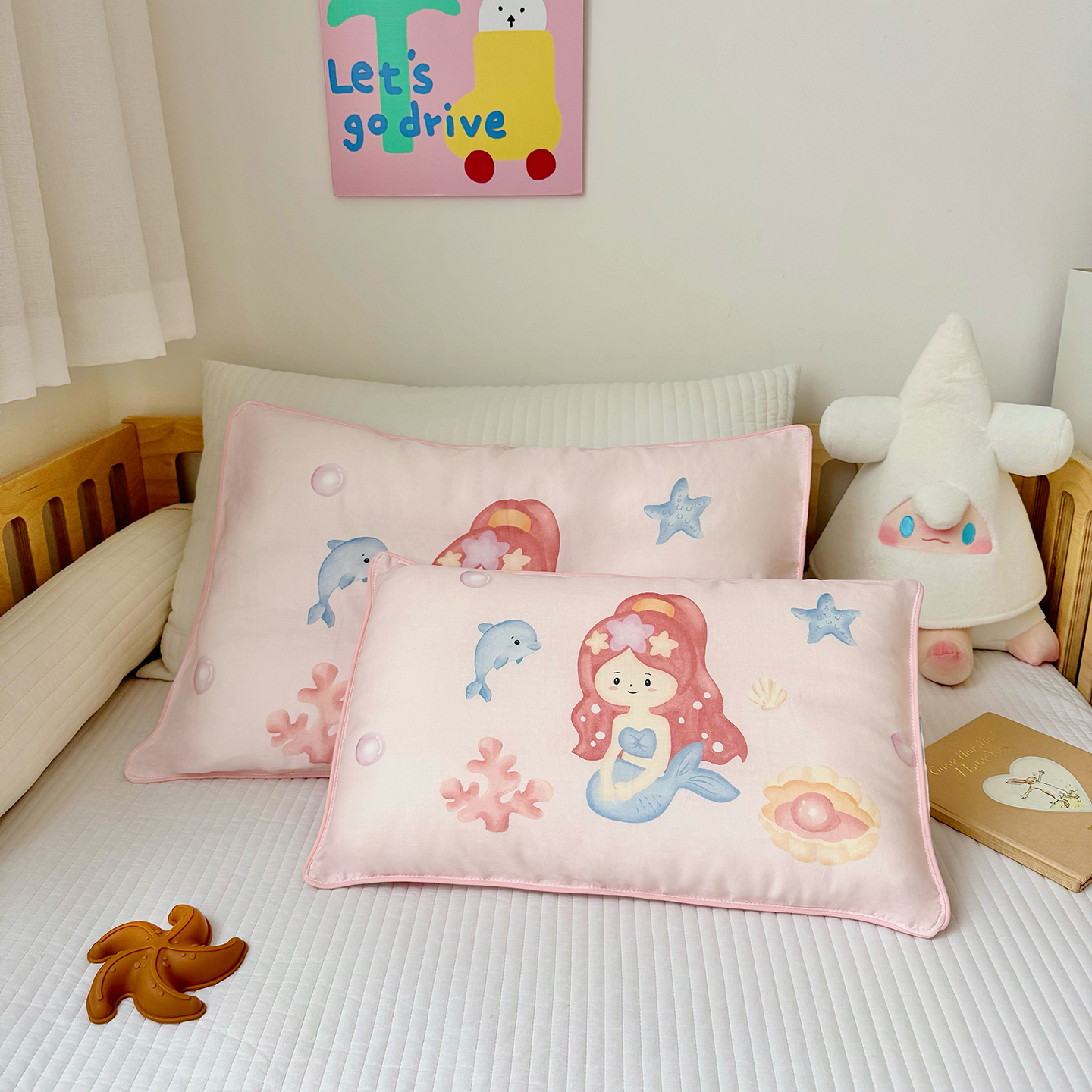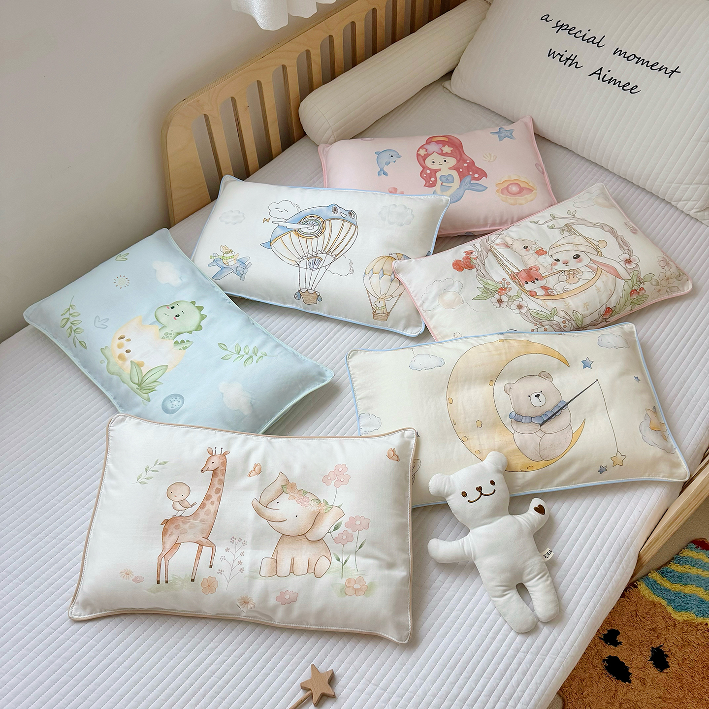 (总)萌宝家纺 2025新款A类大版全棉儿童双层纱枕套纯棉宝宝纱布枕头,动物园,美人鱼,热气球,晚安熊,小恐龙,摇篮兔