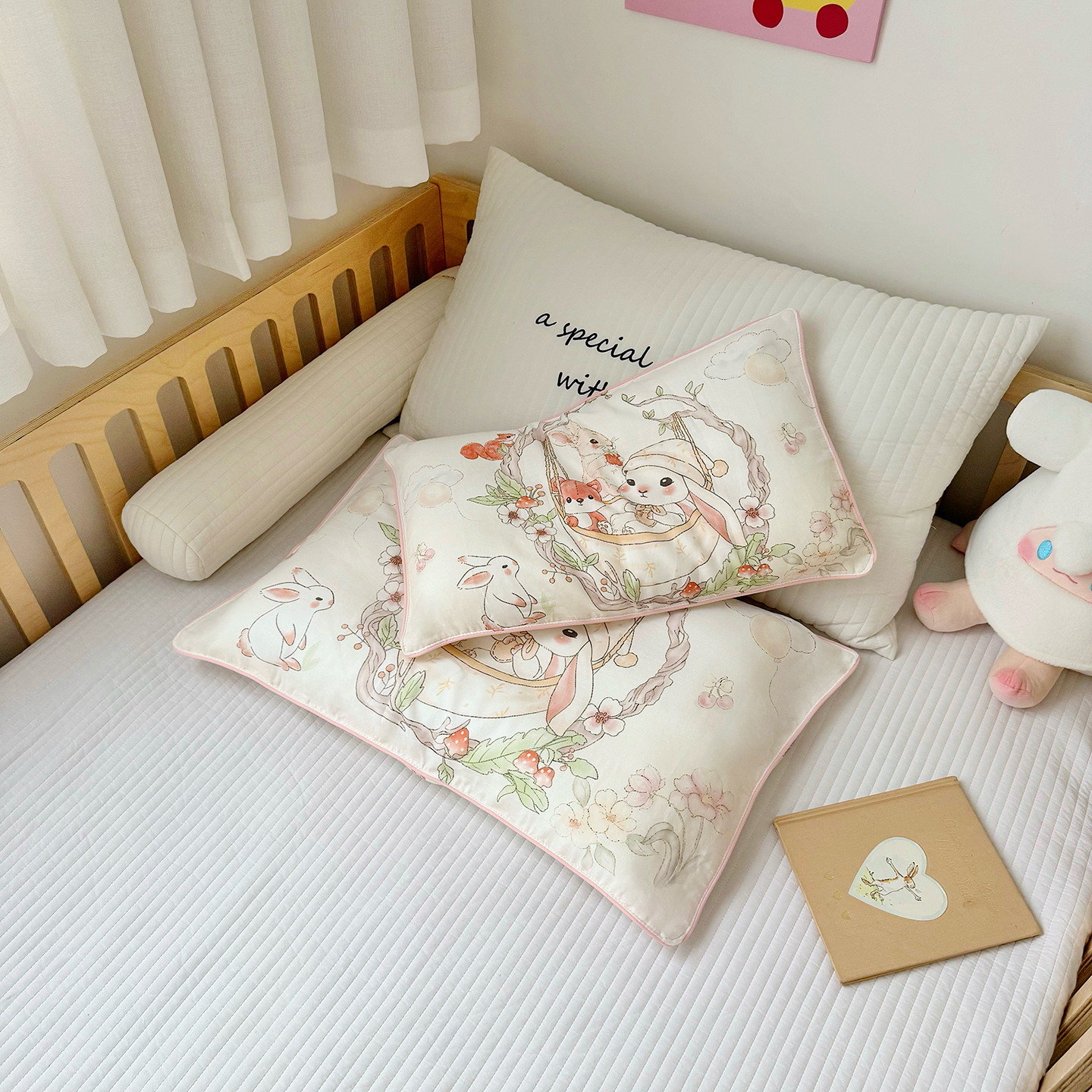 萌宝家纺 2025新款A类大版全棉儿童双层纱枕套纯棉宝宝纱布枕头 摇篮兔