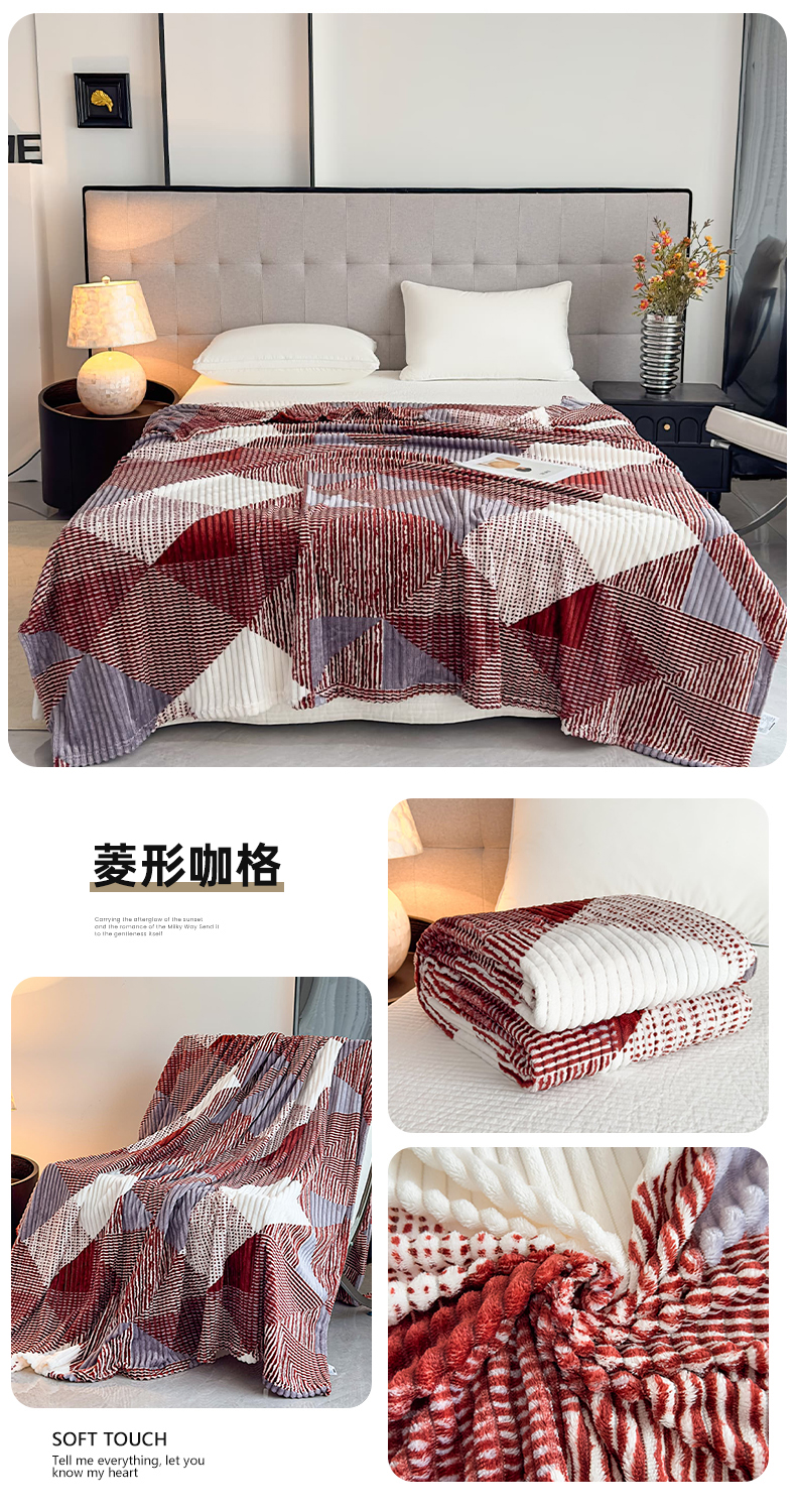 (总)璐维斯 2025新款菱形格抽条印花毛毯跨境外贸专供,菱形紫格,菱形白灰格,菱形蓝格,菱形蓝白格,菱形白蓝格,菱形咖格