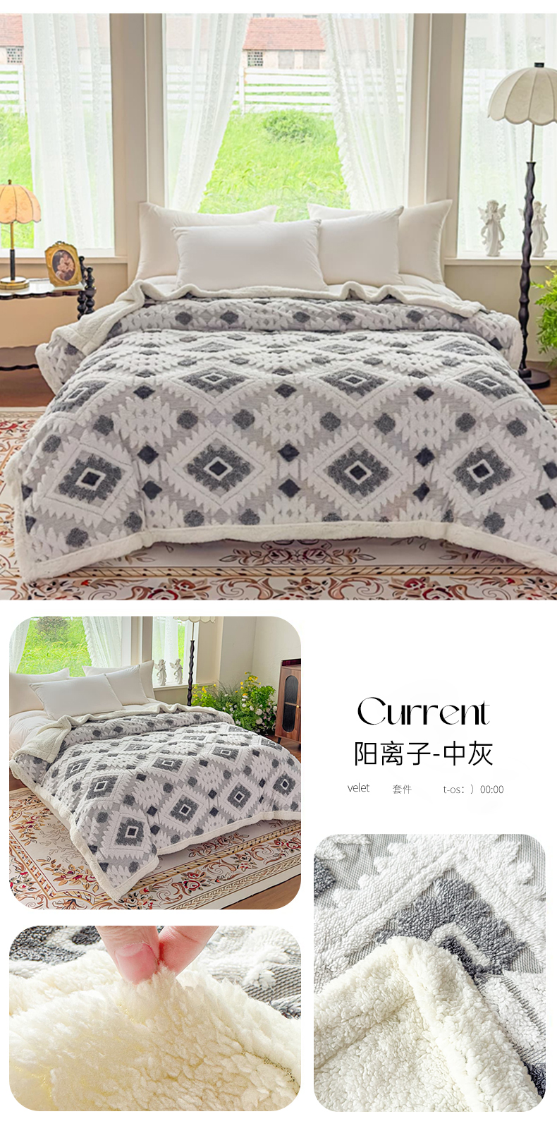 (总)璐维斯 2025新款加厚镂空阳离子双层羊羔绒毛毯休闲盖毯—跨境外贸专供,阳离子-中灰,阳离子-粉色,阳离子-驼色,阳离子-深灰,阳离子-浅灰,阳离子-玫红,阳离子-嫩叶绿,阳离子-薄荷蓝