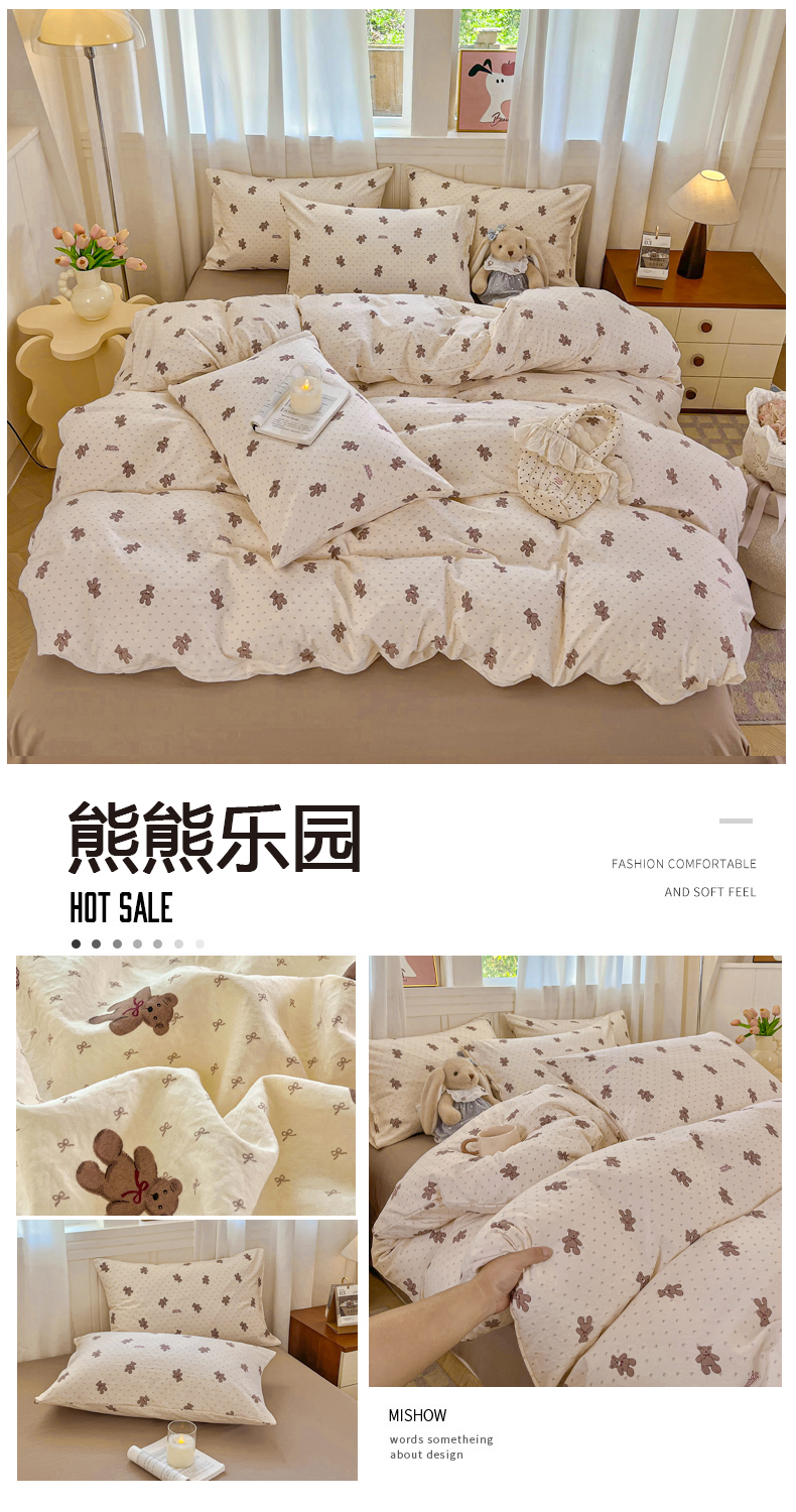 当前位置: 91家纺网 > 商品网购 > 床品套件 > 四件套 > 水洗棉四件套 > 斯卡诺家纺 2026爆款古法水洗仿棉四件套韩国小布袋五件套(高克重斜纹加厚) 欢乐熊
