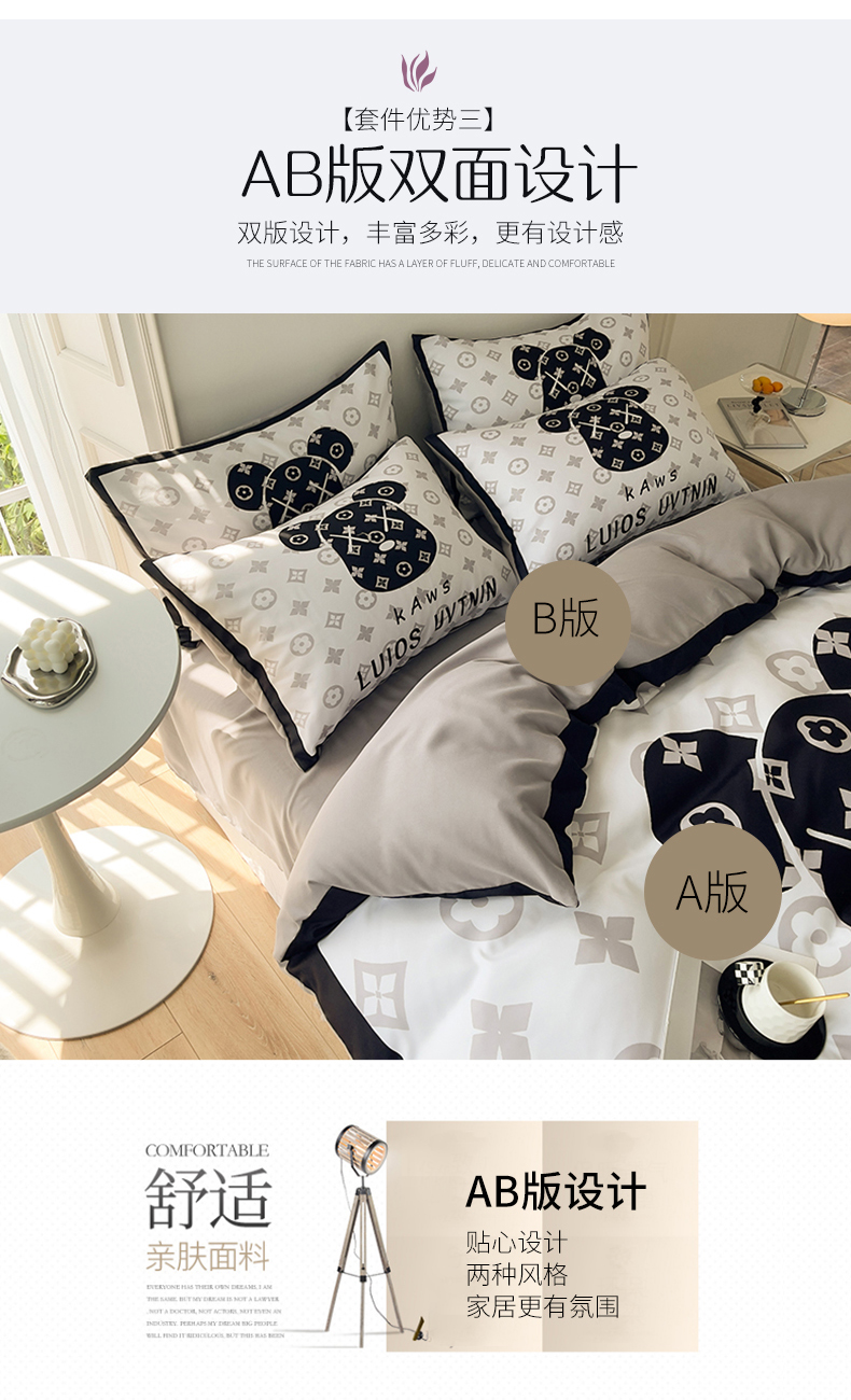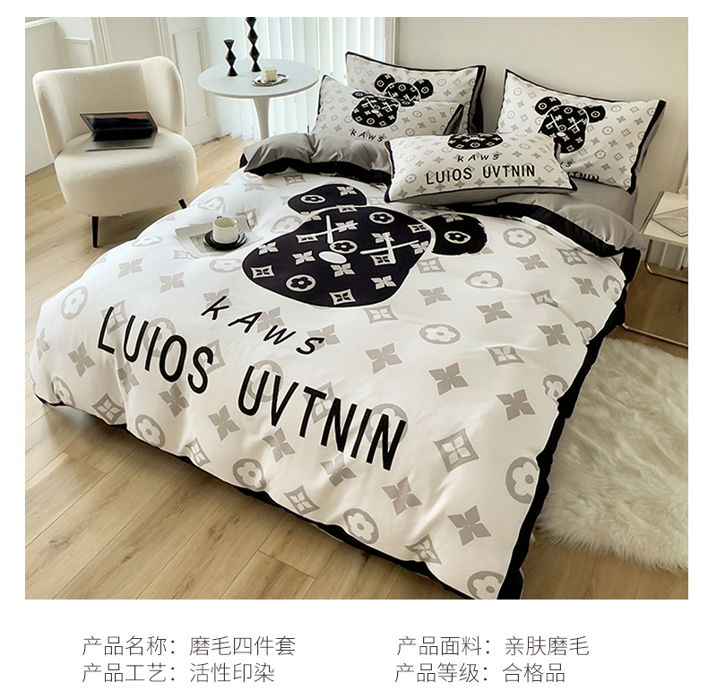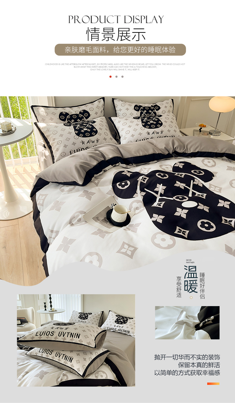 (总)摩卡(乐趣) 2024新款亲肤全棉网红轻奢四件套,H马,大H,粉红兔,黑白迪,黑白V,黑双C,咖古,咖色熊,蓝咖熊,毛绒熊,趴趴熊,七彩迪,小楂花,萌兔