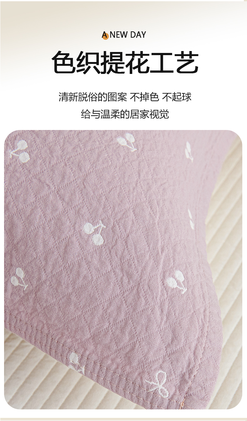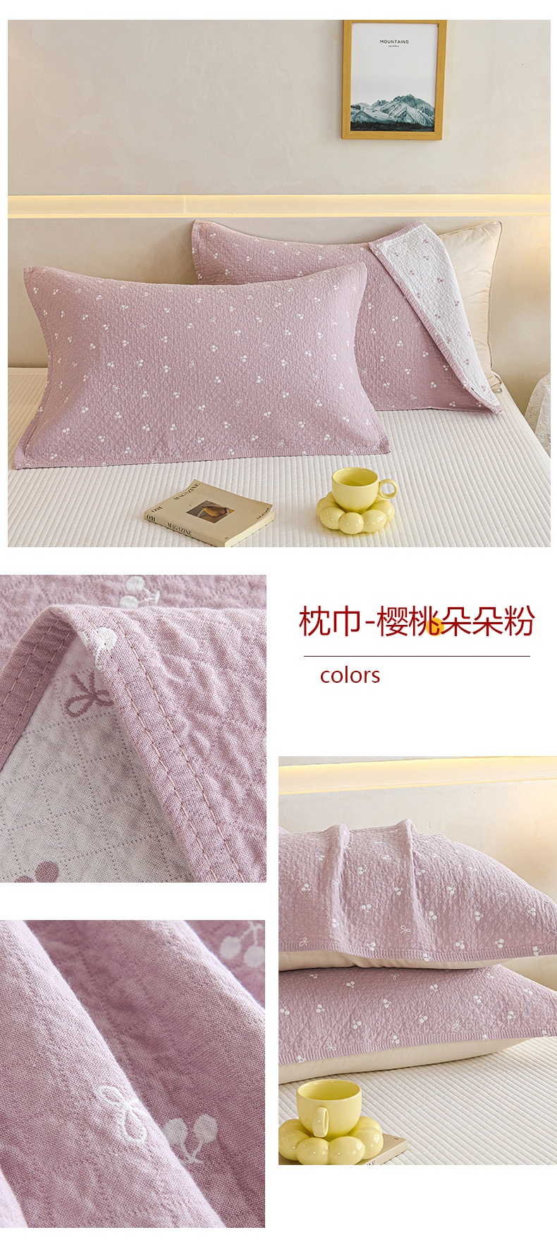 商品名称:棠薇家纺 2025新款 枕巾纯棉纱布水洗全棉纱布纯棉耐脏吸汗透气预缩水 樱桃朵朵粉