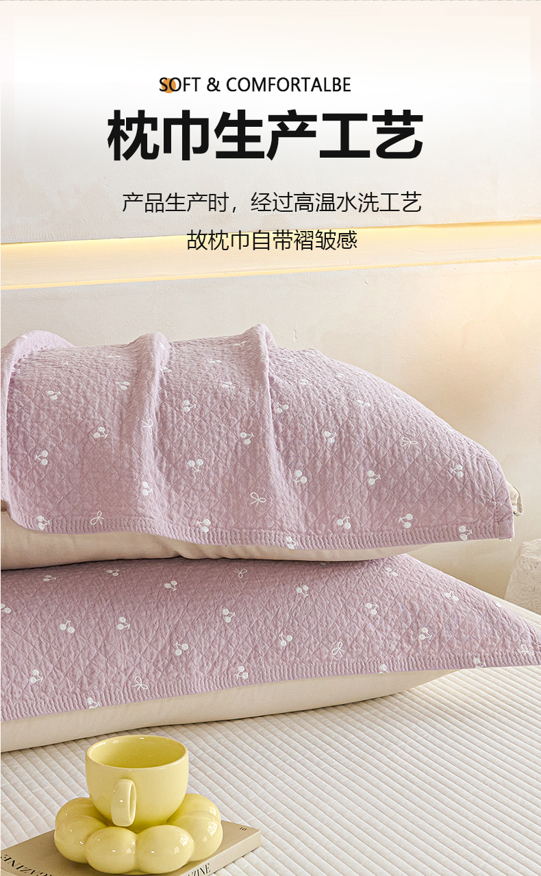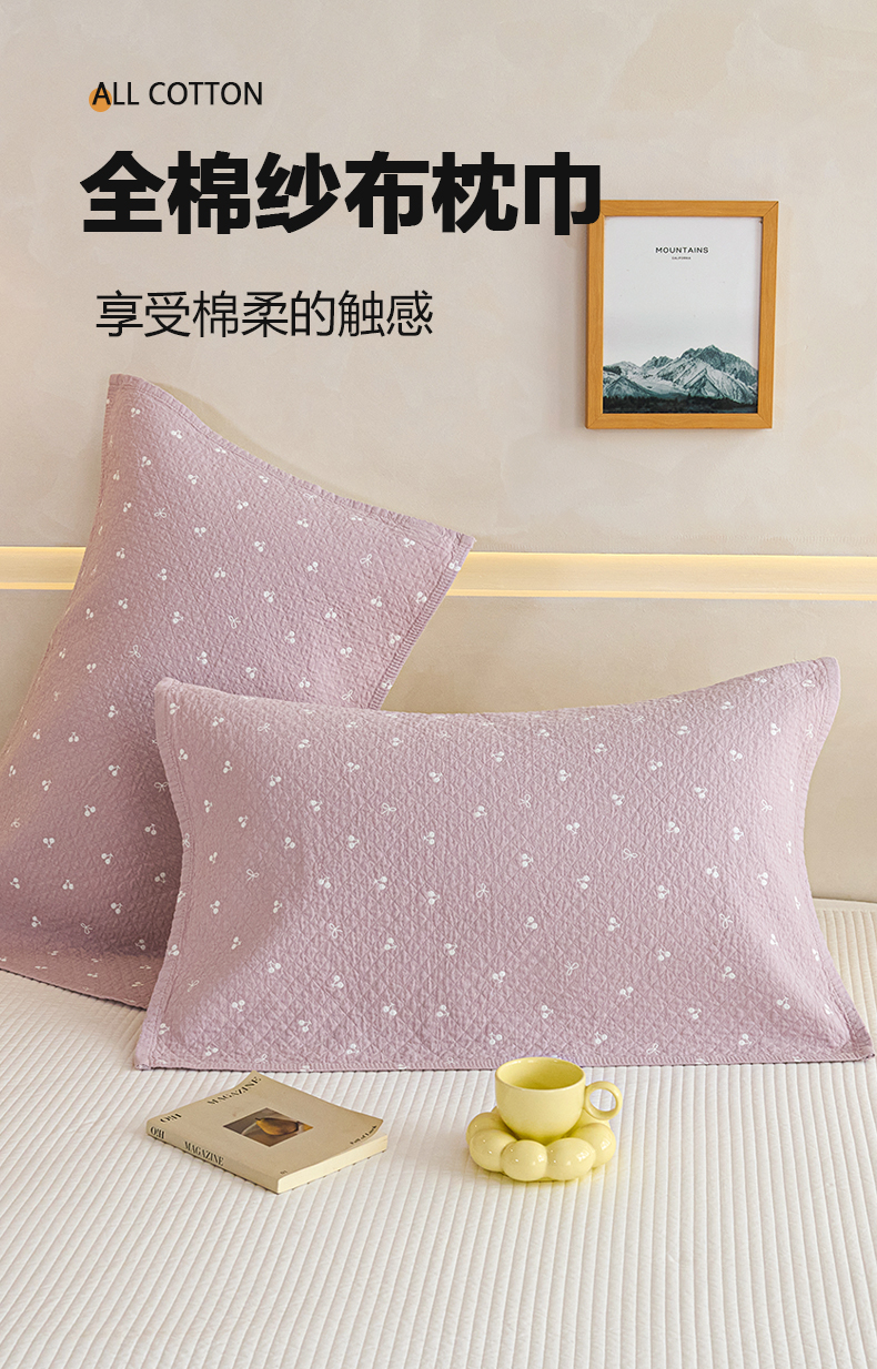 棠薇家纺 2025新款 枕巾纯棉纱布水洗全棉纱布纯棉耐脏吸汗透气预缩水 樱桃朵朵粉
