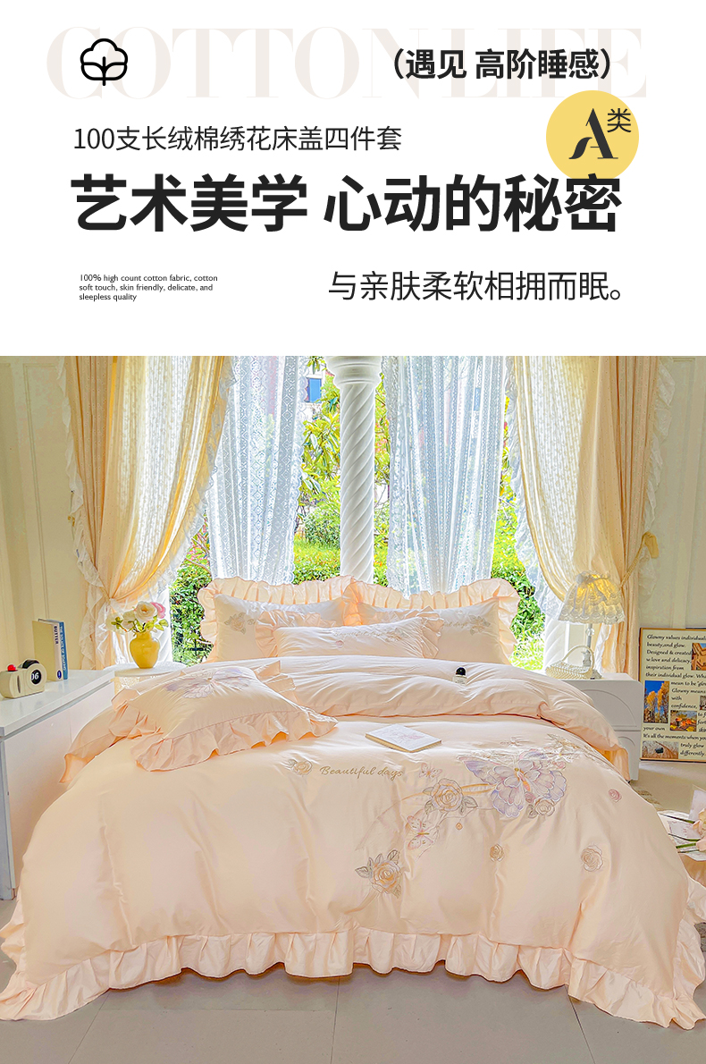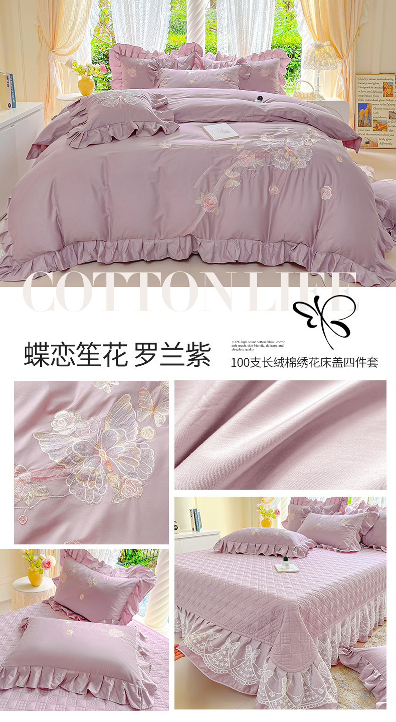 (总)宜凡家纺 2025新款全棉数码印花床裙四件套系列一,静若幽兰,浮云织梦,梦幻花园,陌上花开