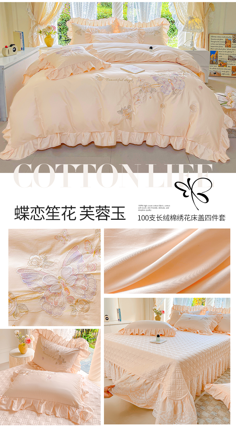 (总)宜凡家纺 2025新款全棉双层纱夹棉床盖四件套,蝴蝶花丛,阳春三月,缤纷蝴蝶结,波点蝴蝶结-米白,波点蝴蝶结-深粉,潮汐花屿,多彩草莓,芳菲花镜,河畔花梦,蝴蝶纷飞,花影枝梦,梦幻樱桃,田园樱桃