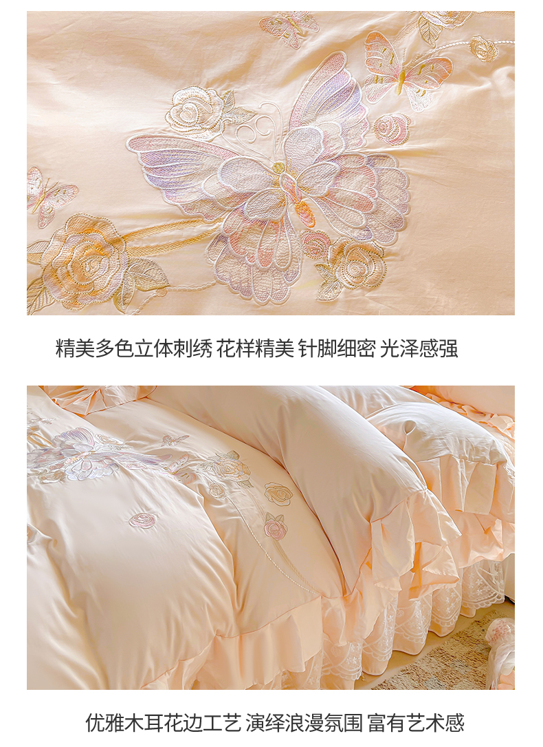 (总)宜凡家纺 2025新款牛奶绒雕花拼接刺绣床裙四件套,晨雾蔷薇,蝶恋花语,花野漫屿,蕾丝蝶音,洛可可影,雾蓝漫织,香槟漫月