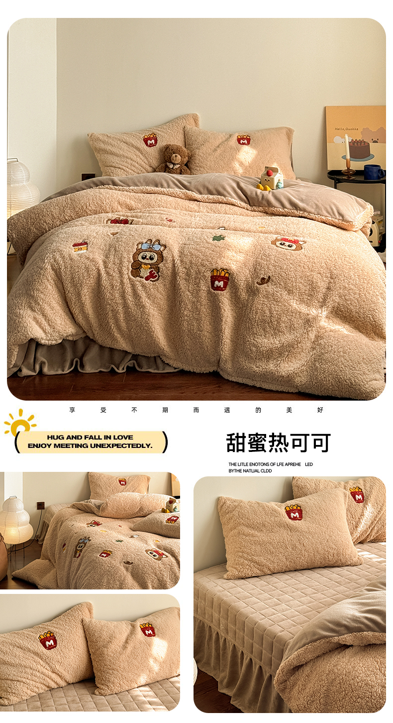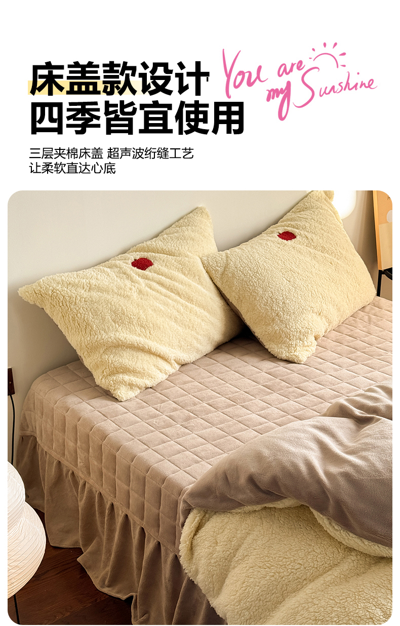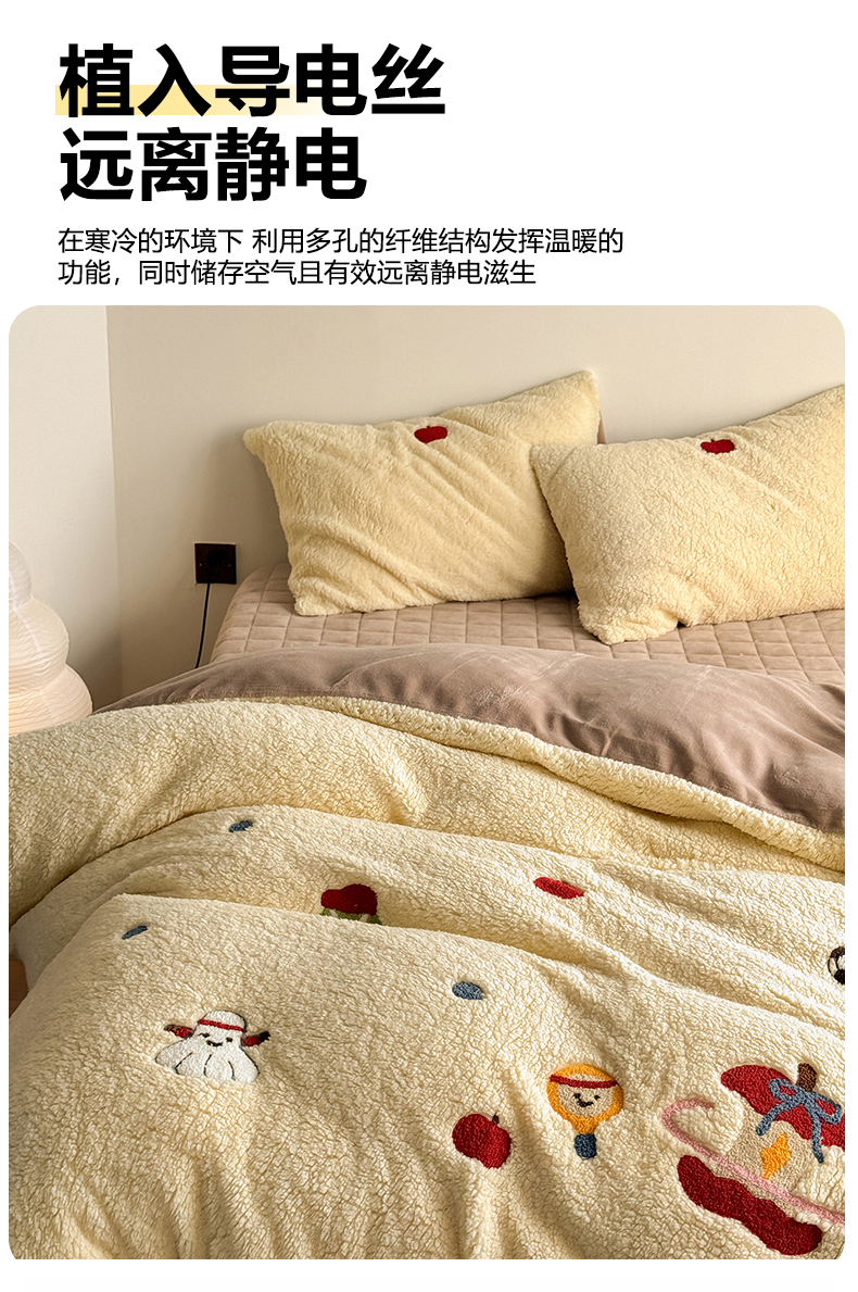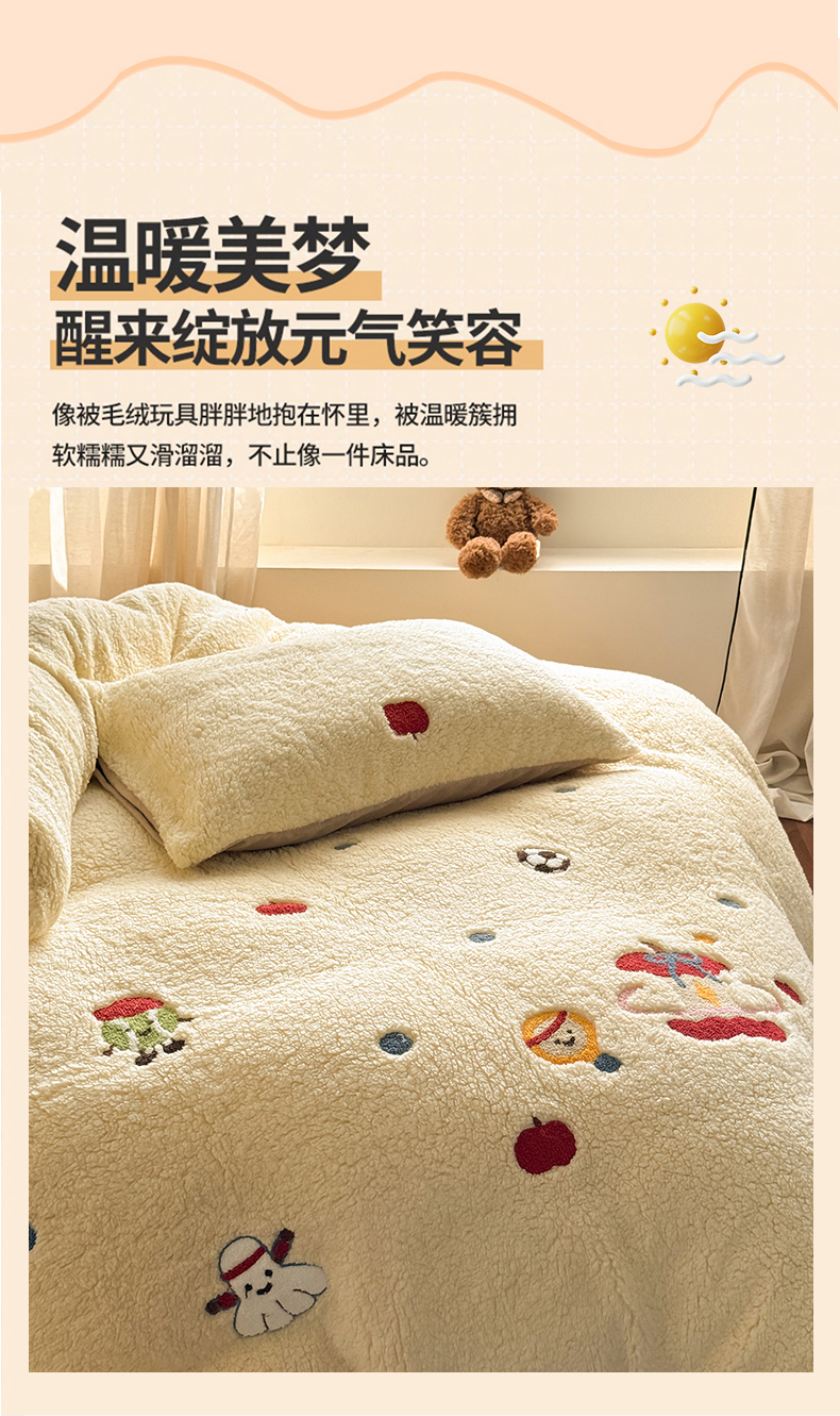 当前位置: 91家纺网 > 商品网购 > 床品套件 > 四件套 > 牛奶绒四件套 > TT.one 塔塔家居 2025新款羊羔绒牛奶绒暖绵绵毛巾绣床单床裙床盖款四件套 苹果摇摇乐·黄