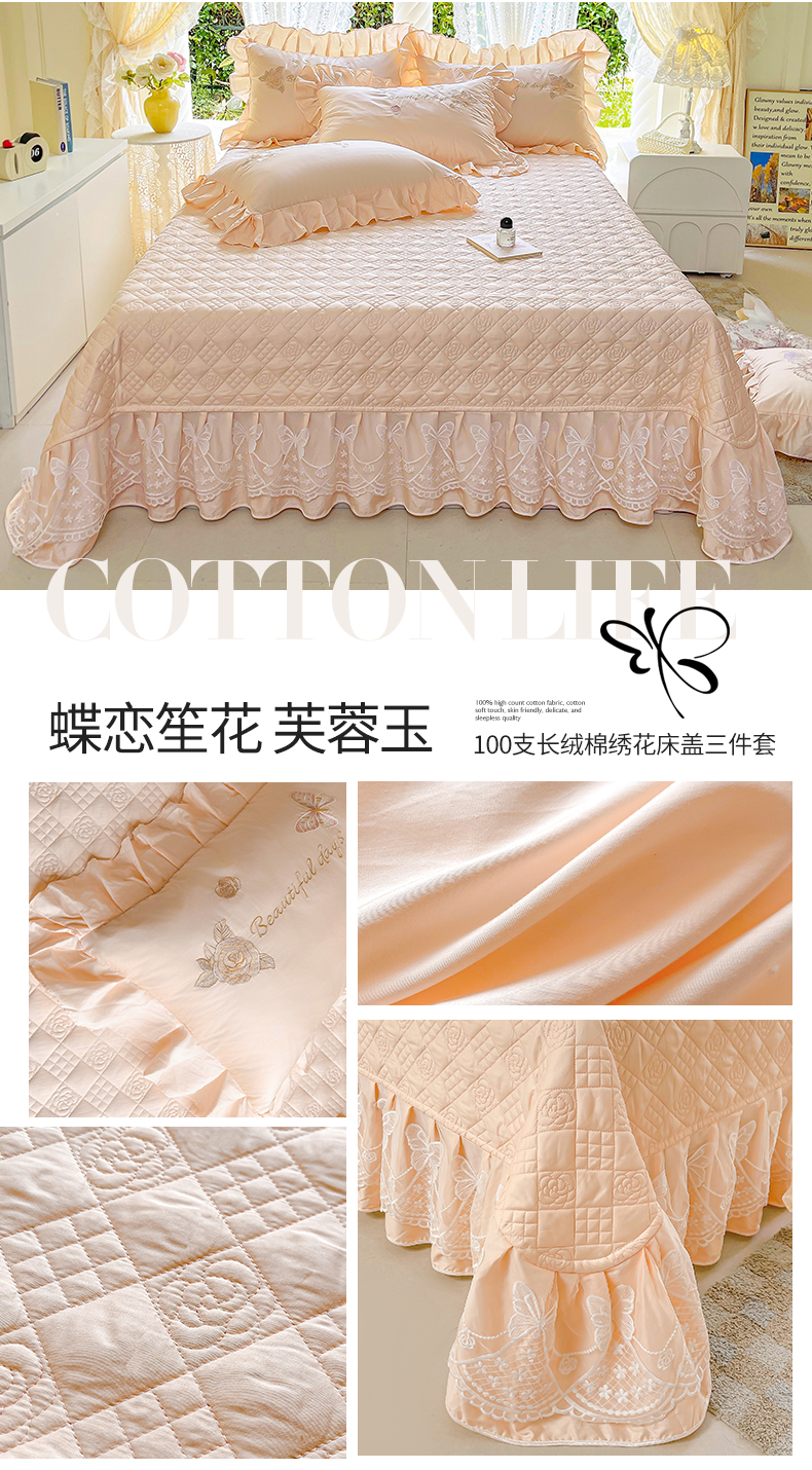 (总)宜凡家纺 2025新款全棉双层纱夹棉床盖三件套,蝴蝶花丛,阳春三月,缤纷蝴蝶结,波点蝴蝶结-米白,波点蝴蝶结-深粉,潮汐花屿,多彩草莓,芳菲花镜,河畔花梦,蝴蝶纷飞,花影枝梦,梦幻樱桃,田园樱桃