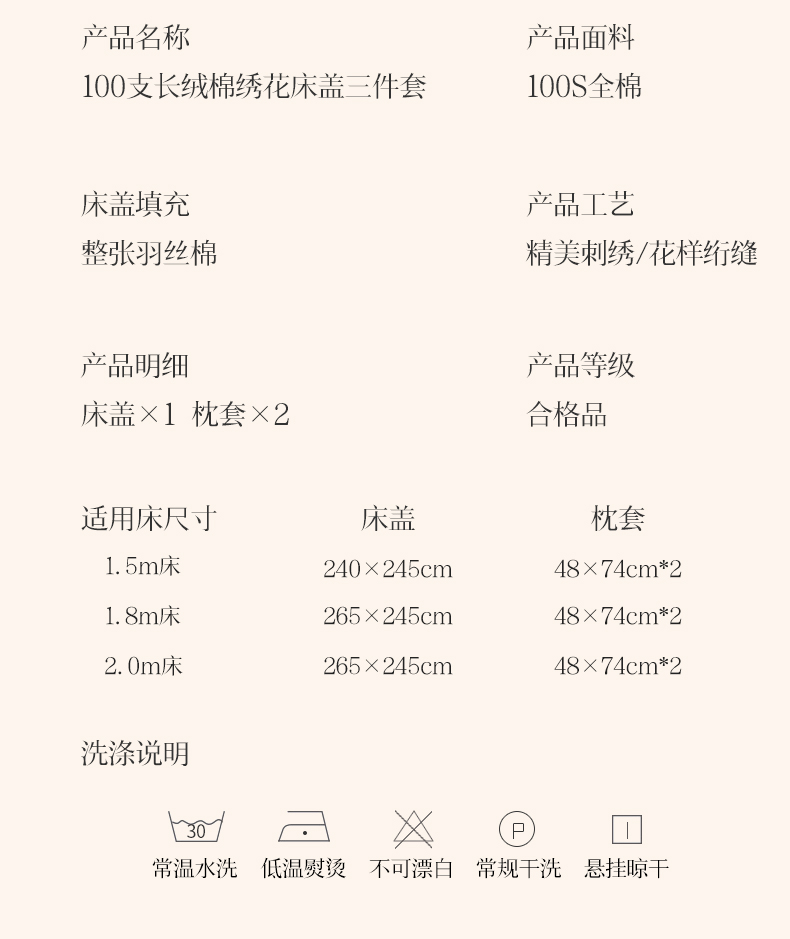 265*245cm单床盖+枕套一对