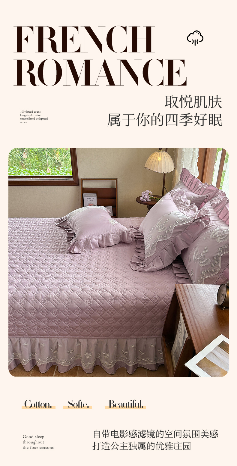 (总)宜凡家纺 2026新款全棉法式碎花床盖三件套(所有三件套价格不得低于供货价+45元出售),雾野,花屿间,流莹,拾光,香缇丽,忆梦,云端花海