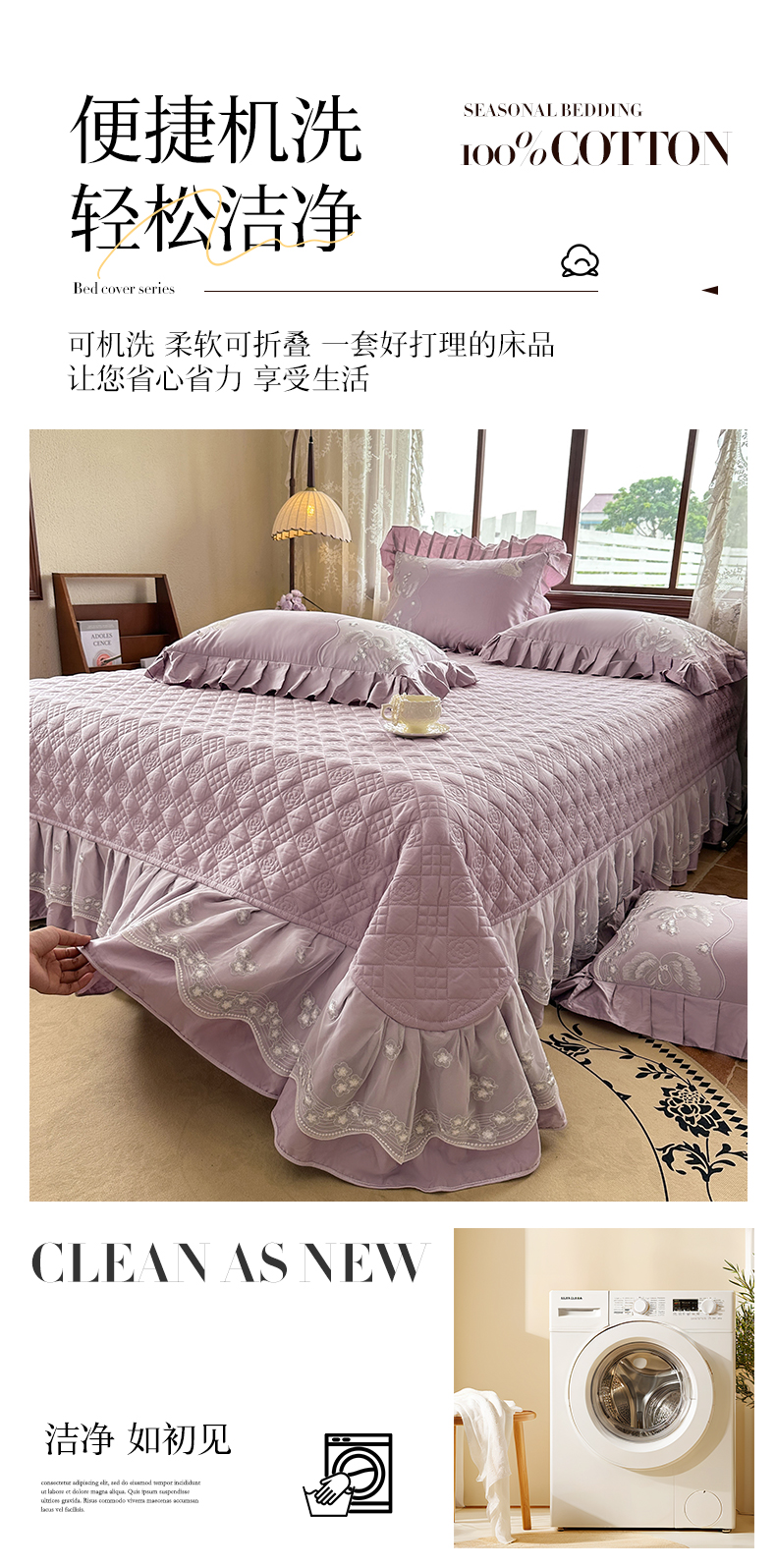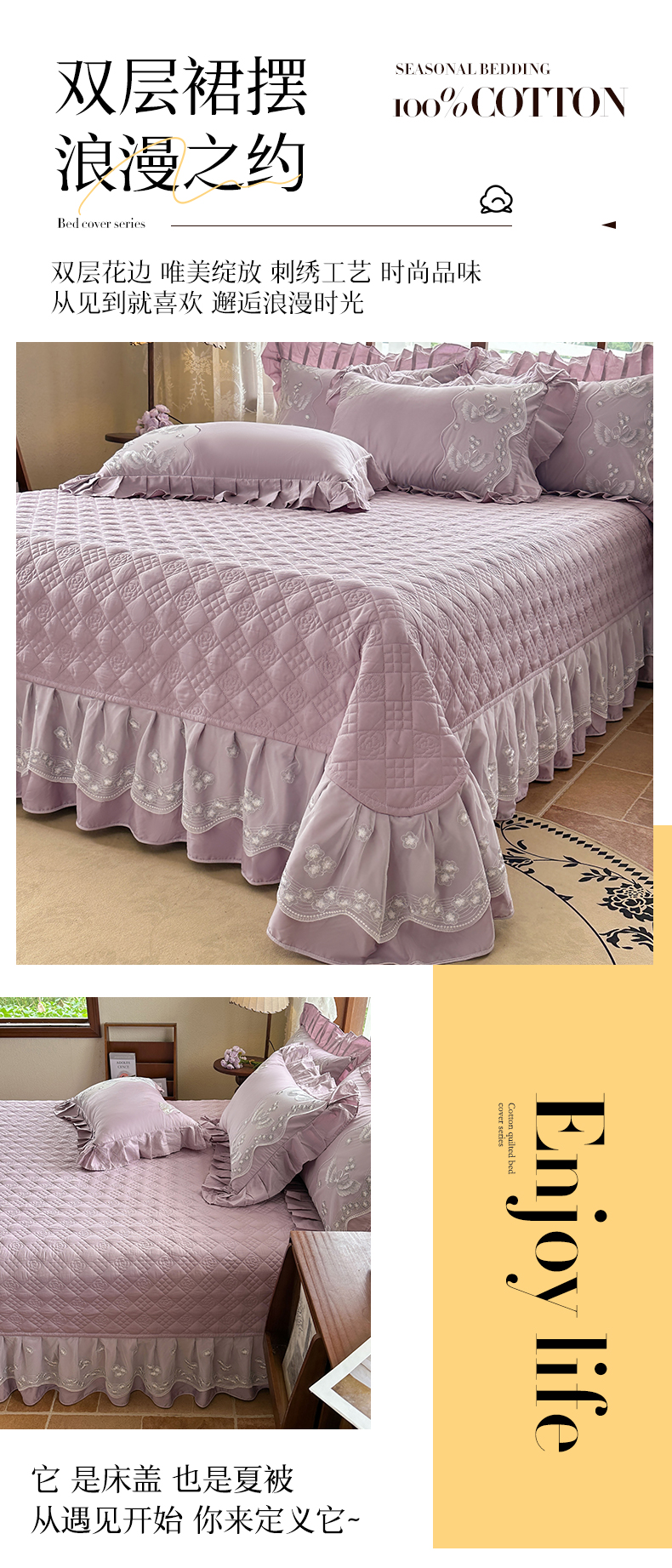 (总)宜凡家纺 2025新款全棉数码印花床裙三件套系列一,静若幽兰,浮云织梦,梦幻花园,陌上花开