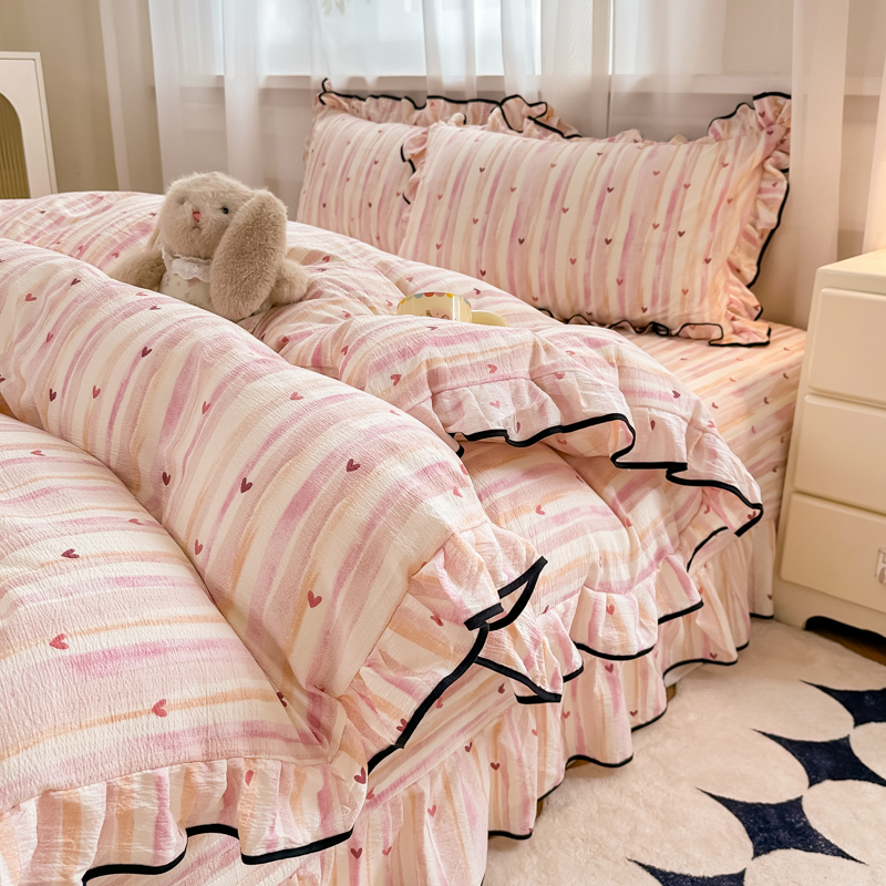 梦可莱家居 2025秋冬新款法式小黑边木棉云感皱皱纱四件套床盖款 小黑边-樱桃