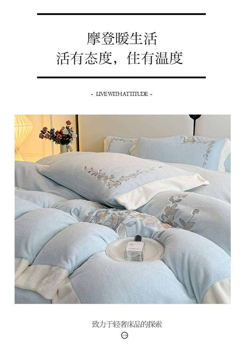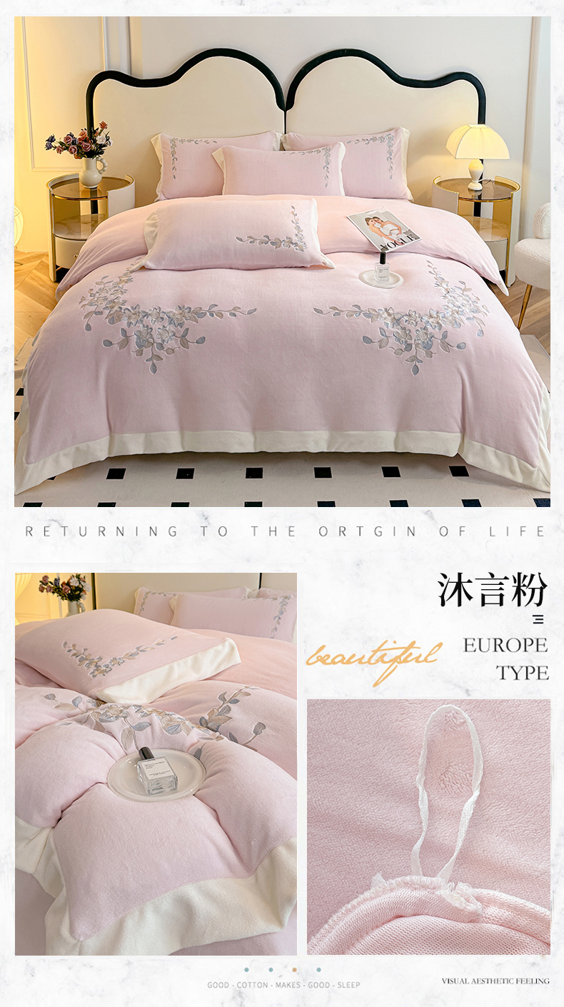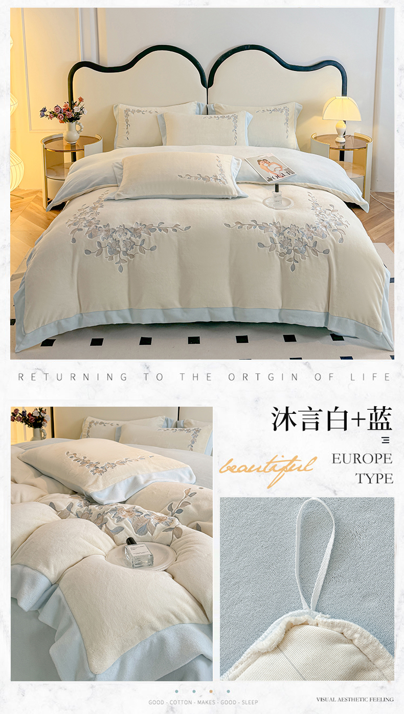 当前位置: 91家纺网 > 商品网购 > 床品套件 > 四件套 > 牛奶绒四件套 > (总)KA家纺 2025新款冬刺绣款宽边拼角牛奶绒四件套-沐言系列