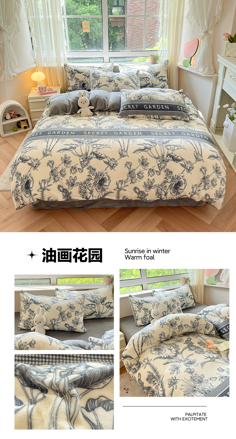 (总)席佬大 2025新款云芙绒亲肤保暖床单四件套,闭月羞花,冬日森林,花意浓,罗曼庄园,梦幻花海,秋韵